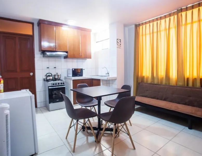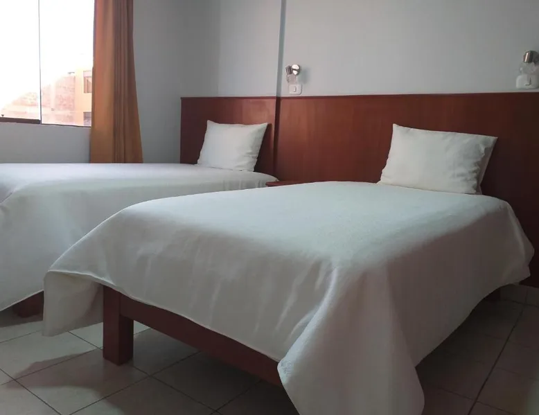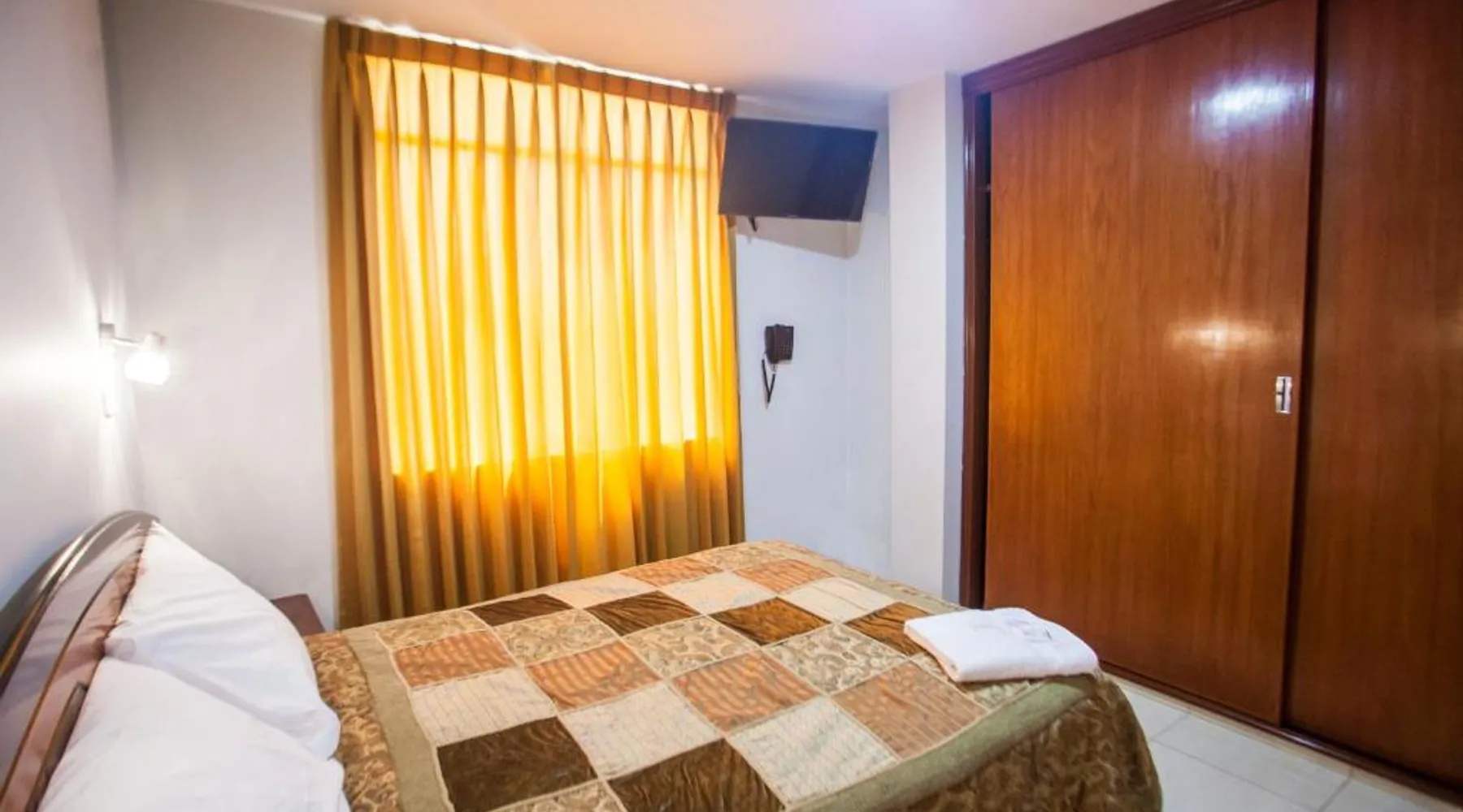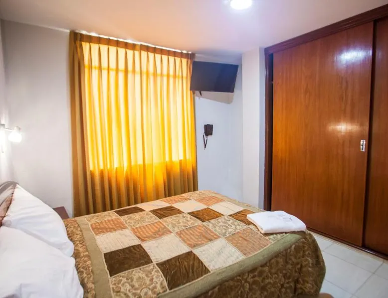 Comfortable Accommodations: Hostal Vasco in Tacna offers family rooms with private bathrooms, bidets, and city or inner courtyard views. Each room includes free toiletries, a shower, TV, and wardrobe. Essential Facilities: Guests enjoy free WiFi, a paid airport shuttle service, 24-hour front desk, concierge, housekeeping, full-day security, bicycle parking, and a tour desk. Dining Options: An American breakfast is available à la carte. Additional amenities include a hot tub, kitchenette, spa bath, and kitchen with modern appliances. Location and Attractions: Located 2.5 mi from Coronel FAP Carlos Ciriani Santa Rosa International Airport, the hotel is 2 mi from Jorge Basadre Stadium and 22 mi from Paso Chacalluta. Providing free toiletries, this double room includes a private bathroom with a shower and a bidet. This double room provides a wardrobe, a flat-screen TV with cable channels and city views. The unit offers 1 bed.