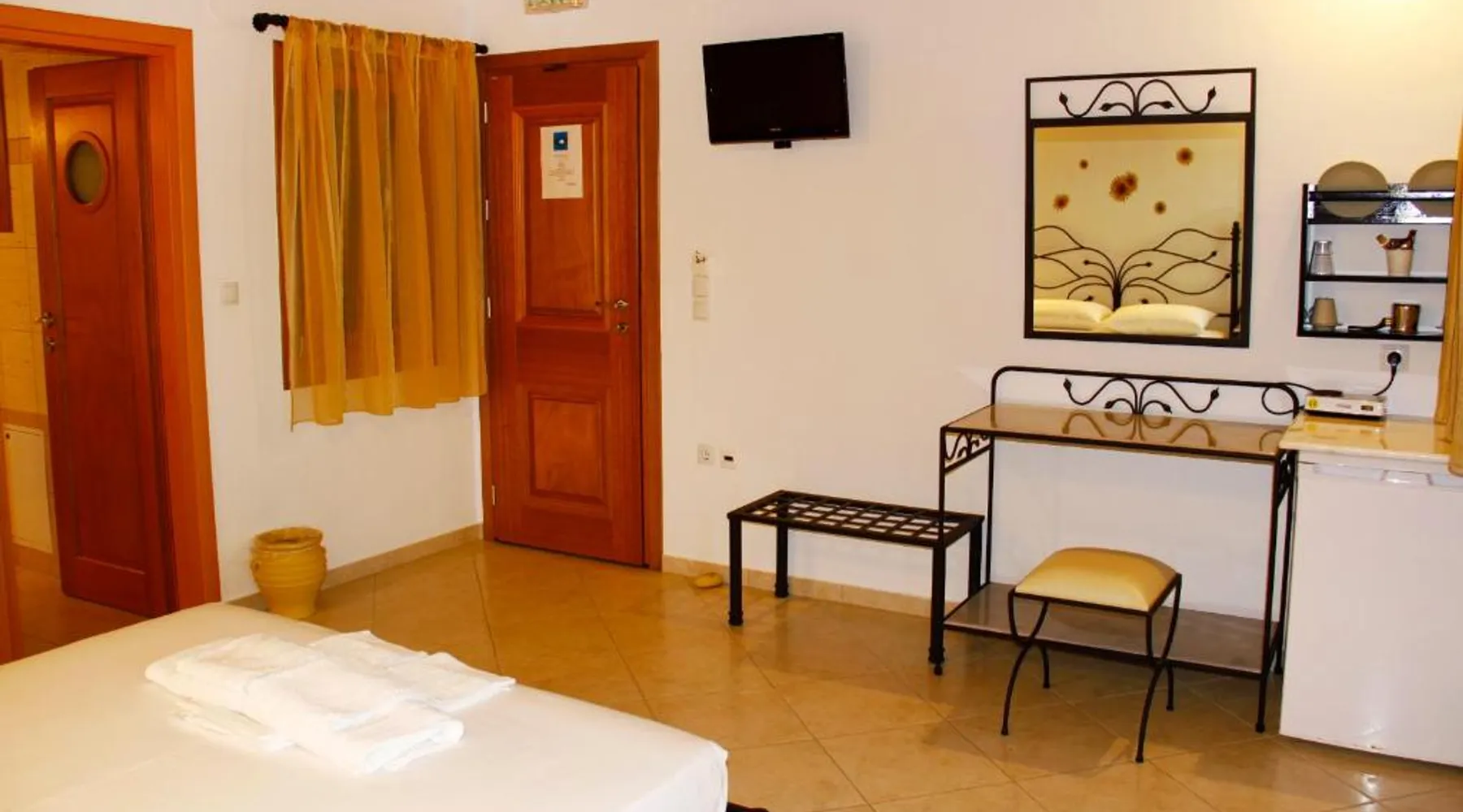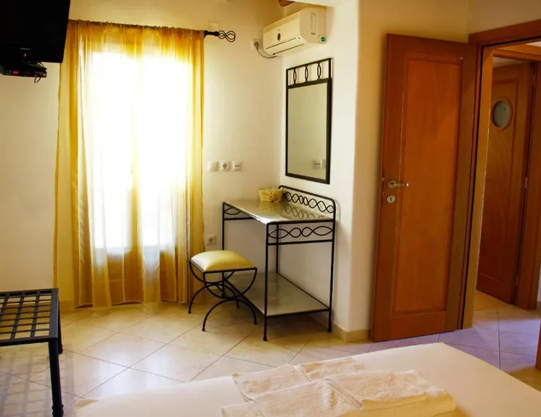Comfortable Accommodations: Alisachni in Livadi offers a spacious apartment with a sun terrace and free WiFi. The property features air-conditioning, a private bathroom, and a fully equipped kitchen. Convenient Facilities: Guests benefit from private check-in and check-out services, a shuttle, housekeeping, a coffee shop, and free private parking. Additional amenities include a balcony, terrace, and outdoor seating area. Prime Location: Located a 1-minute walk from Livadi Beach and 43 mi from Milos Island National Airport, Alisachni provides easy access to local attractions. Serifos Old Mines are 11 mi away. Guest Satisfaction: Highly rated for its convenient location, room cleanliness, and attentive host. Boasting a private entrance, this air-conditioned apartment features 1 living room, 1 separate bedroom and 1 bathroom with a shower and a hairdryer. Guests can make meals in the kitchen that features a stovetop, a refrigerator, kitchenware and a tea and coffee maker. Featuring a terrace with garden views, this apartment also features soundproof walls and a flat-screen TV. The unit has 2 beds.