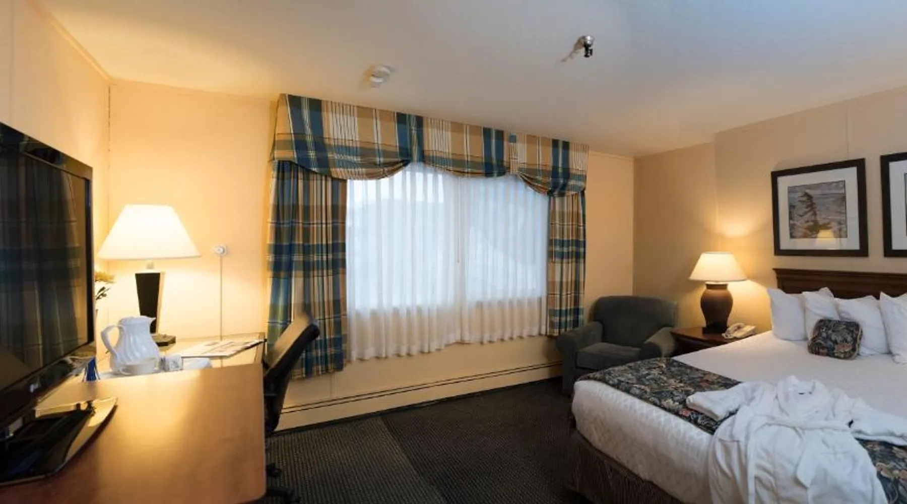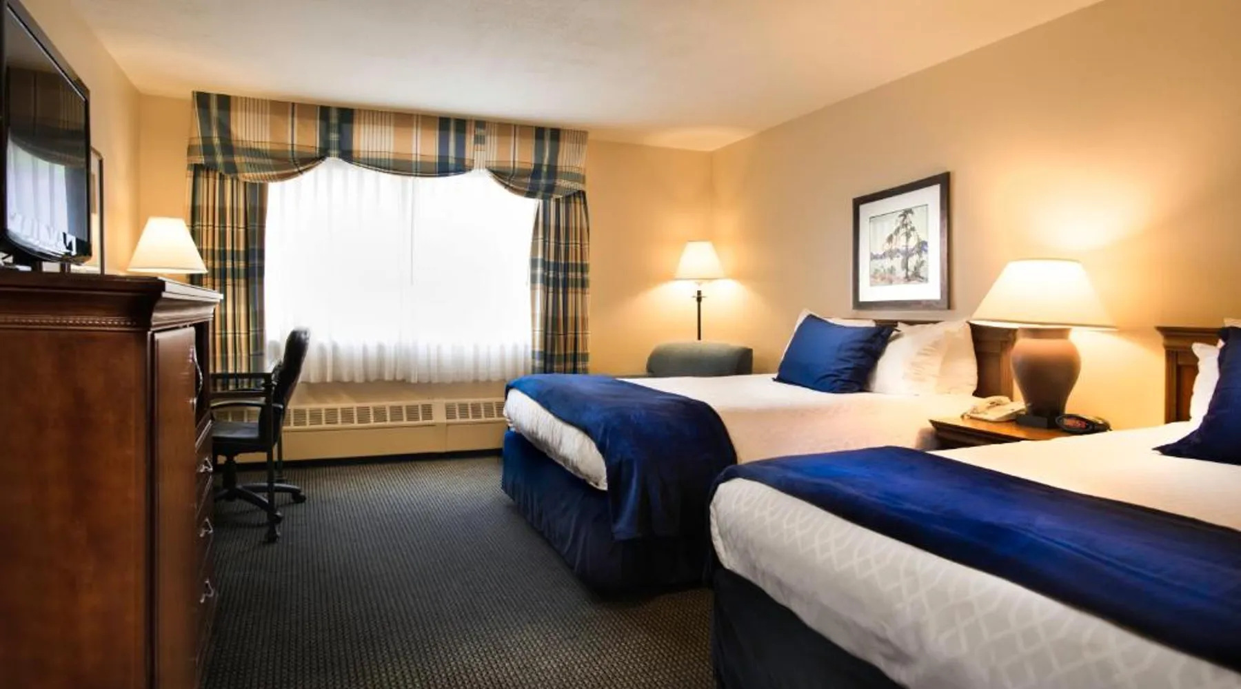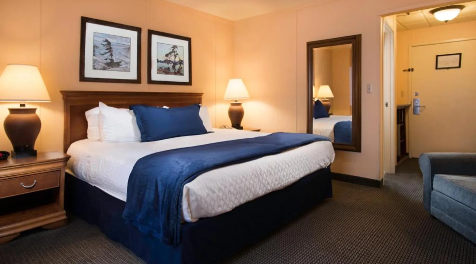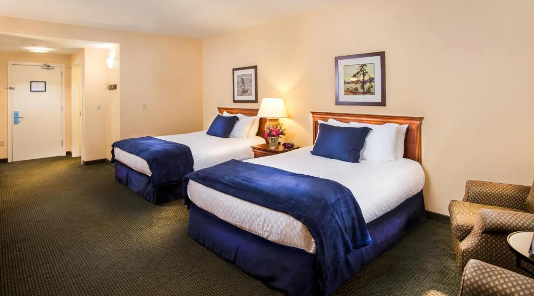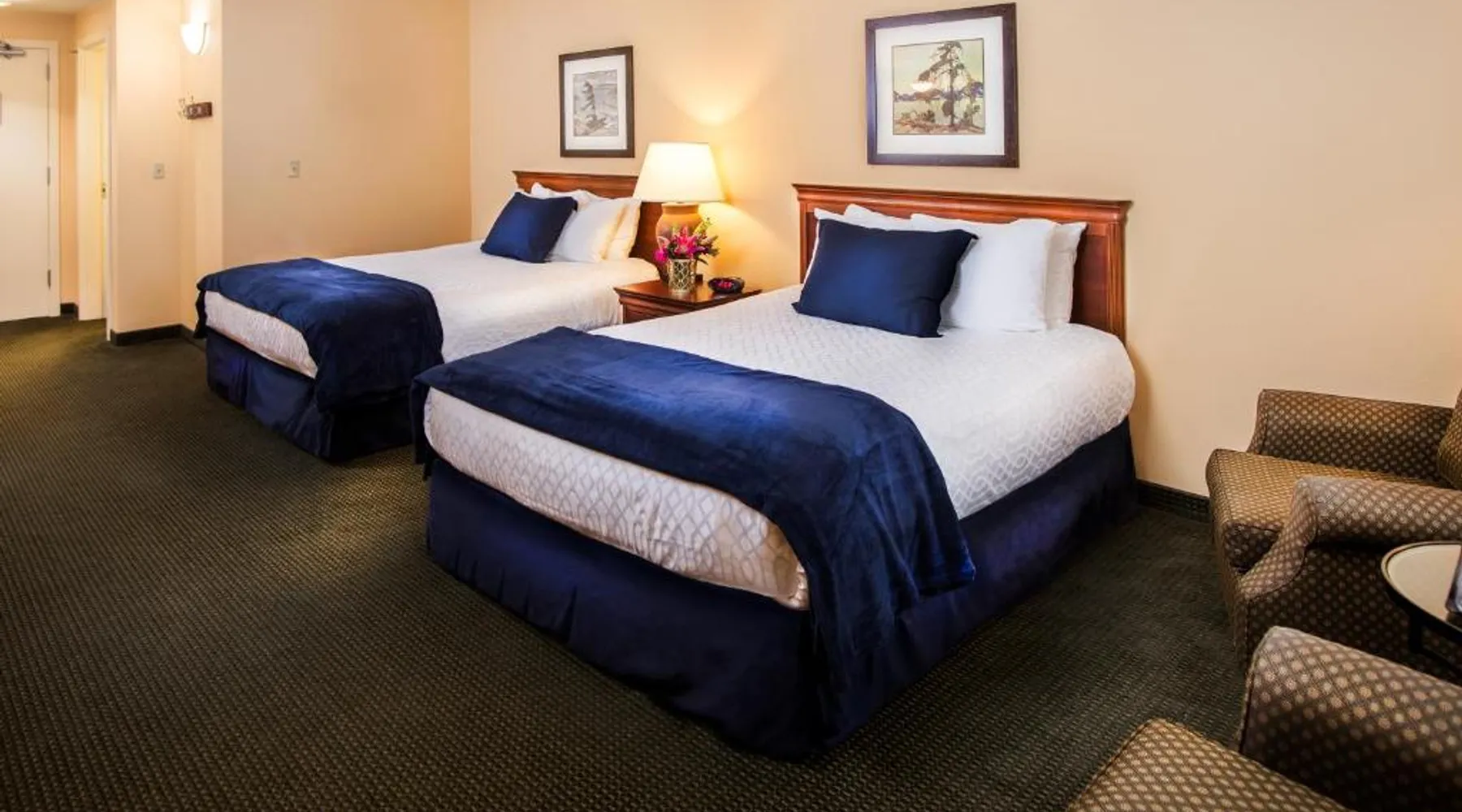 Comfortable Accommodations: The Landing Hotel in Ketchikan offers family rooms with private bathrooms, sea views, and balconies. Each room includes a work desk, free WiFi, and modern amenities. Dining and Leisure: Guests can enjoy American cuisine at the family-friendly restaurant, offering lunch, dinner, and cocktails in a modern setting. The bar provides a relaxing atmosphere for evening drinks. Convenient Services: The hotel provides a fitness center, free airport shuttle service, and free on-site private parking. Additional services include a 24-hour front desk, concierge, and housekeeping. Local Attractions: Located 1.9 mi from Ketchikan International Airport and 7.5 mi from Totem Bight State Historical Park, the hotel offers easy access to local attractions. This 500-square-foot nonsmoking room located in our newly constructed North Court Building comes with two comfy pillow top Queen beds topped with four pillows, two overstuffed chairs as well as a large work desk with ergonomic chair. There is also a microwave, refrigerator, coffee maker, iron and hairdryer in addition to a roll in shower, lowered bathroom vanity and closet shelving. Complimentary amenities including covered parking garage and Wi-Fi.