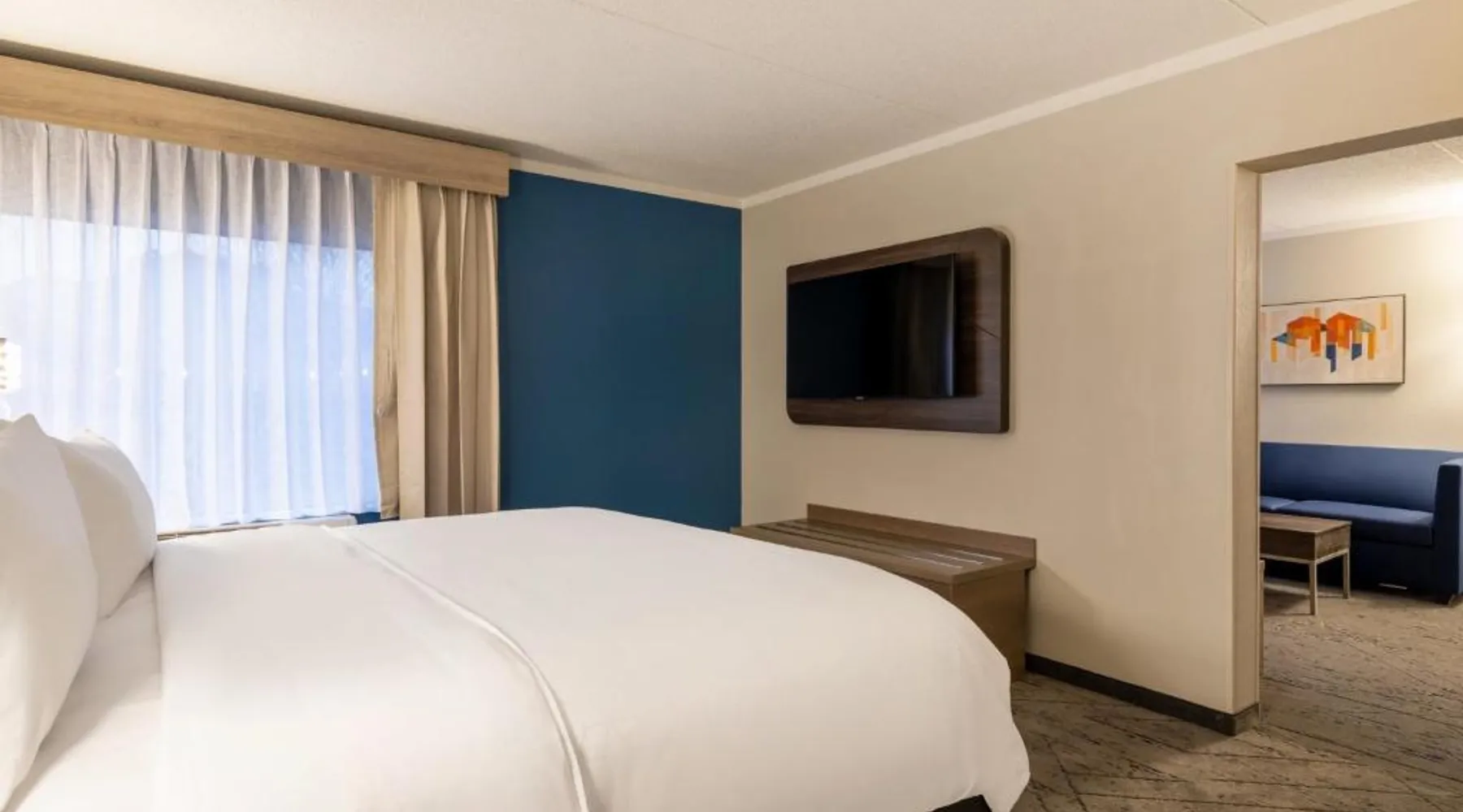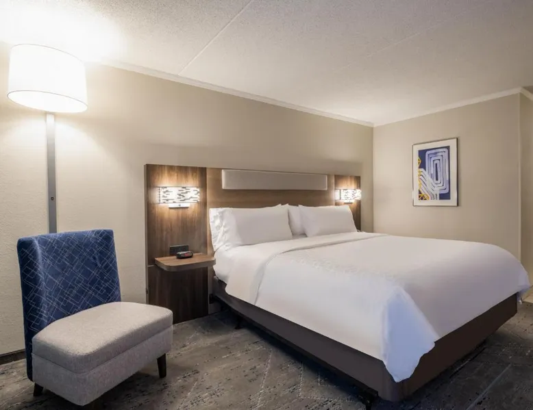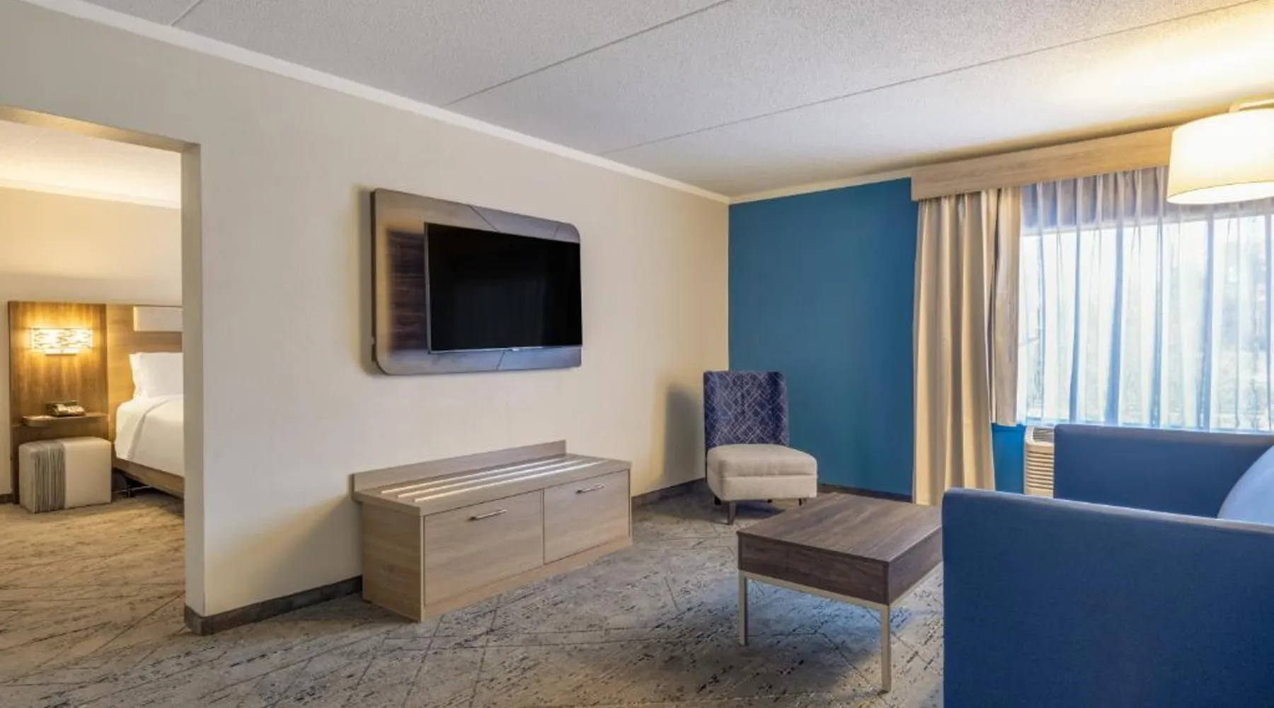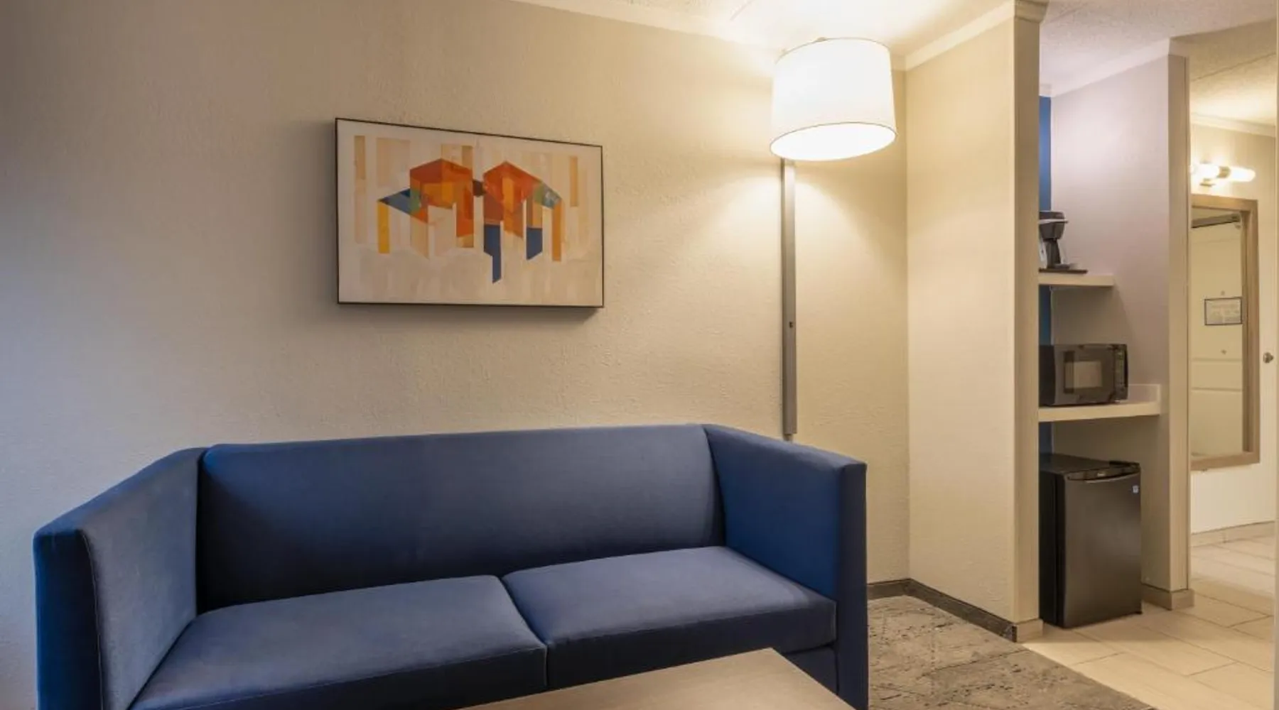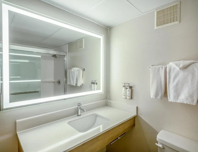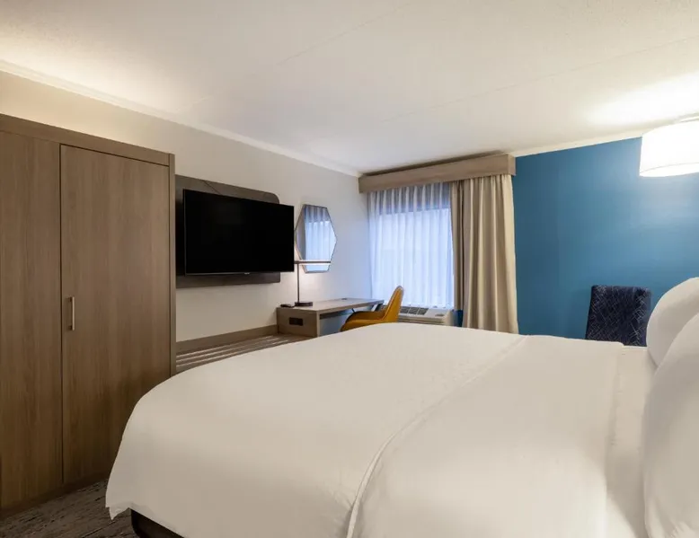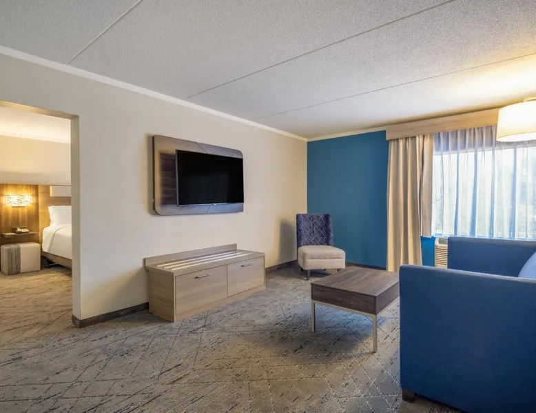 Comfortable Accommodations: Holiday Inn Express & Suites Greensboro - I-40 at Wendover by IHG in Greensboro offers air-conditioned rooms with private bathrooms, tea and coffee makers, and free WiFi. Each room includes a work desk, refrigerator, and TV. Exceptional Facilities: Guests can enjoy a seasonal outdoor swimming pool, lounge, and fitness center. Additional amenities include a minimarket, business area, and free on-site private parking. Convenient Location: Located 4.3 mi from Piedmont Triad Airport, the hotel is near attractions such as Greensboro Science Center (11 mi) and Joseph S. Koury Convention Center (3.7 mi). Free WiFi is available throughout the property. Guest Satisfaction: Highly rated for its breakfast, convenient location, and room cleanliness, the hotel ensures a pleasant stay for all visitors. The suite offers a safe deposit box, heating, as well as a private bathroom boasting a walk-in shower and a hairdryer. The suite has carpeted floors, a seating area with a flat-screen TV with streaming services, air conditioning, a tea and coffee maker, as well as a wardrobe. The unit has 2 beds.