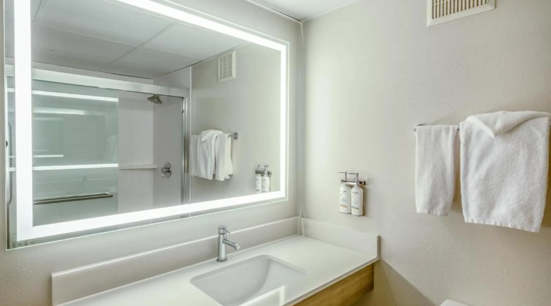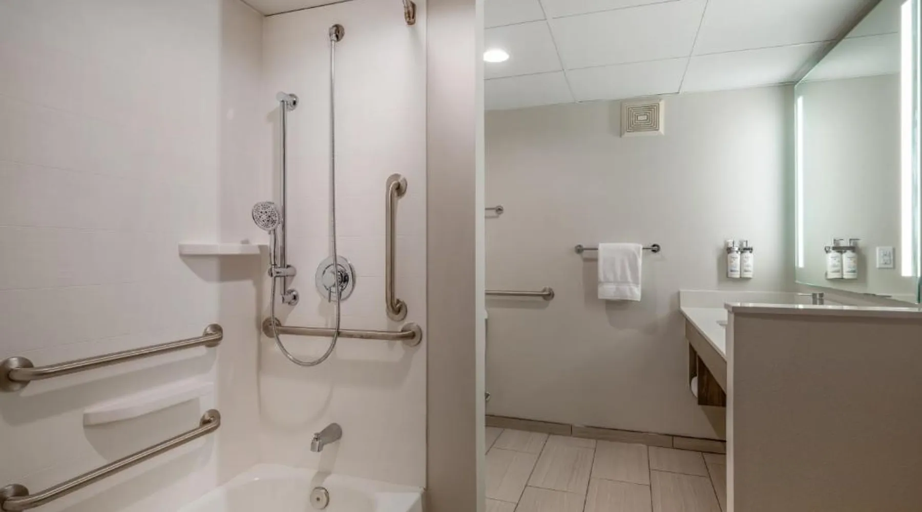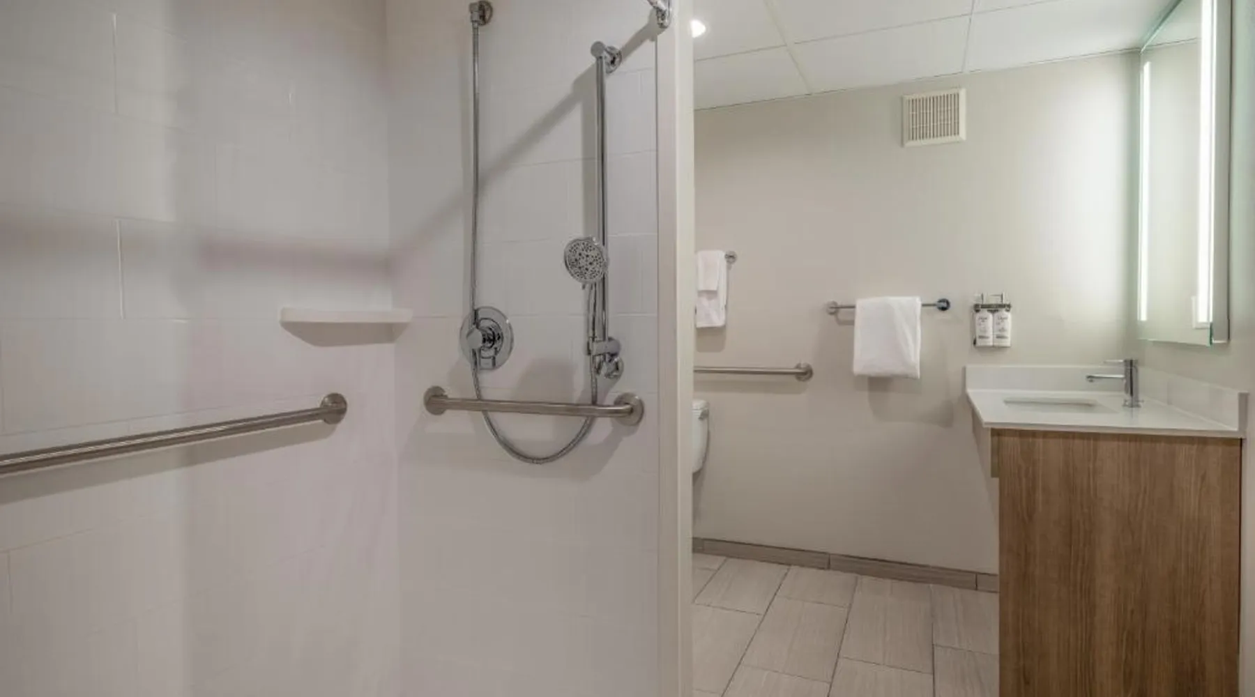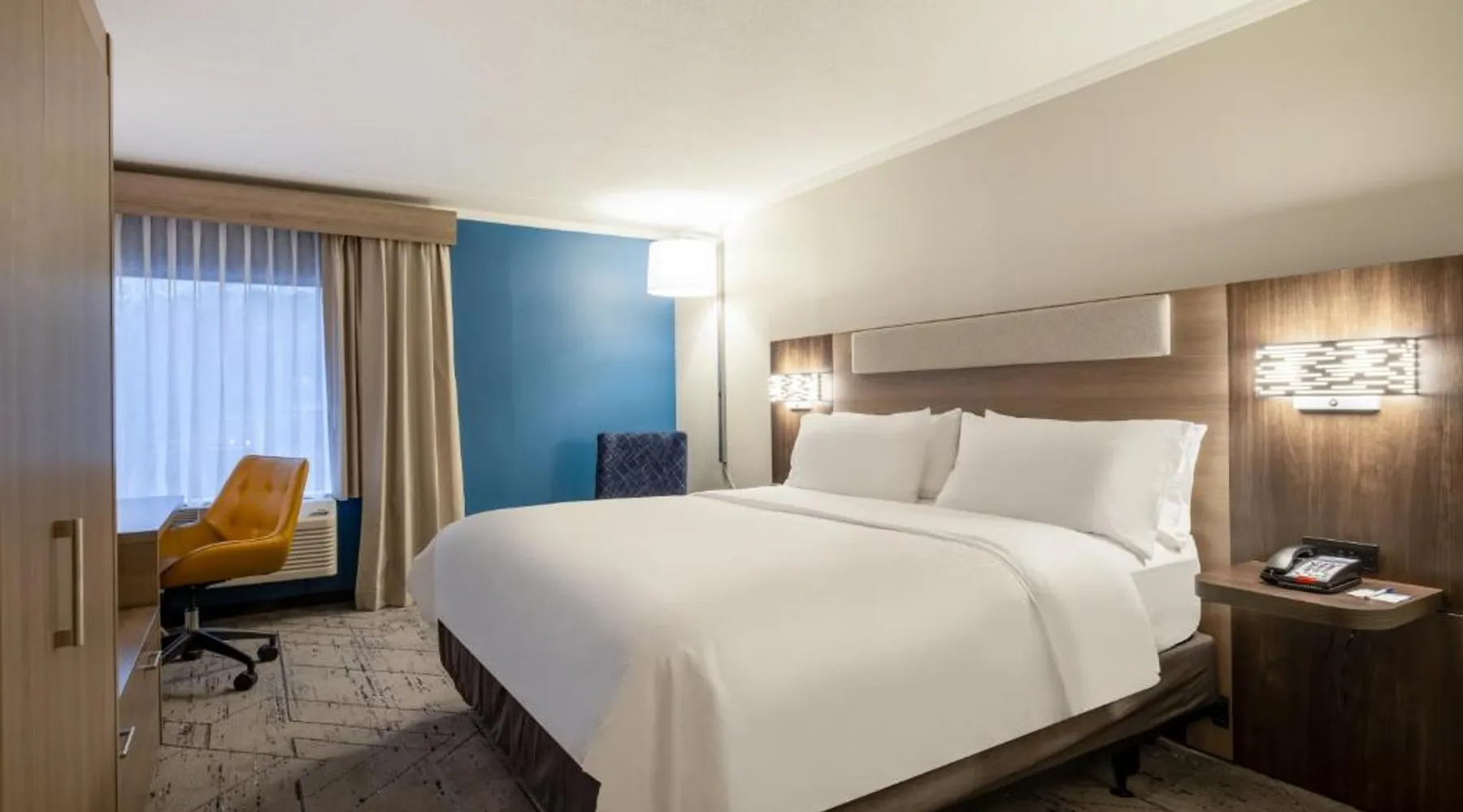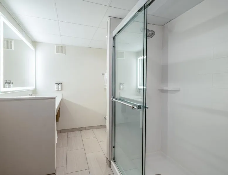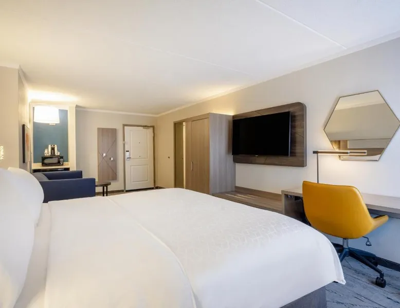 Comfortable Accommodations: Holiday Inn Express & Suites Greensboro - I-40 at Wendover by IHG in Greensboro offers air-conditioned rooms with private bathrooms, tea and coffee makers, and free WiFi. Each room includes a work desk, refrigerator, and TV. Exceptional Facilities: Guests can enjoy a seasonal outdoor swimming pool, lounge, and fitness center. Additional amenities include a minimarket, business area, and free on-site private parking. Convenient Location: Located 4.3 mi from Piedmont Triad Airport, the hotel is near attractions such as Greensboro Science Center (11 mi) and Joseph S. Koury Convention Center (3.7 mi). Free WiFi is available throughout the property. Guest Satisfaction: Highly rated for its breakfast, convenient location, and room cleanliness, the hotel ensures a pleasant stay for all visitors. The suite offers a safe deposit box, heating, as well as a private bathroom boasting a walk-in shower and a hairdryer. The suite has carpeted floors, a seating area with a flat-screen TV with streaming services, air conditioning, a tea and coffee maker, as well as a wardrobe. The unit has 2 beds.
