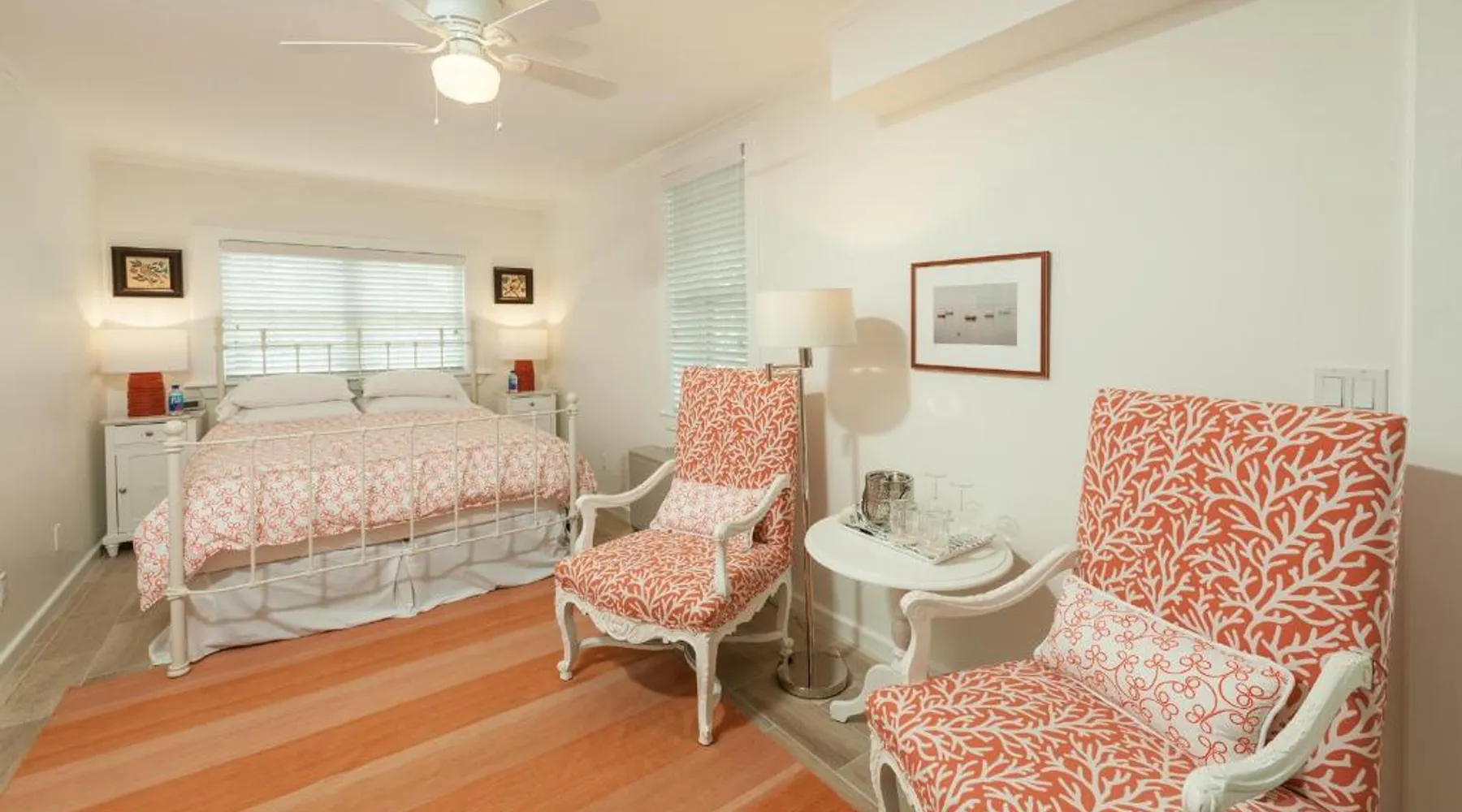 Beachfront Location: The Trellis House in Ogunquit offers direct beachfront access, a sun terrace, and a lush garden. Guests enjoy free WiFi throughout the property. Comfortable Accommodations: Rooms feature air-conditioning, private bathrooms with free toiletries, garden views, and amenities such as hairdryers, TVs, and wardrobes. Additional facilities include a fireplace, sofa bed, and private entrance. Convenient Services: The property provides private check-in and check-out, a concierge service, and menus for special diets. Free on-site private parking is available. Local Attractions: Little Beach is a 7-minute walk away, Marginal Way Walk 1969 feet, Perkins Cove 13 minutes, Ogunquit Playhouse 0.6 mi, and Ogunquit Museum of American Art 1.2 mi. Portsmouth International Airport is 19 mi from the property. This cottage features beach decor.