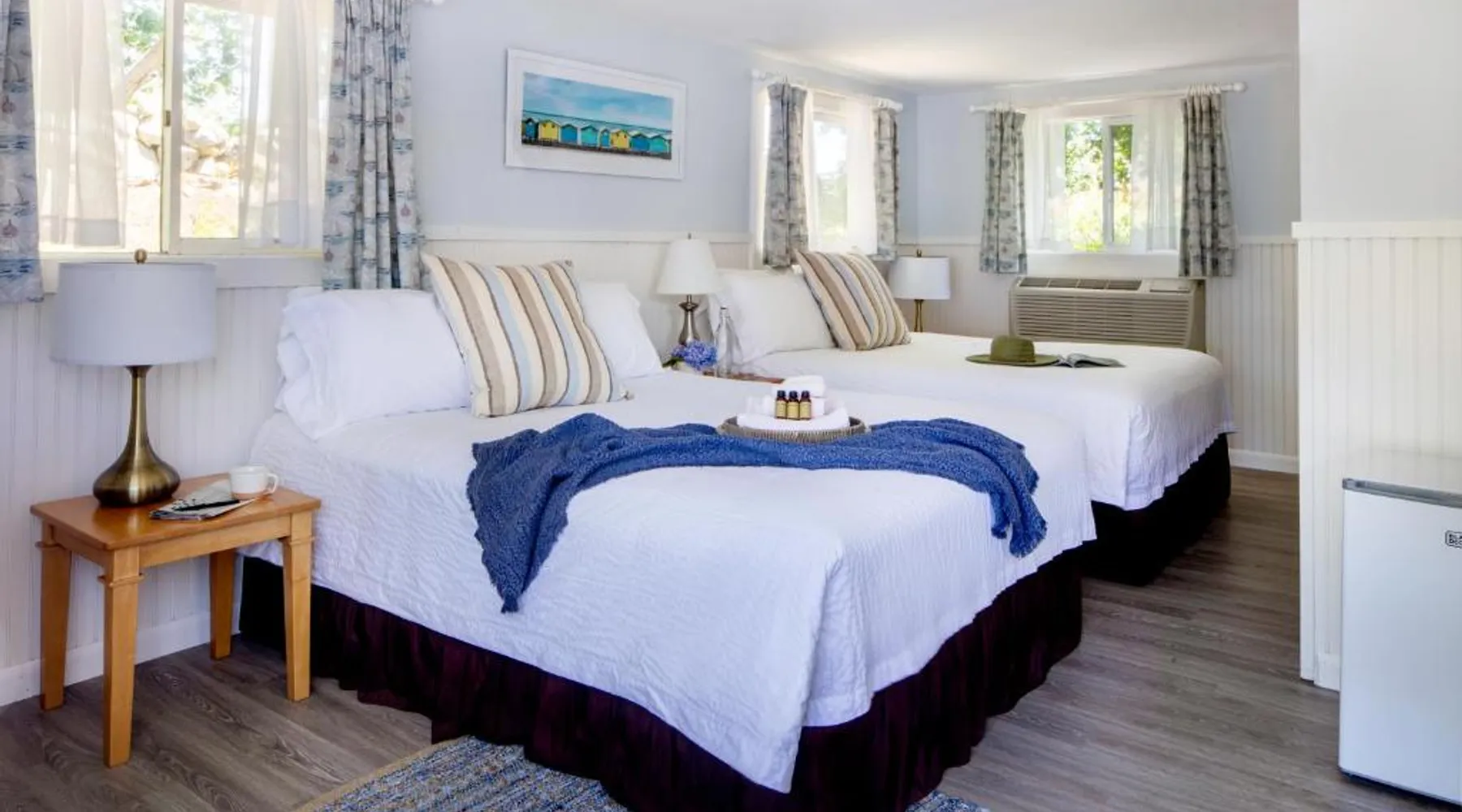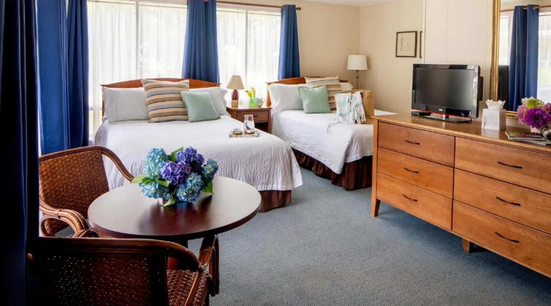 Comfortable Accommodations: Sesuit Harbor House in East Dennis offers family rooms with private bathrooms, air-conditioning, and garden views. Each room includes a tea and coffee maker, refrigerator, and free toiletries. Exceptional Facilities: Guests enjoy a sun terrace, seasonal outdoor swimming pool, open-air bath, and free WiFi. Additional amenities include a lounge, outdoor fireplace, and indoor play area. Free on-site parking is available. Convenient Location: Located 9.3 mi from Cape Cod Gateway Airport, the inn is near Cold Storage Beach (1.2 mi), Nauset Lighthouse (16 mi), and Cape Cod National Seashore (19 mi). Yoga classes, bike tours, hiking, and cycling are available. Guest Satisfaction: Highly rated for its attentive staff, delicious breakfast, and excellent service support. This room features cable TV, a seating area, and a refrigerator.