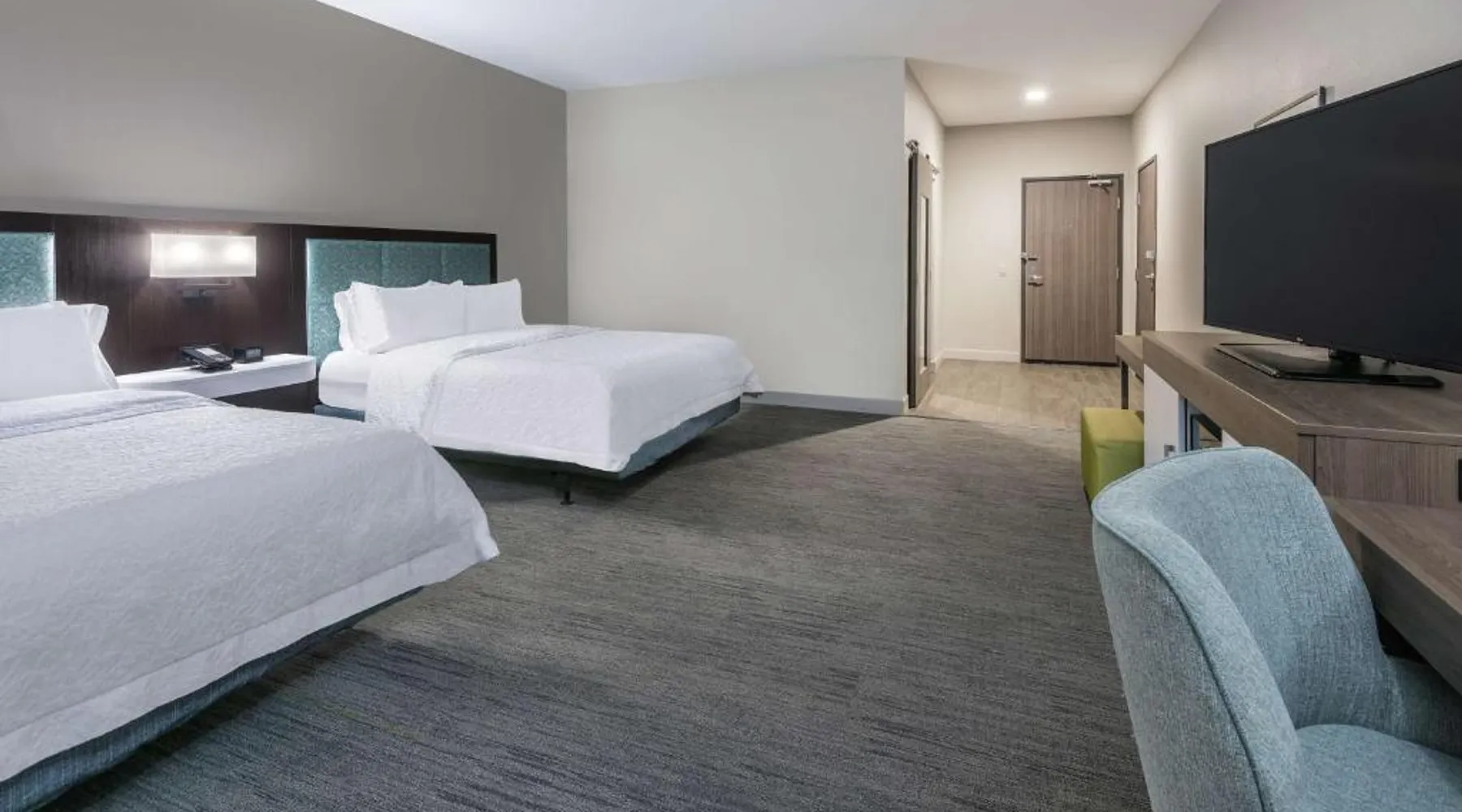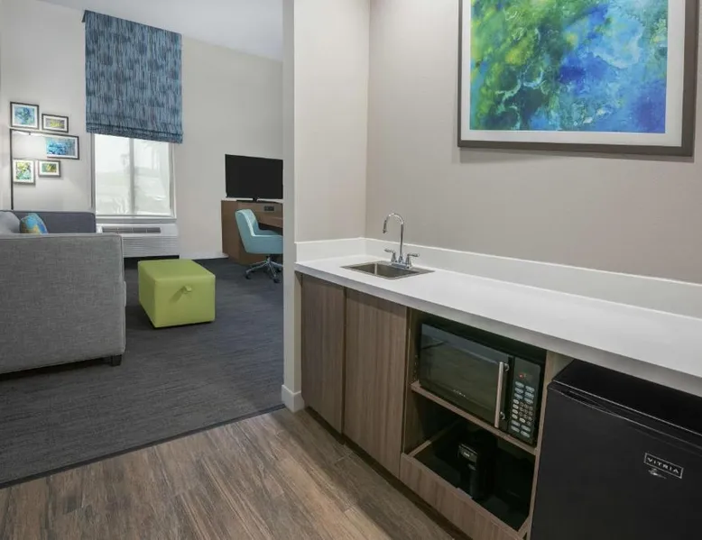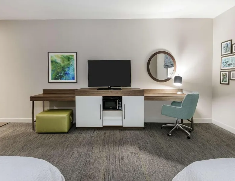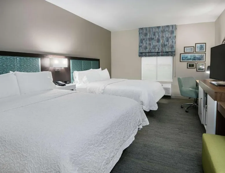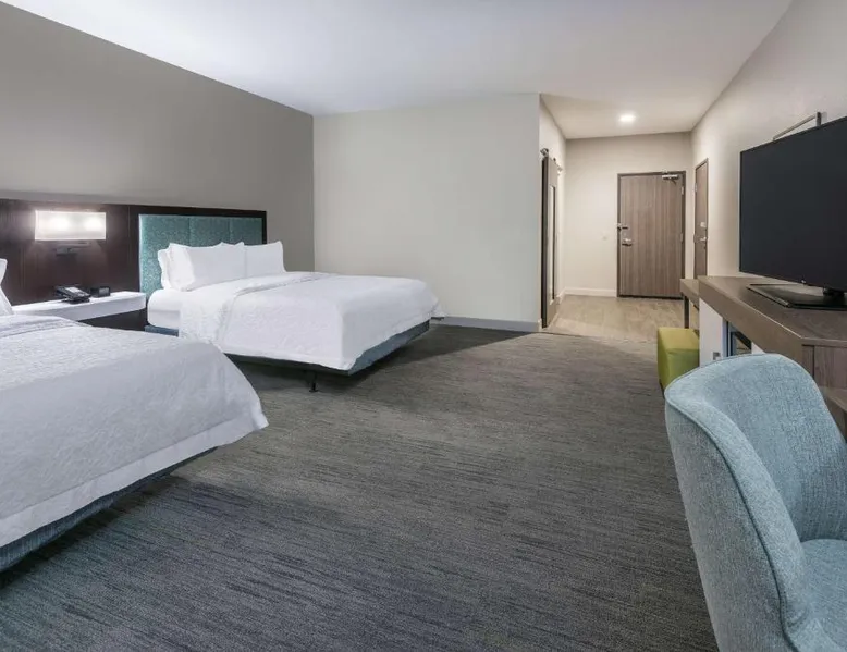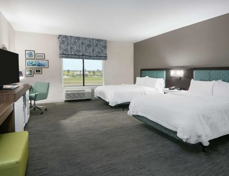 Comfortable Accommodations: Hampton Inn & Suites By Hilton-Corpus Christi Portland,Tx in Portland offers comfortable rooms with tea and coffee makers, hairdryers, refrigerators, microwaves, showers, and TVs. Each room includes a sofa bed for added comfort. Exceptional Facilities: Guests enjoy a fitness center, indoor swimming pool, and free WiFi. Additional amenities include a fitness room, elevator, 24-hour front desk, minimarket, daily housekeeping service, outdoor seating area, and barbecue facilities. Convenient Location: Located 17 mi from Corpus Christi International Airport and 9.3 mi from the American Bank Center Convention Center, the hotel provides easy access to local attractions. Free on-site parking is available. Guest Satisfaction: Highly rated by guests for its attentive staff and excellent service support, the hotel ensures a pleasant stay with its convenient location. This quadruple room features a tea and coffee maker and a flat-screen TV. The unit has 2 beds.