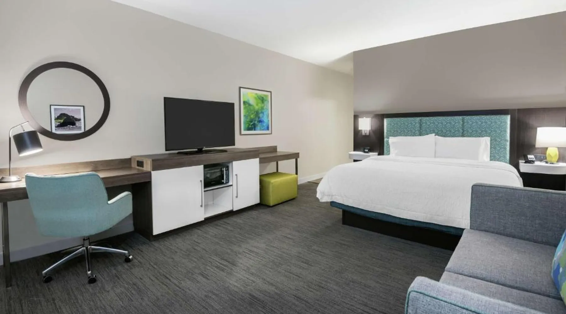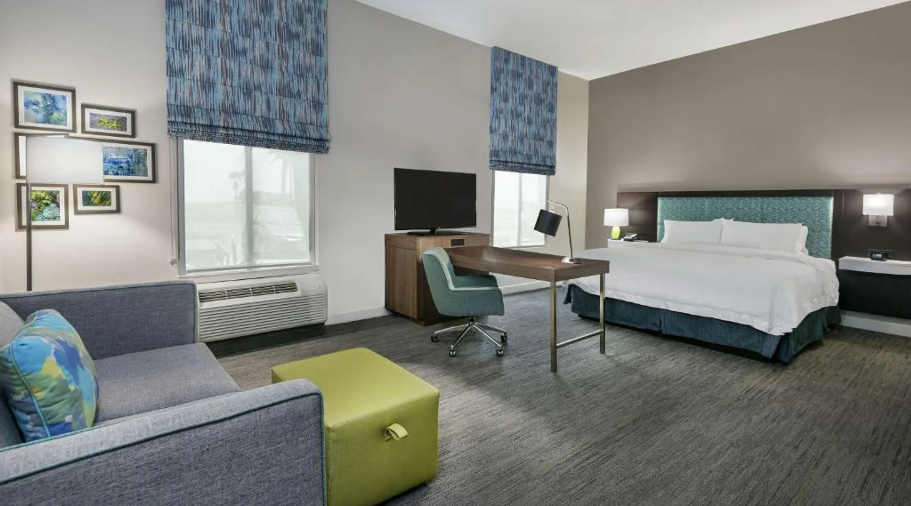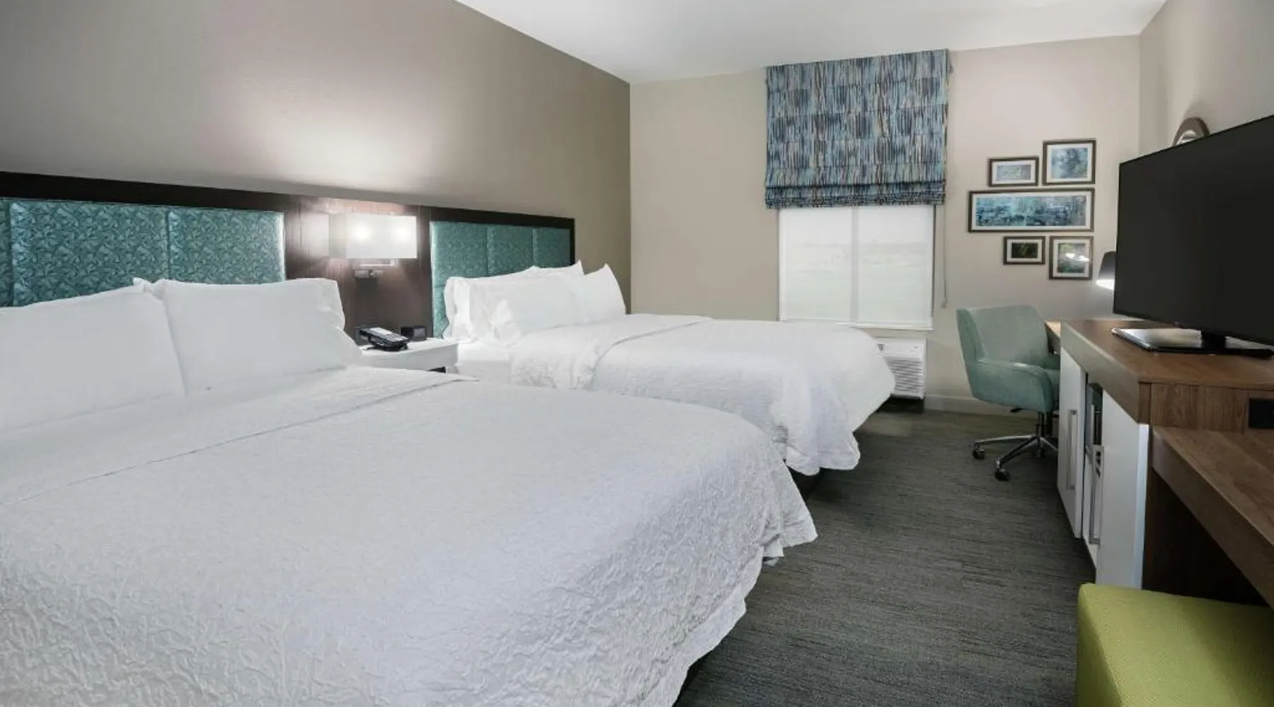 Comfortable Accommodations: Hampton Inn & Suites By Hilton-Corpus Christi Portland,Tx in Portland offers comfortable rooms with tea and coffee makers, hairdryers, refrigerators, microwaves, showers, and TVs. Each room includes a sofa bed for added comfort. Exceptional Facilities: Guests enjoy a fitness center, indoor swimming pool, and free WiFi. Additional amenities include a fitness room, elevator, 24-hour front desk, minimarket, daily housekeeping service, outdoor seating area, and barbecue facilities. Convenient Location: Located 17 mi from Corpus Christi International Airport and 9.3 mi from the American Bank Center Convention Center, the hotel provides easy access to local attractions. Free on-site parking is available. Guest Satisfaction: Highly rated by guests for its attentive staff and excellent service support, the hotel ensures a pleasant stay with its convenient location. This quadruple room features a tea and coffee maker and a flat-screen TV. The unit has 2 beds.
