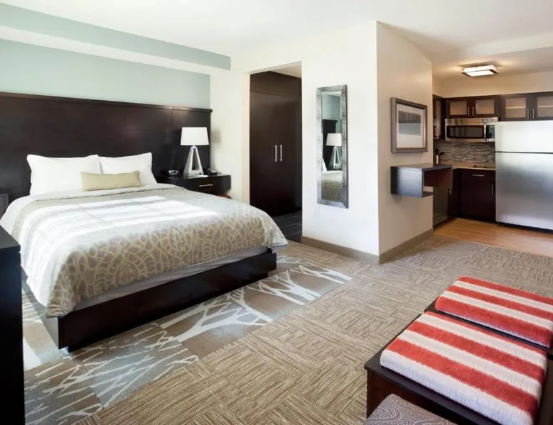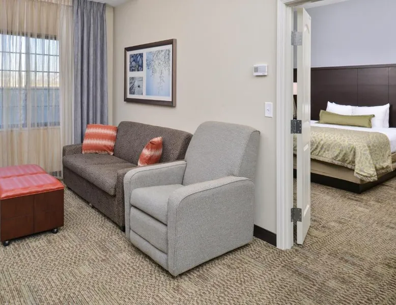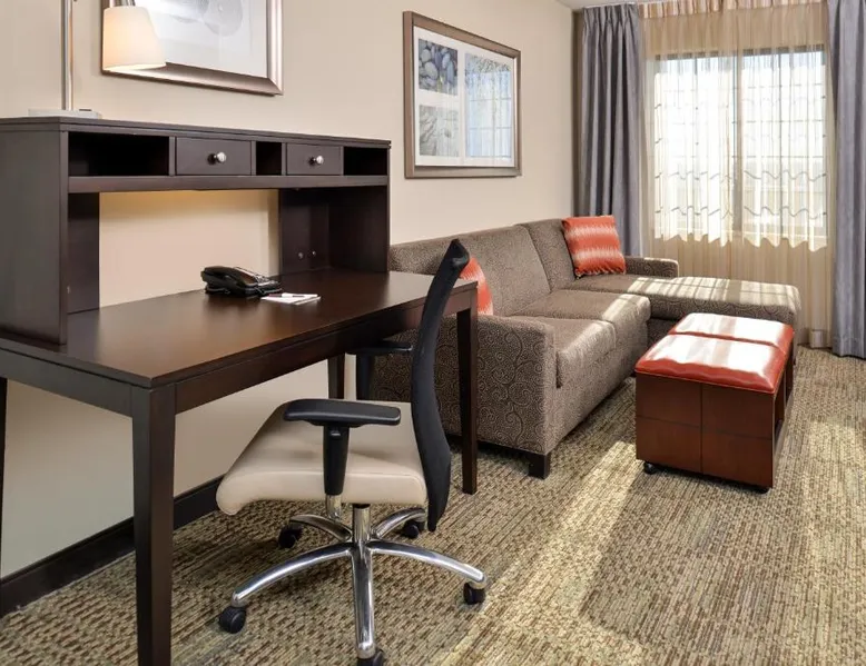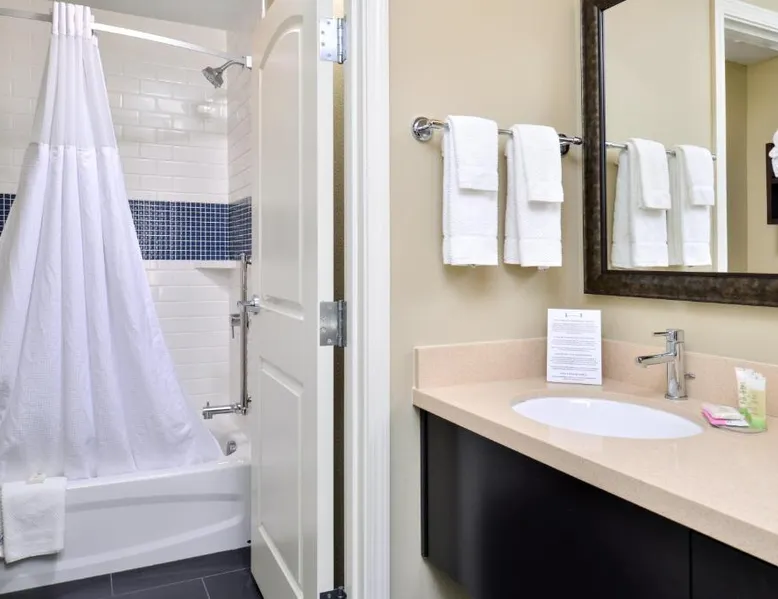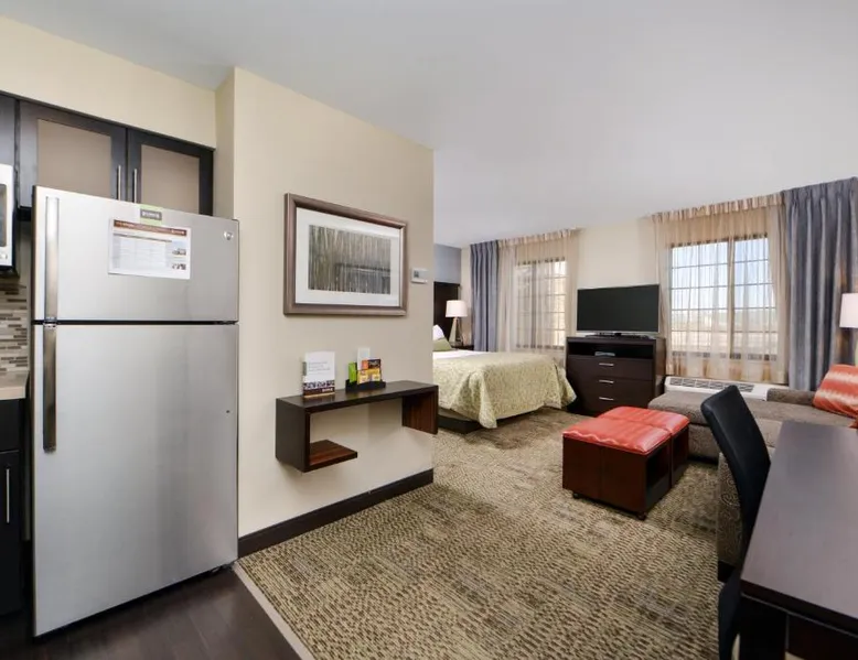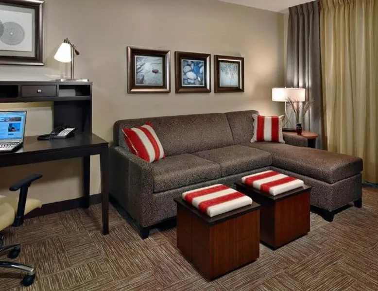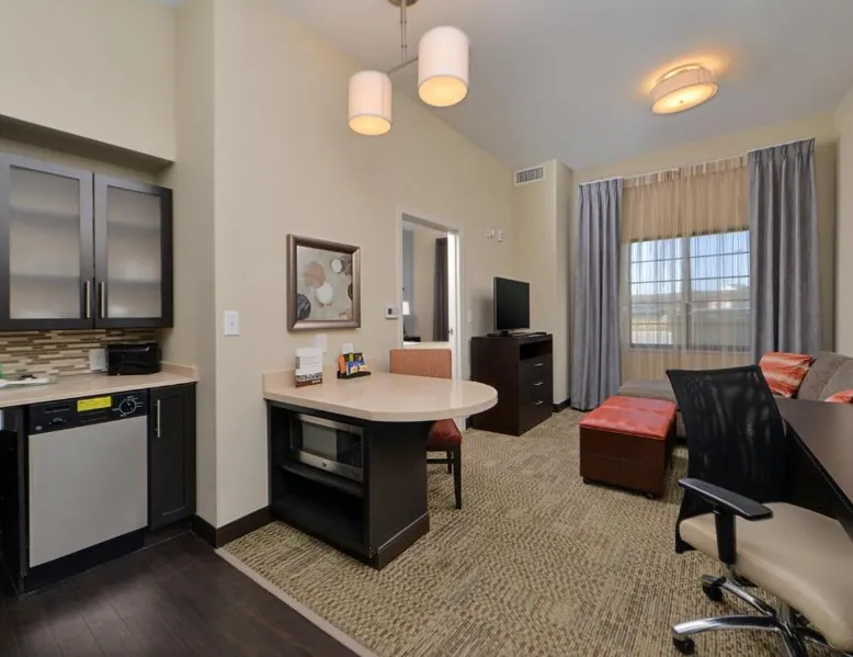 Offering an indoor pool and a fitness center, Staybridge Suites Rochester is located in Rochester. Free WiFi access is available. Each room here will provide you with air conditioning. Complete with a dishwasher, the dining area also has a microwave and a refrigerator. Private bathroom also comes with a bath or shower. Extras include a desk. At Staybridge Suites Rochester you will find a hot tub, free shuttle service and barbecue facilities. Other facilities offered at the property include laundry facilities. The property offers free parking. The hotel is 3.2 mi from Mayo Clinic Rochester. This disability access queen studio offers comfort and convenience, with mobility accessible accommodations, including an oversize desk and sofa sleeper.