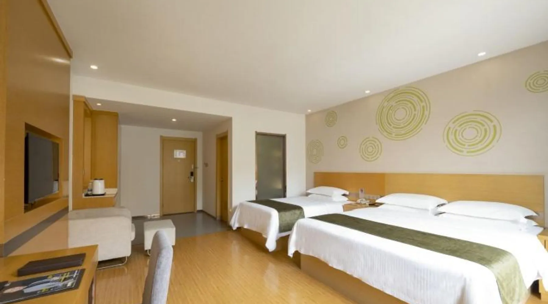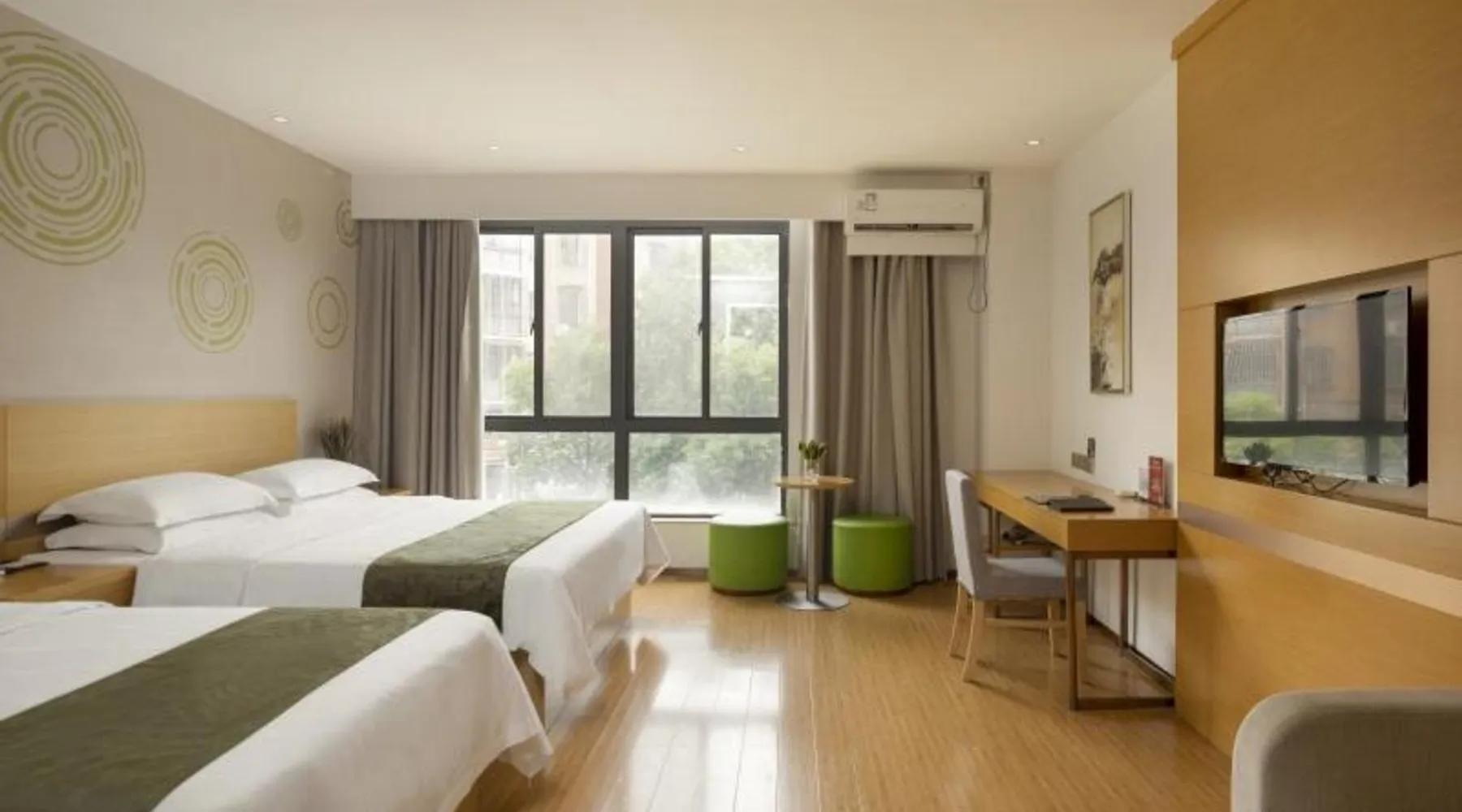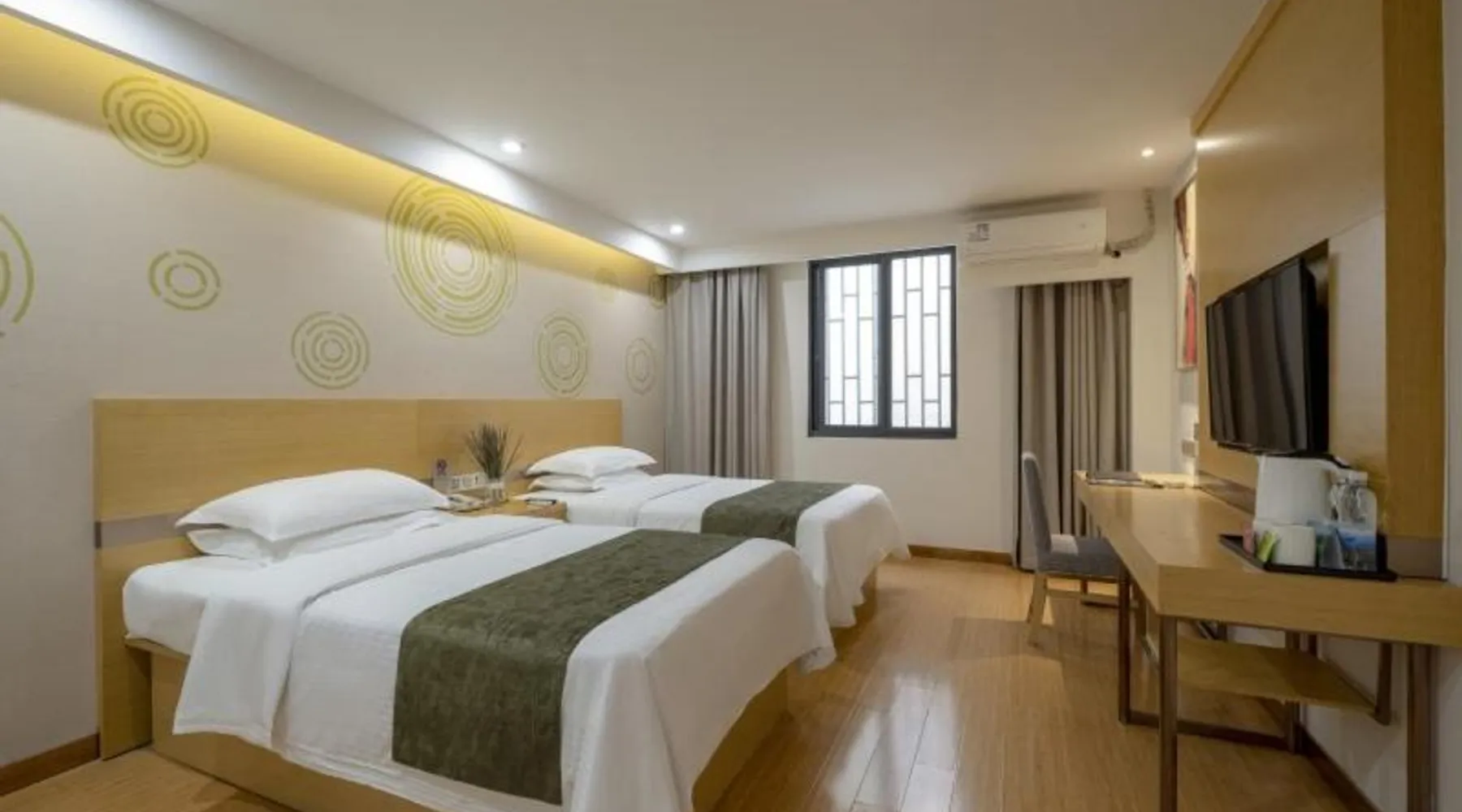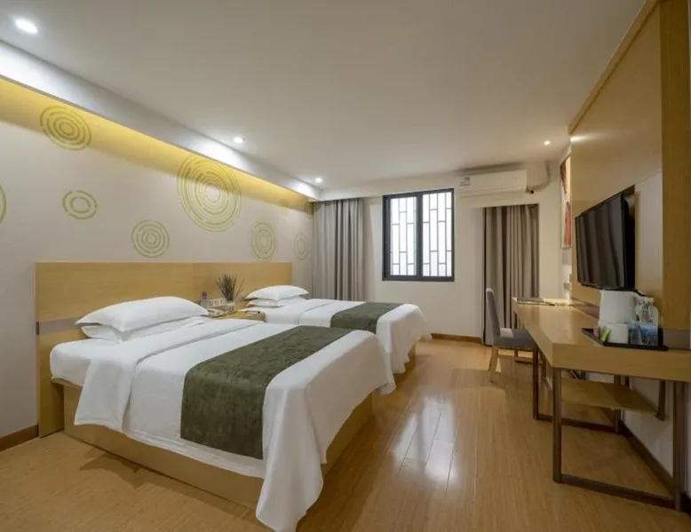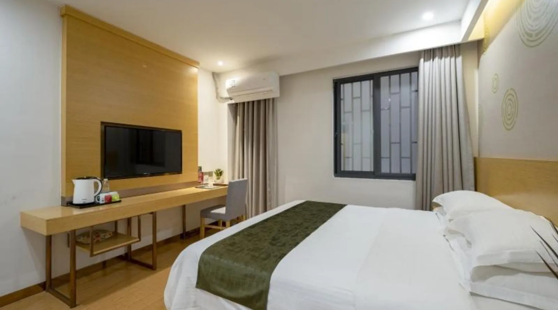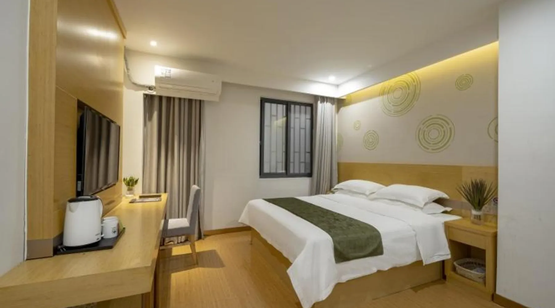 Comfortable Accommodations: GreenTree Inn Wuxi Yixing Xushe Town Government Express Hotel in Wuxi offers air-conditioned rooms with modern amenities. Guests enjoy free WiFi, ensuring a pleasant stay. Convenient Facilities: The hotel features a 24-hour front desk, providing assistance around the clock. Additional services include a business center and a fitness center, catering to both leisure and business travelers. Prime Location: Located 55 mi from Changzhou Benniu International Airport, the hotel is 11 mi from Liyang Railway Station and 15 mi from Dajue Temple. Yixing Railway Station is 16 mi away, and CC Joyland is 30 mi from the property. The double room provides air conditioning.