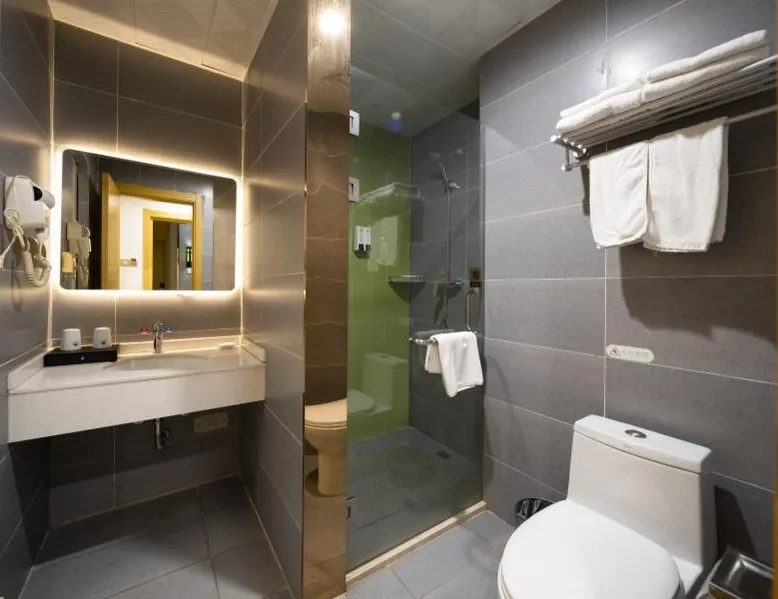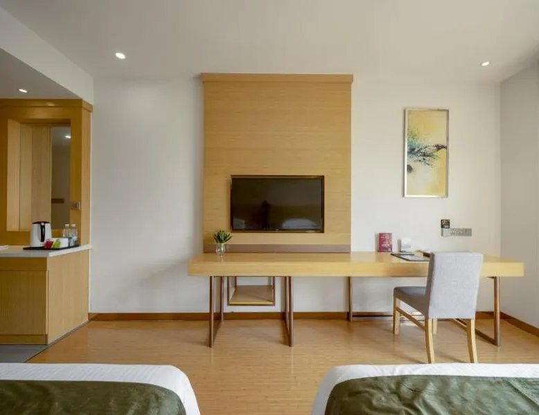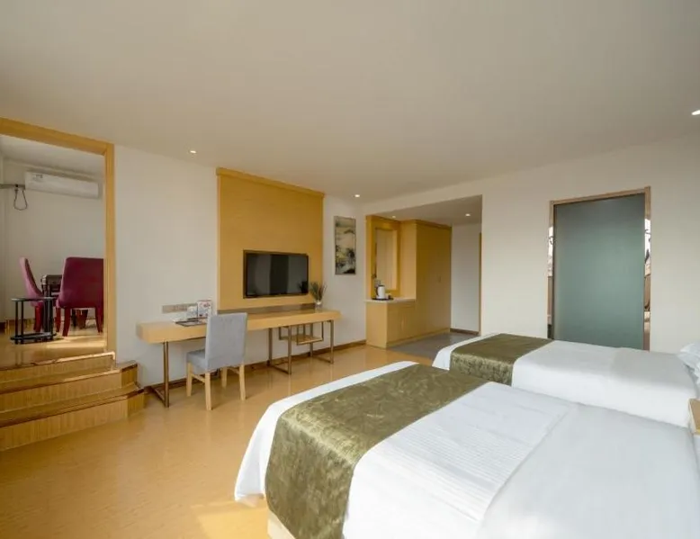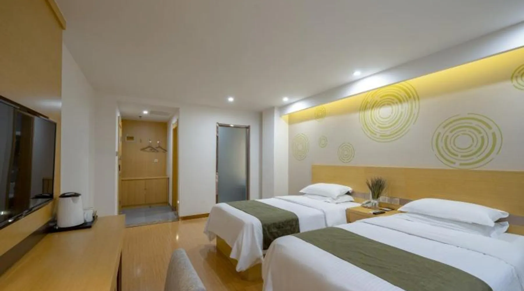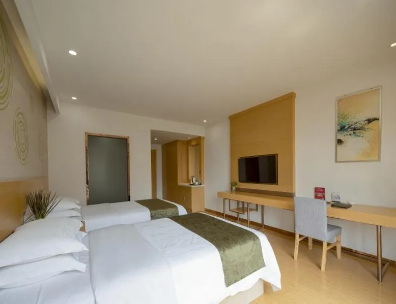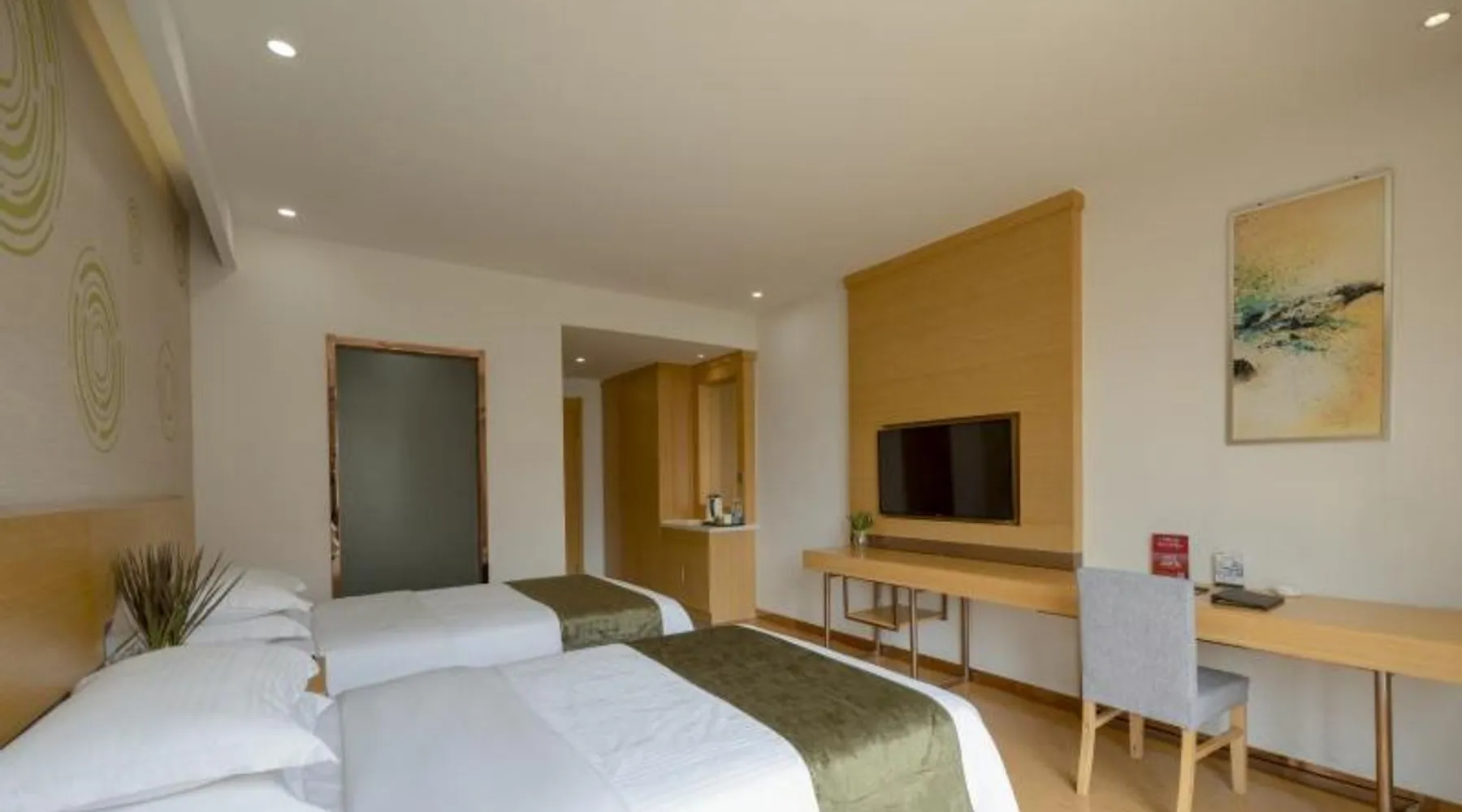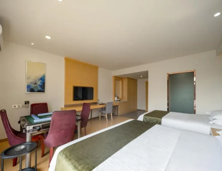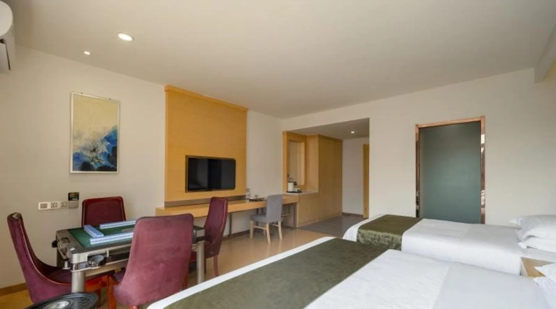 Comfortable Accommodations: GreenTree Inn Wuxi Yixing Xushe Town Government Express Hotel in Wuxi offers air-conditioned rooms with modern amenities. Guests enjoy free WiFi, ensuring a pleasant stay. Convenient Facilities: The hotel features a 24-hour front desk, providing assistance around the clock. Additional services include a business center and a fitness center, catering to both leisure and business travelers. Prime Location: Located 55 mi from Changzhou Benniu International Airport, the hotel is 11 mi from Liyang Railway Station and 15 mi from Dajue Temple. Yixing Railway Station is 16 mi away, and CC Joyland is 30 mi from the property. The double room provides air conditioning.