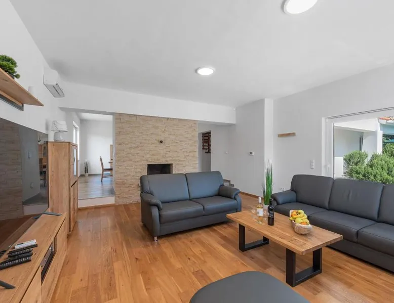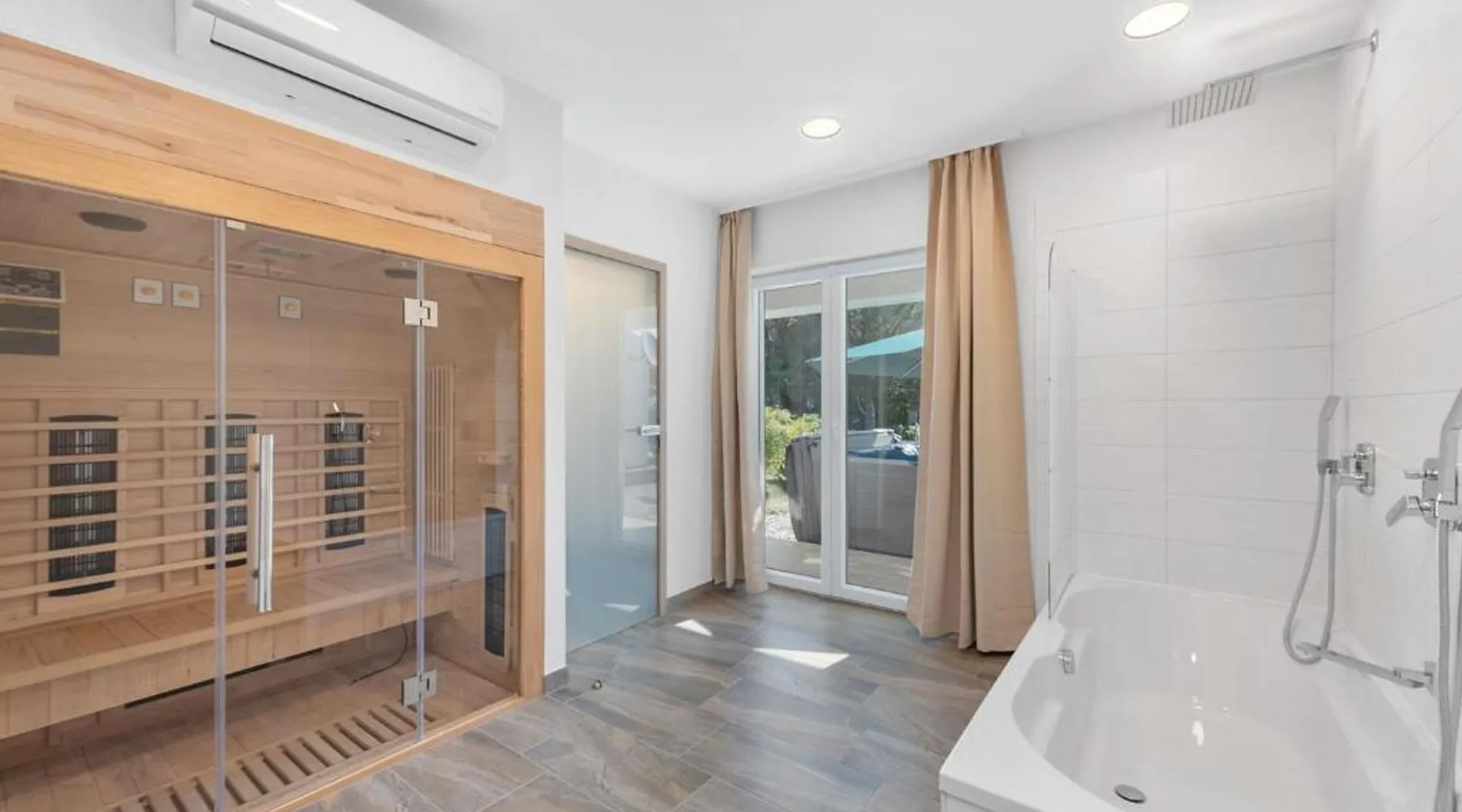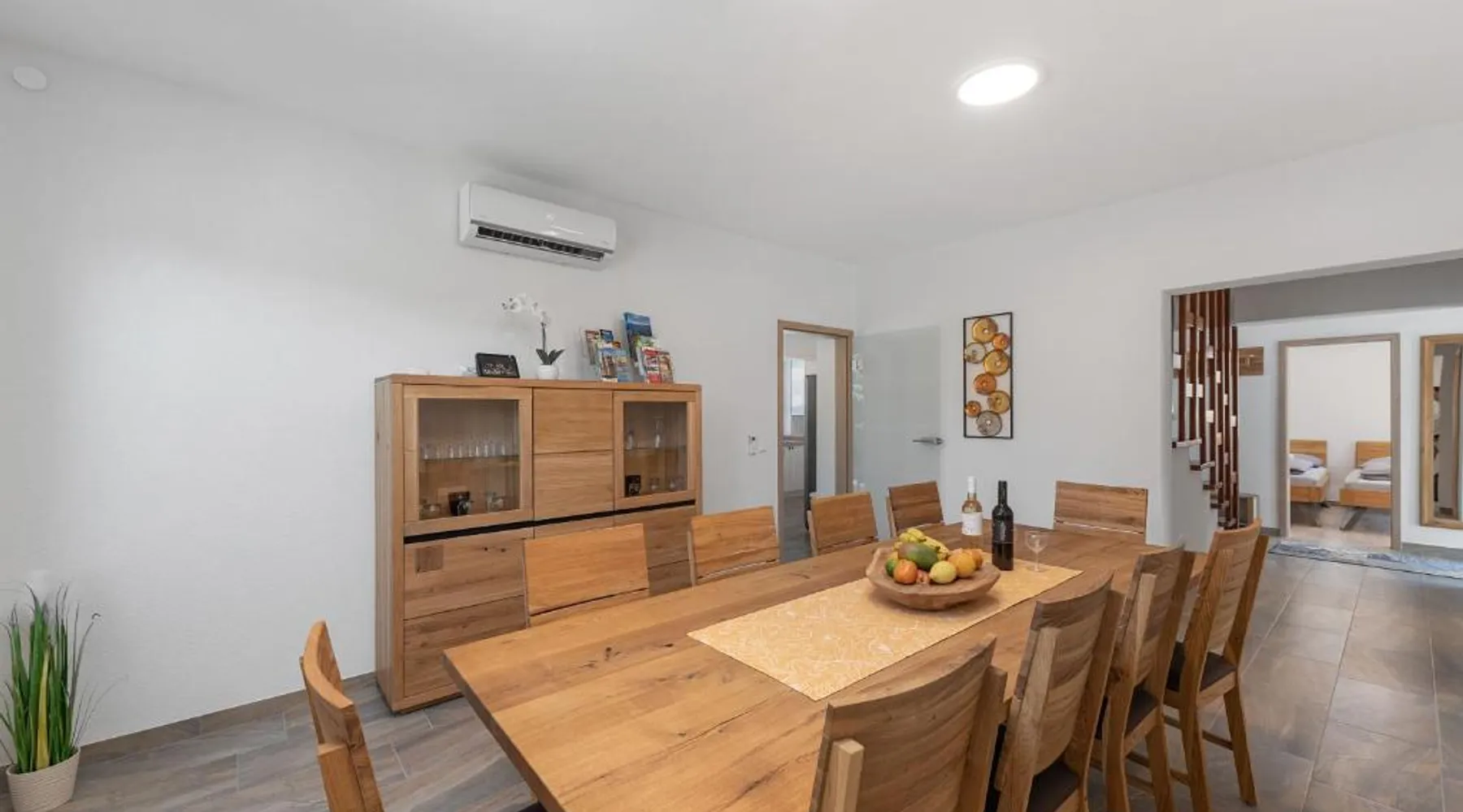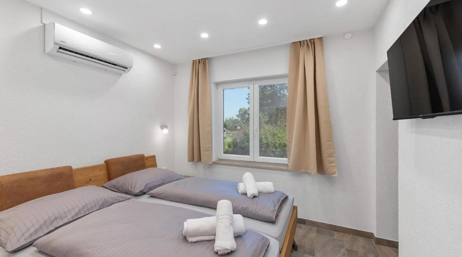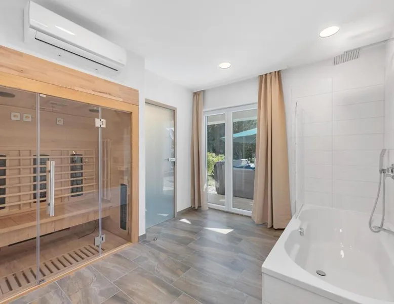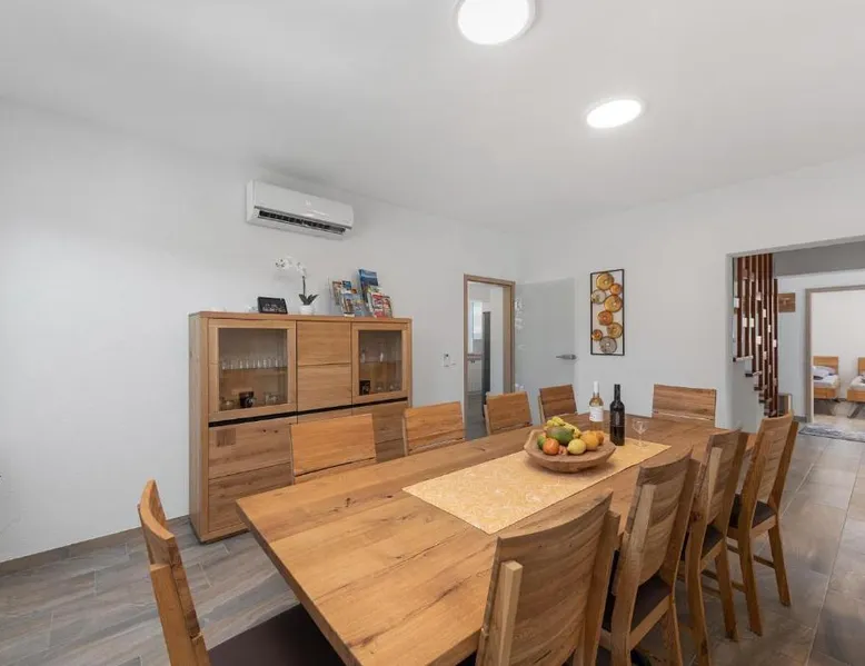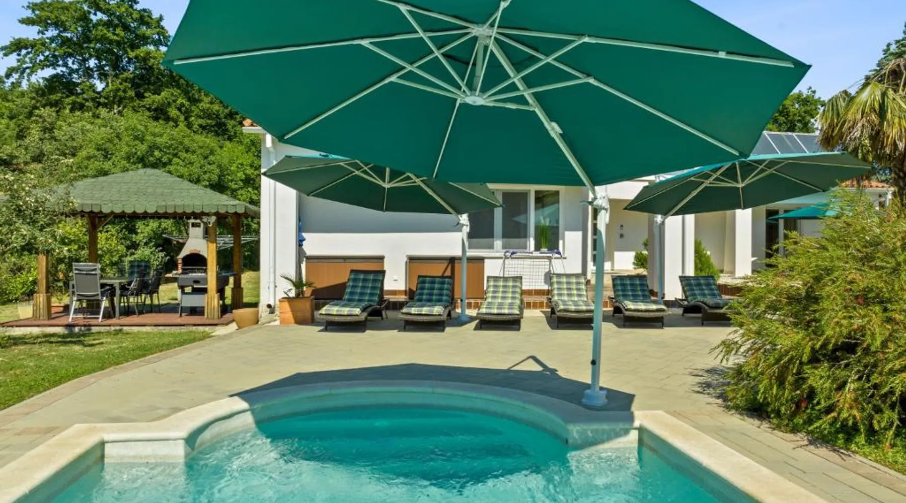 Spacious Accommodations: Grosse Luxus-Villa fur 12 Personen mit Pool, Jachuzzi und Meeresnähe in Labin offers five bedrooms and six bathrooms. The recently renovated villa features family rooms and a children's playground, ensuring comfort for all guests. Modern Amenities: Guests enjoy free WiFi, a terrace, and a private pool. Additional facilities include an electric vehicle charging station, outdoor seating area, and free on-site private parking. The property is pet-friendly and equipped with air-conditioning, a fully fitted kitchen, and a washing machine. Local Attractions: Located 28 mi from Pula Airport, the villa is close to Pula Arena (28 mi), Morosini-Grimani Castle (21 mi), and Brijuni National Park (27 mi). Other nearby attractions include Dvigrad Castle and the Archaeological Museum of Istria, each approximately 29 mi away. The private pool and fireplace are the standout features of this villa. This spacious villa comes with 5 bedrooms, a kitchenette and 6 bathrooms with a bath and a shower. Guests will find a refrigerator, a dishwasher, kitchenware and an oven in the fully equipped kitchenette. The villa also includes a barbecue. This villa has air conditioning, a washing machine, a TV with cable channels and a balcony. The unit has 6 beds.