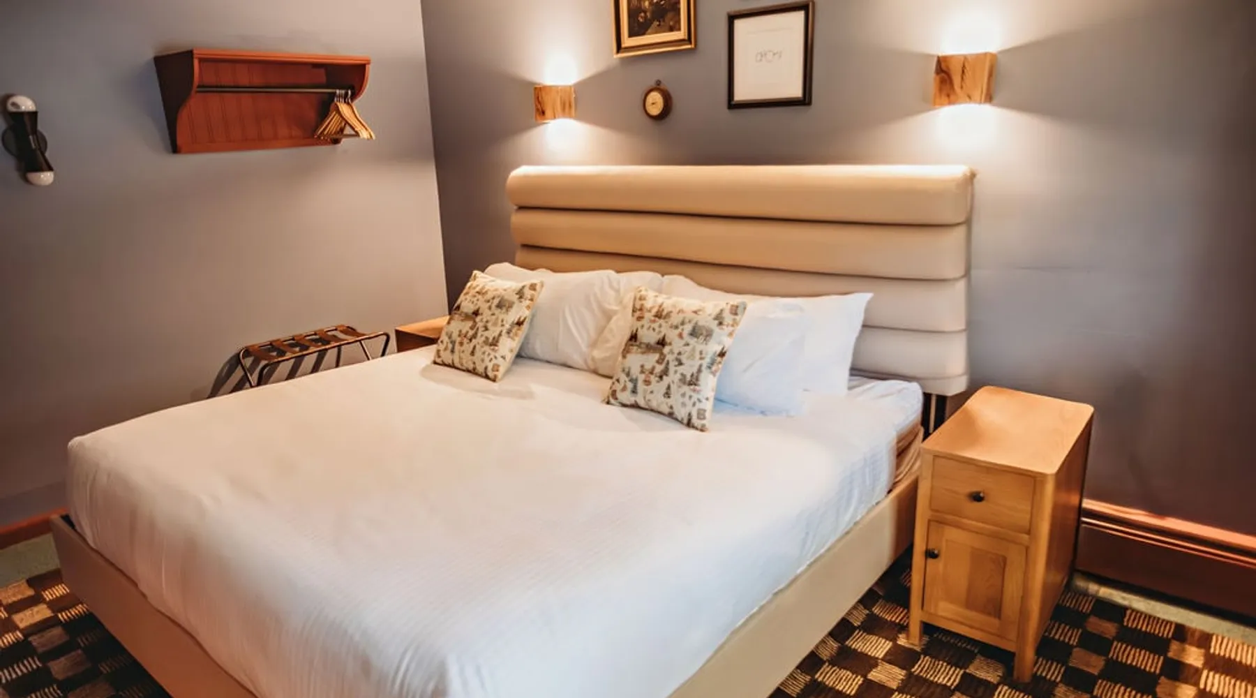 You won’t want to leave this charming, one-of-a-kind place.Complete with all a traveler needs, our Standard Queen Room is fitted with one queen bed. Tailored to your comfort, we’ve added modern updates such as energy-efficient A/C & heating and sound-deadening between rooms. Wake refreshed and start your mountain day with fresh air on the balcony or a wholesome meadow view.