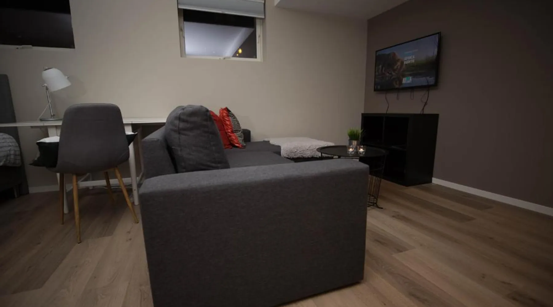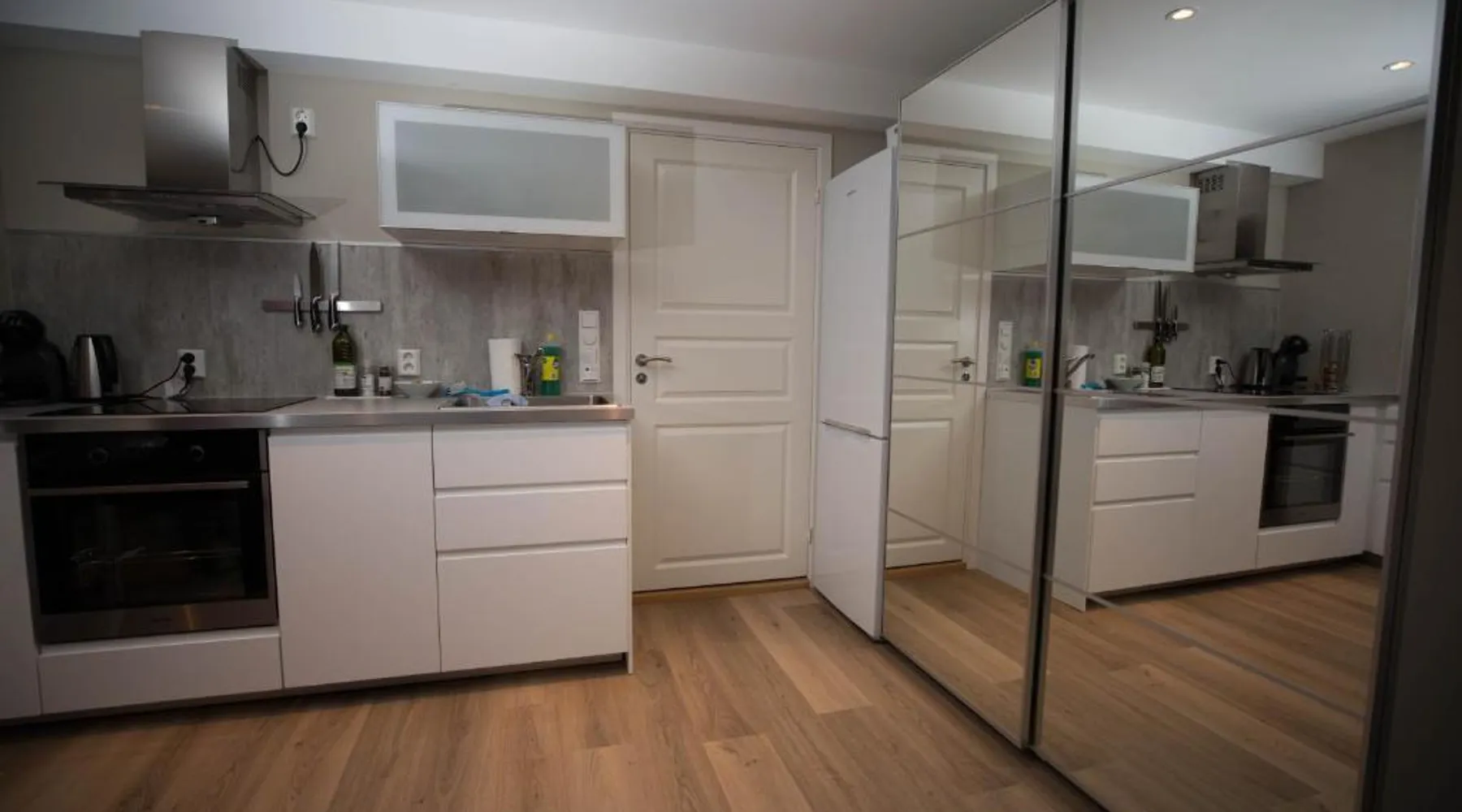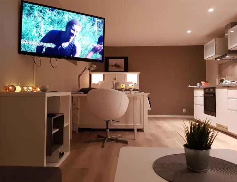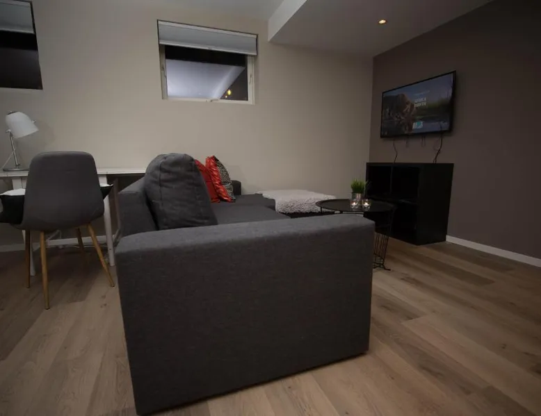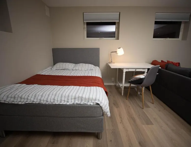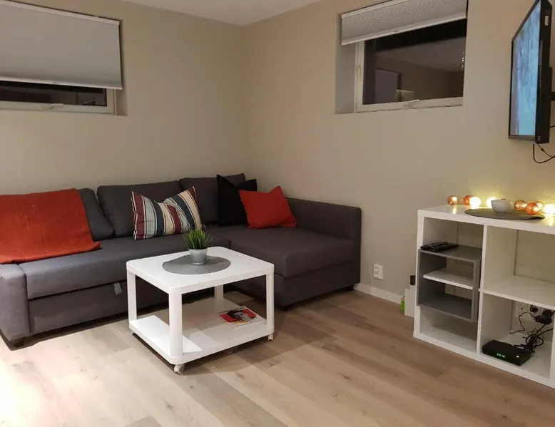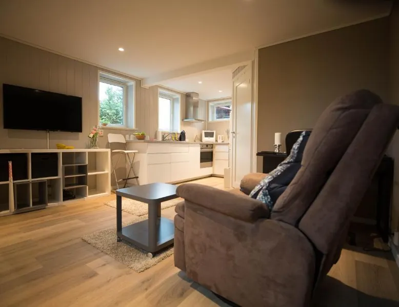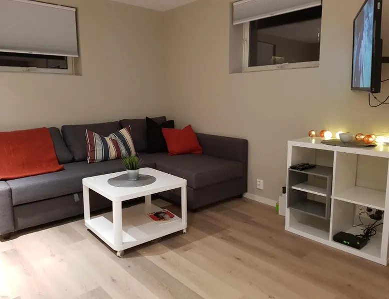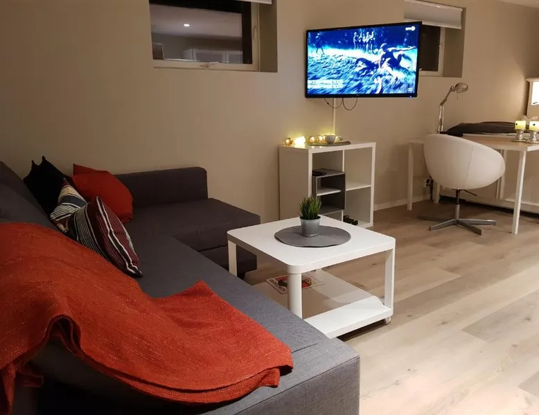 Comfortable Accommodations: Apartment at Ranheim in Trondheim offers a garden and terrace with free WiFi. The property features private check-in and check-out services, an electric vehicle charging station, laundry service, and family rooms. Modern Amenities: Guests enjoy streaming services, a washing machine, private bathroom, kitchen with modern appliances, tea and coffee maker, hairdryer, walk-in shower, refrigerator, work desk, seating area, free toiletries, microwave, shower, TV, soundproofing, parquet floors, dining area, electric kettle, kitchenware, wardrobe, oven, stovetop. Convenient Location: Located 17 mi from Trondheim Airport, the apartment is 1.2 mi from Hansbakkfjæra Beach. Nearby attractions include Ringve Botanical Gardens and Museum, SINTEF Ocean, Trondheim Maritime Museum, and The Old Town Bridge. Guests appreciate the convenient location, well-equipped kitchen, and room cleanliness. The apartment features 1 bedroom and 1 bathroom with a walk-in shower and free toiletries. Meals can be prepared in the well-fitted kitchen, which comes with a stovetop, a refrigerator, a dishwasher and kitchenware. The apartment has parquet floors, a seating area with a flat-screen TV with streaming services, a washing machine, soundproof walls, as well as a tea and coffee maker. The unit offers 2 beds.