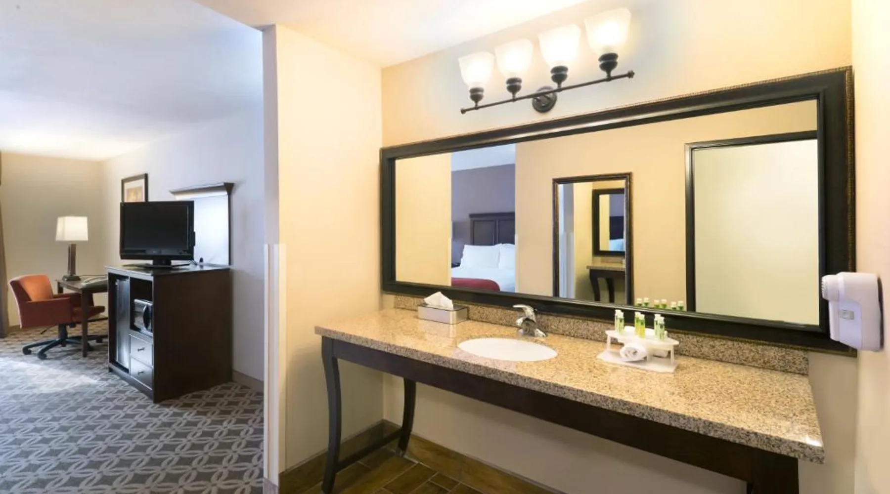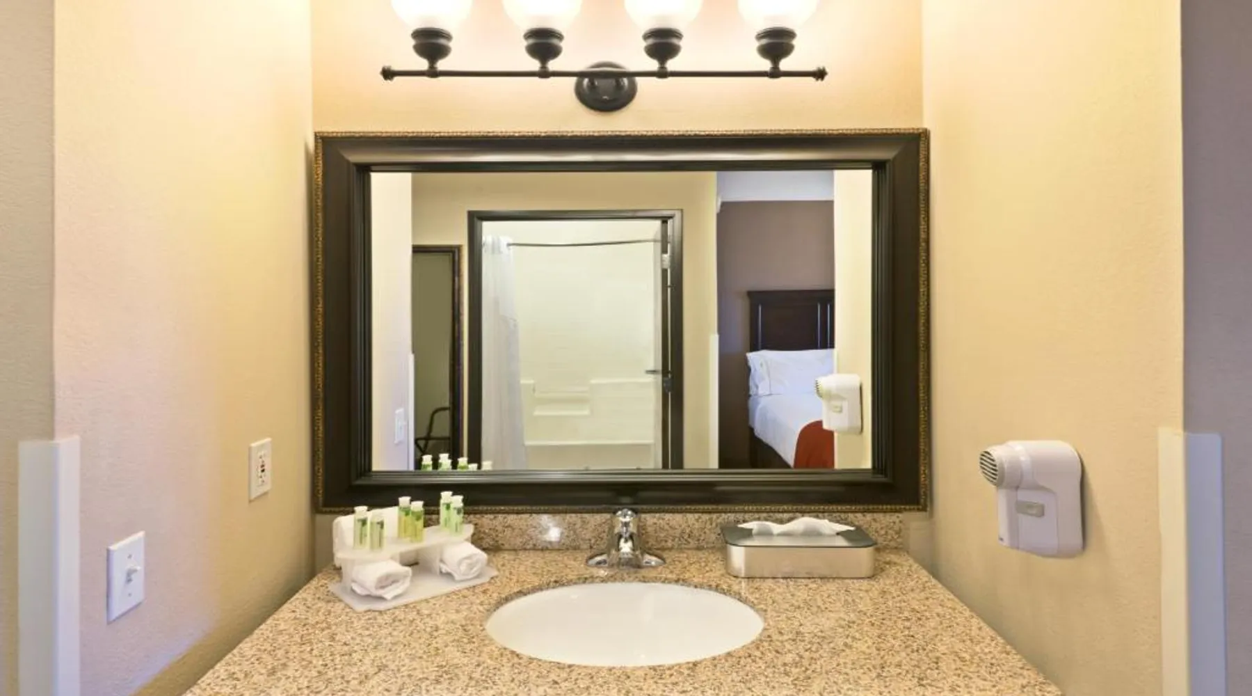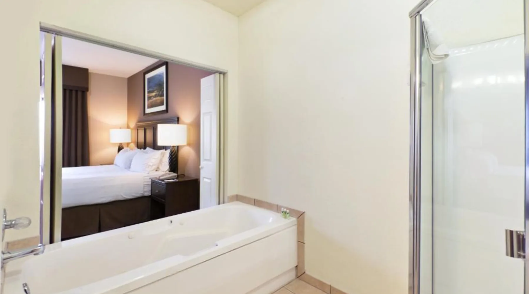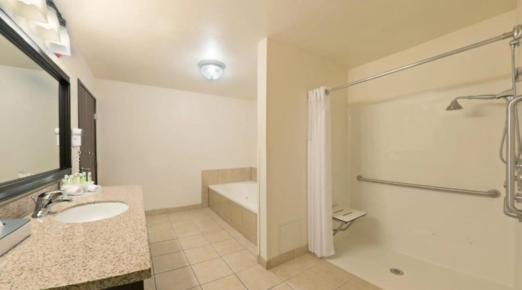 Comfortable Accommodations: Holiday Inn Express Show Low by IHG in Show Low offers air-conditioned rooms with private bathrooms, tea and coffee makers, and free WiFi. Each room includes a refrigerator, microwave, and TV. Leisure Facilities: Guests can enjoy a fitness center, indoor swimming pool, plunge pool, and hot tub. Additional amenities include a lounge, casino, and outdoor play area. Convenient Services: The hotel provides private check-in and check-out, a 24-hour front desk, and free on-site parking. Services include housekeeping, room cleanliness, and express check-in and check-out. Local Attractions: Located 1.9 mi from Show Low Regional Airport, the hotel is near fishing, skiing, hiking, and cycling activities. Mountain views enhance the stay. This suite's special features are the hot tub and the spa bath. Providing free toiletries, this suite includes a private bathroom with a walk-in shower and a hairdryer. This wheelchair accessible suite features air conditioning, a seating area with a flat-screen TV and an adapted bath. The unit offers 2 beds.