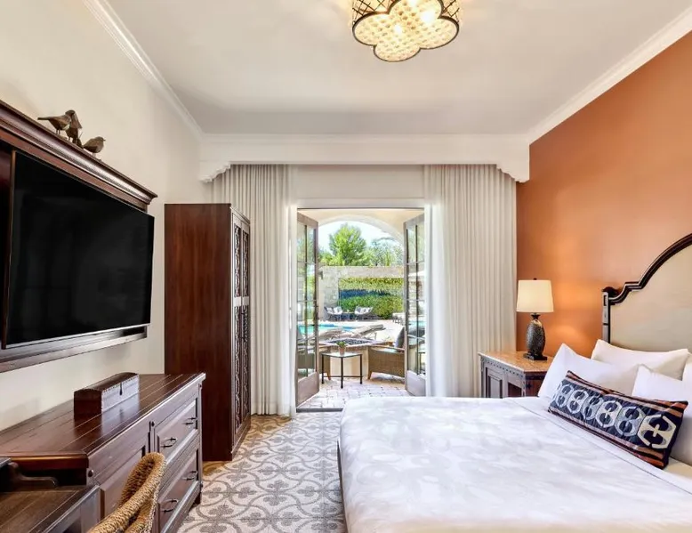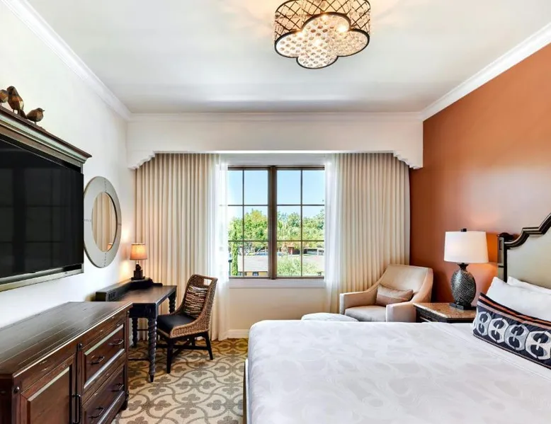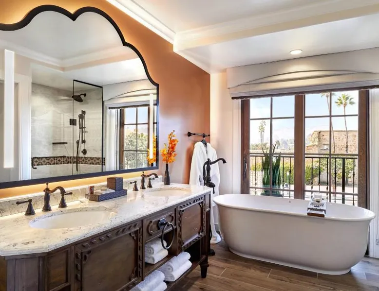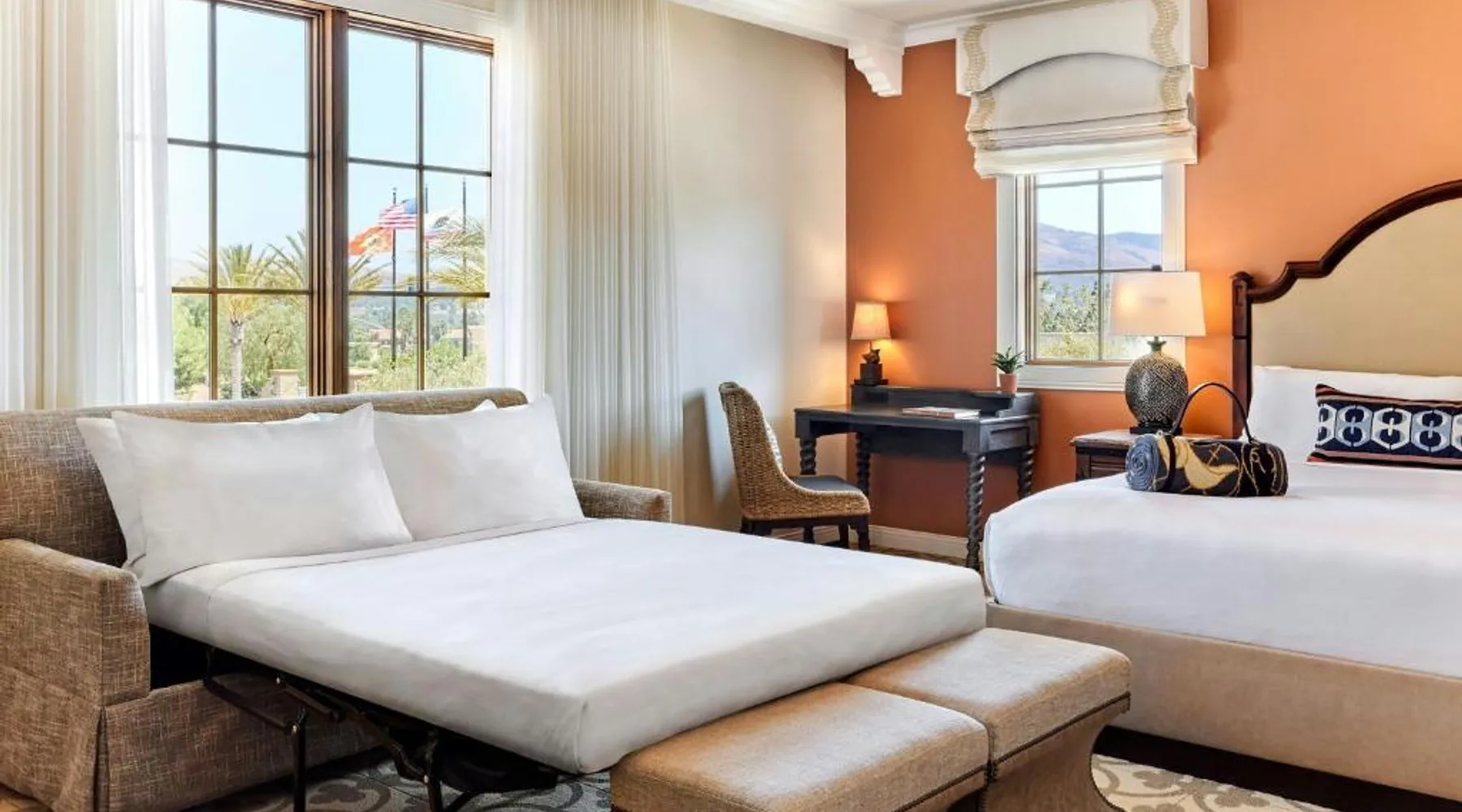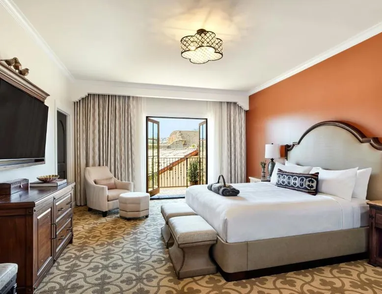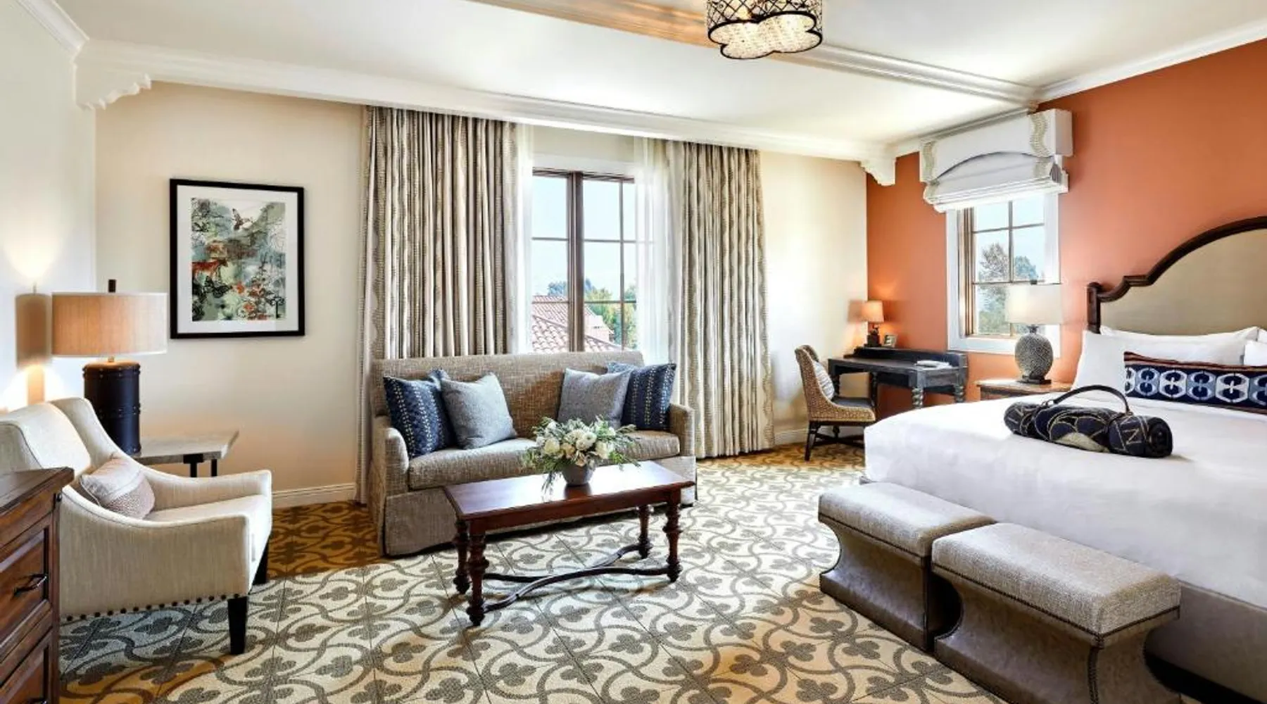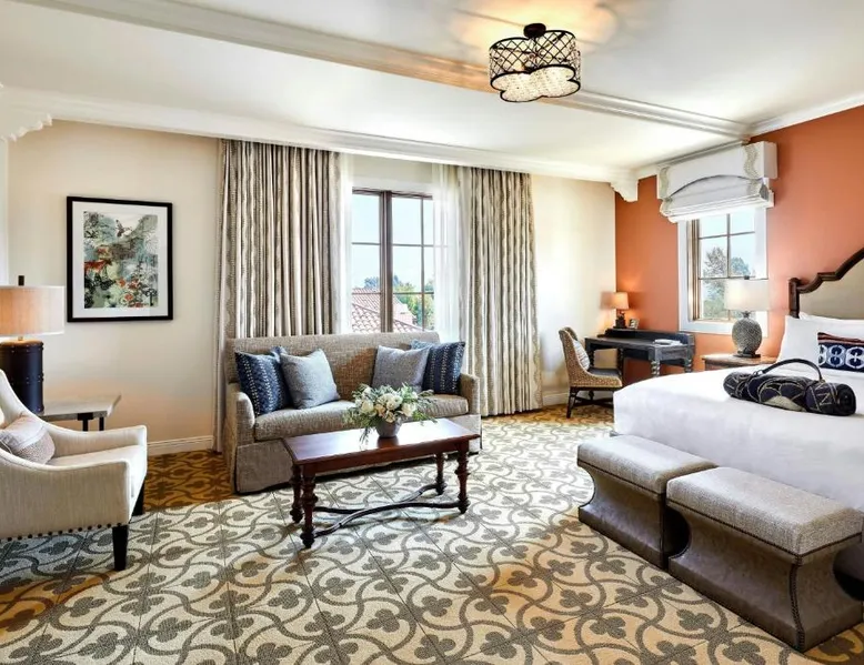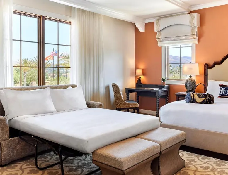 Comfortable Accommodations: Inn at the Mission San Juan Capistrano, Autograph Collection in San Juan Capistrano offers family rooms with air-conditioning, balconies, and private bathrooms. Each room includes a work desk, sofa bed, and streaming services. Dining and Leisure: Guests can enjoy Spanish cuisine at the on-site restaurant, which is highly rated for its excellent food. The hotel features a year-round outdoor swimming pool and an outdoor seating area. Additional amenities include a elevator, 24-hour front desk, electric vehicle charging station, and full-day security. Convenient Location: Located 19 mi from John Wayne Airport, the hotel is near attractions such as Fashion Island (19 mi), South Coast Plaza (21 mi), and Disneyland (29 mi). Guests appreciate the convenient location and excellent staff support. The spacious air-conditioned double room features a seating area, a wardrobe and a safe deposit box.