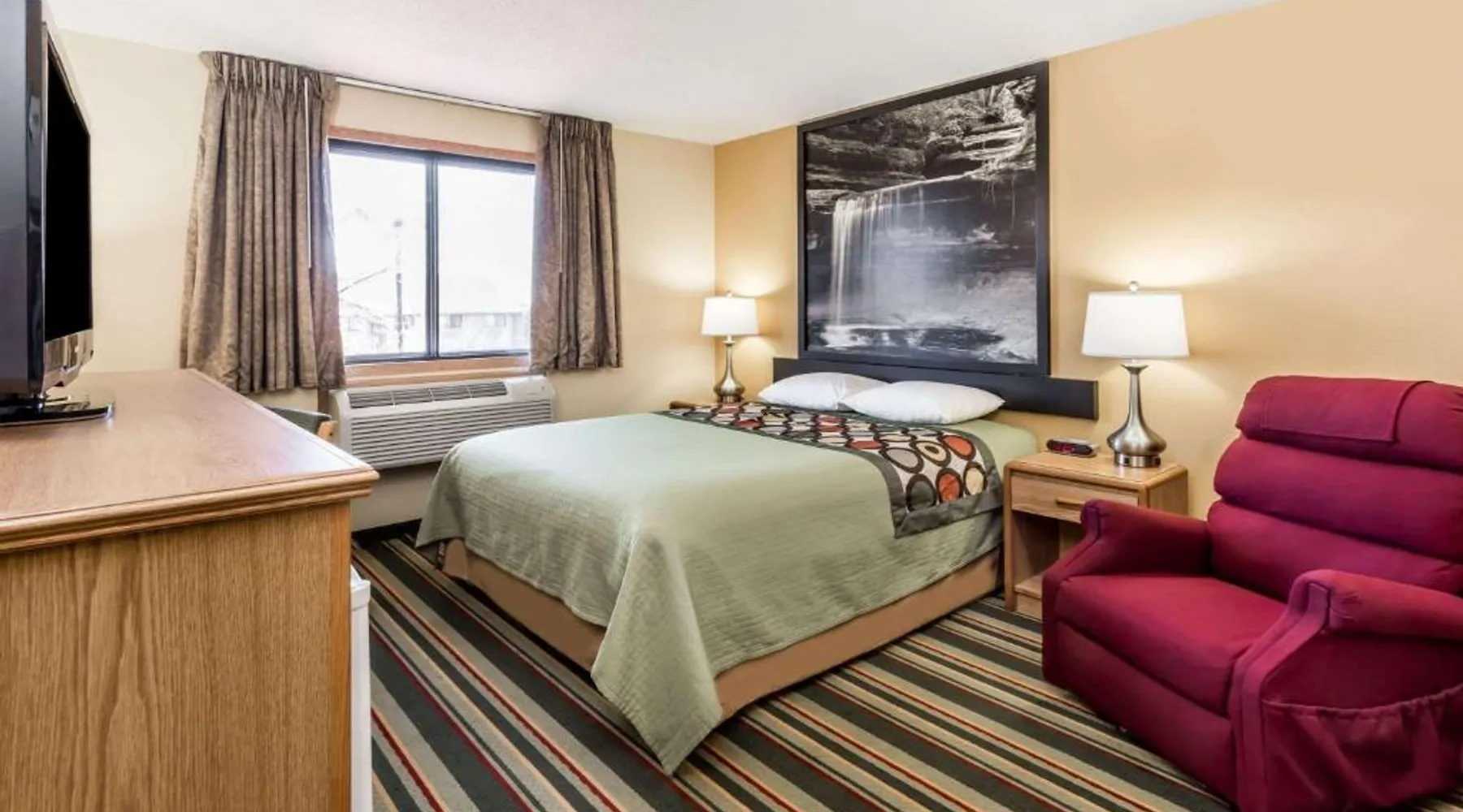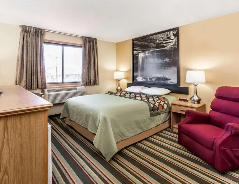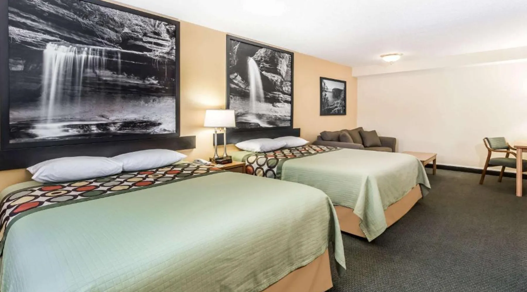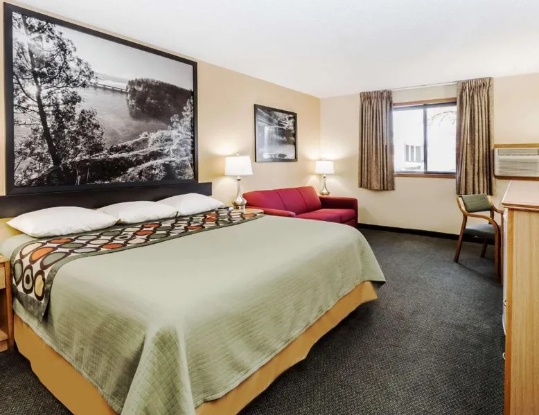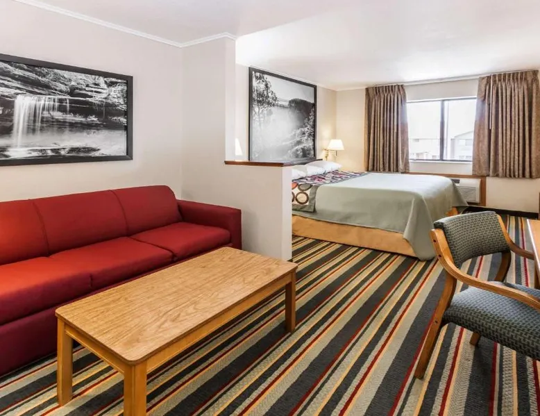 Comfortable Accommodations: Super 8 by Wyndham Ottawa Starved Rock in Ottawa offers family rooms with air-conditioning, private bathrooms, and modern amenities. Each room includes a work desk, TV, and free WiFi. Convenient Facilities: Guests enjoy free on-site parking, a elevator, 24-hour front desk, housekeeping, child-friendly buffet, full-day security, and bicycle parking. Additional amenities include a sofa bed and interconnected rooms. Dining Options: A child-friendly buffet serves fresh pastries and pancakes for breakfast. The hotel offers an à la carte breakfast with a variety of options to suit all preferences. Local Attractions: Located 73 mi from Midway International Airport, the hotel is 16 mi from Hegeler Carus Mansion. Guests can enjoy hiking and explore nearby attractions. The air-conditioned suite features 1 bedroom and 1 bathroom with a bath or a shower and a hairdryer. This suite has a tea and coffee maker, a carpeted floor and a flat-screen TV. The unit offers 3 beds.