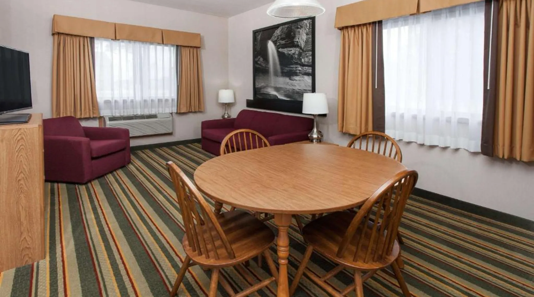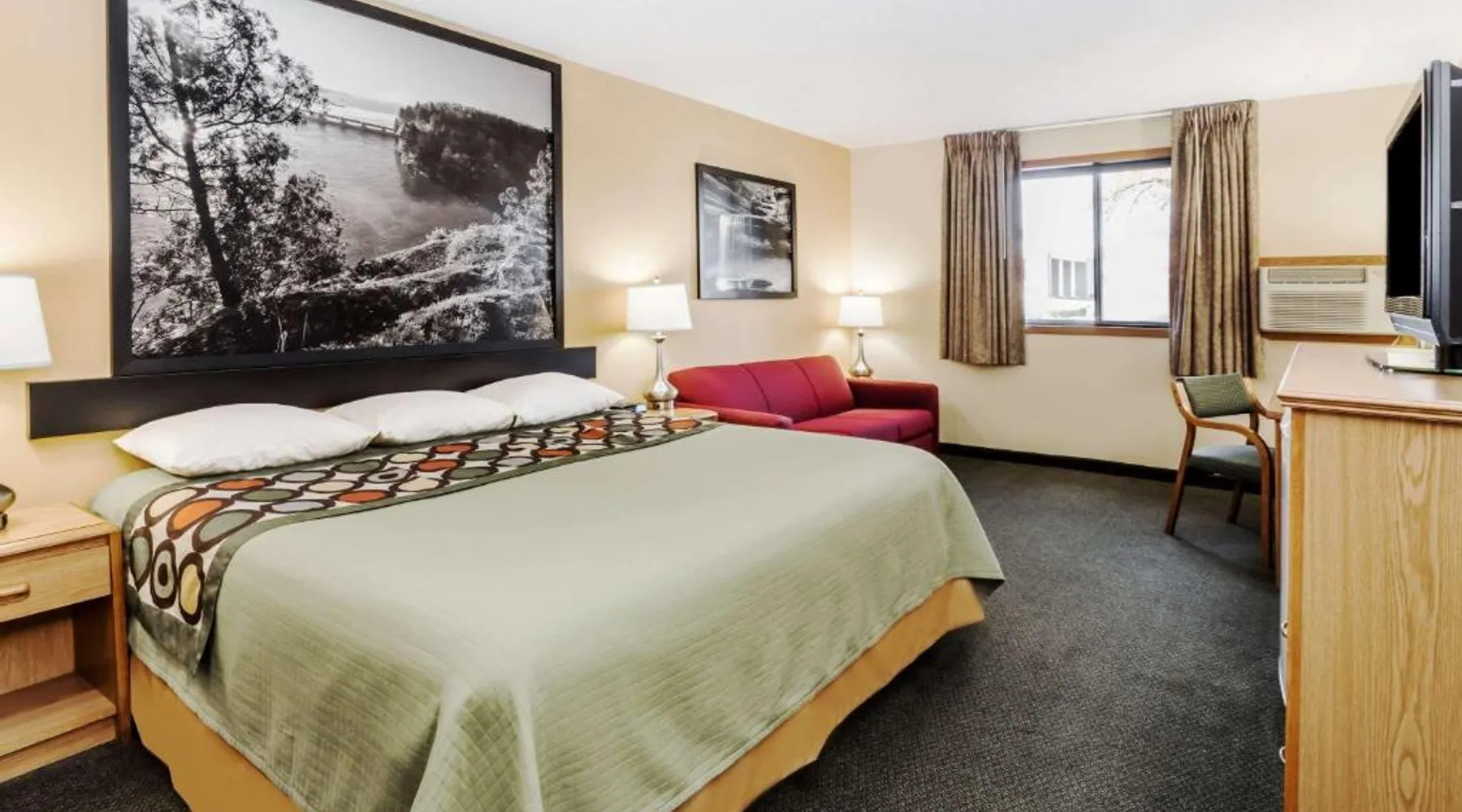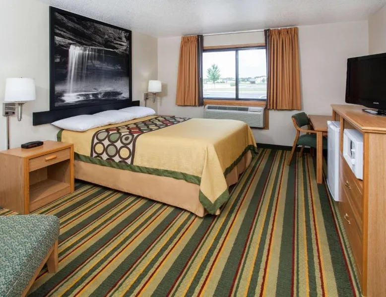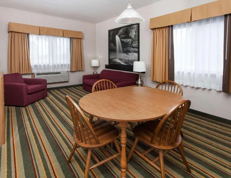 Comfortable Accommodations: Super 8 by Wyndham Ottawa Starved Rock in Ottawa offers family rooms with air-conditioning, private bathrooms, and modern amenities. Each room includes a work desk, TV, and free WiFi. Convenient Facilities: Guests enjoy free on-site parking, a elevator, 24-hour front desk, housekeeping, child-friendly buffet, full-day security, and bicycle parking. Additional amenities include a sofa bed and interconnected rooms. Dining Options: A child-friendly buffet serves fresh pastries and pancakes for breakfast. The hotel offers an à la carte breakfast with a variety of options to suit all preferences. Local Attractions: Located 73 mi from Midway International Airport, the hotel is 16 mi from Hegeler Carus Mansion. Guests can enjoy hiking and explore nearby attractions. The air-conditioned suite features 1 bedroom and 1 bathroom with a bath or a shower and a hairdryer. This suite has a tea and coffee maker, a carpeted floor and a flat-screen TV. The unit offers 3 beds.