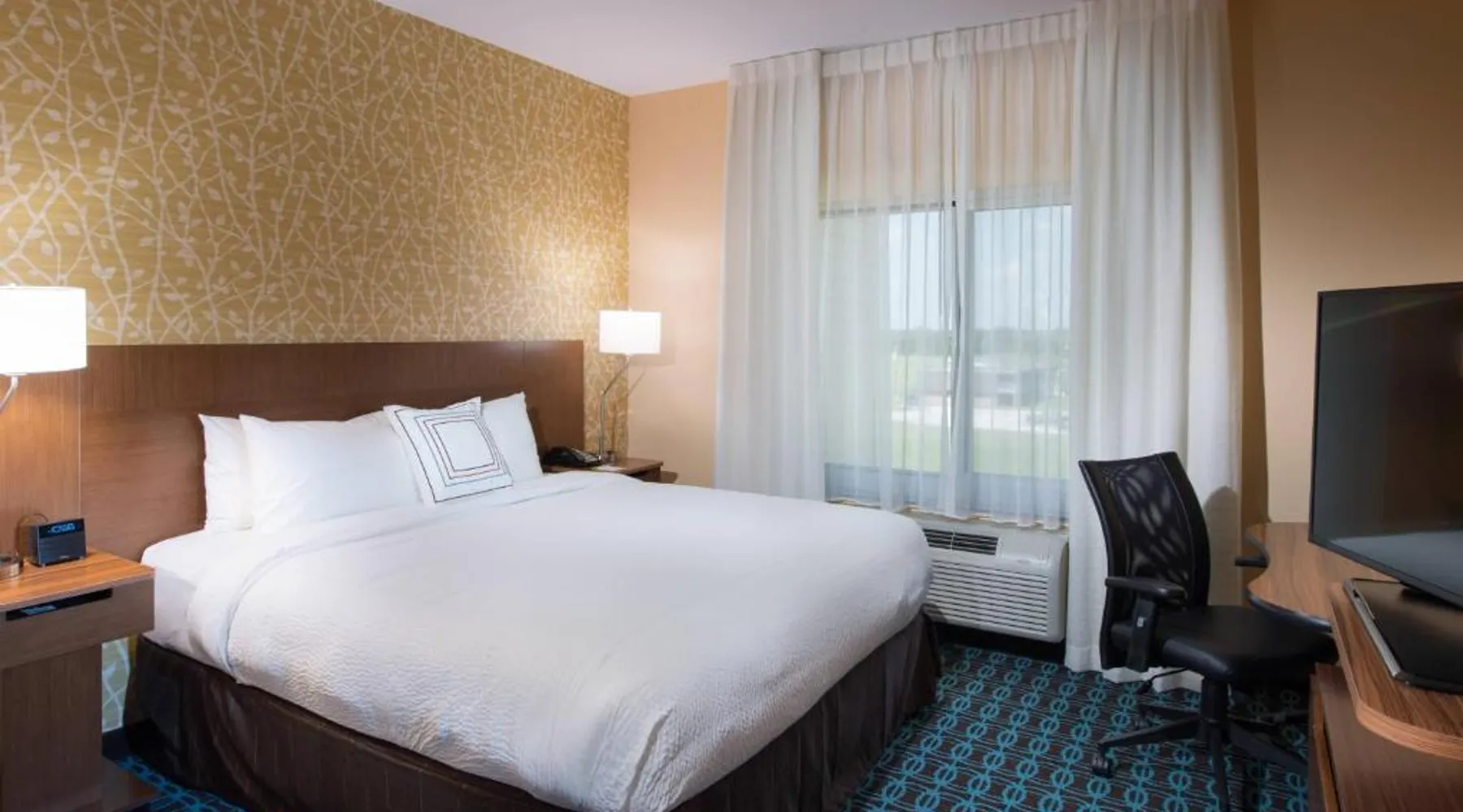 Comfortable Accommodations: Fairfield Inn & Suites by Marriott Houma Southeast in Houma offers comfortable rooms with air-conditioning, private bathrooms, and modern amenities. Guests enjoy free WiFi, streaming services, and private bathrooms with walk-in showers. Leisure Facilities: The hotel features a fitness center, seasonal outdoor swimming pool, and a lounge. Additional facilities include a minimarket, business area, and express check-in and check-out services. Free on-site private parking is available for guests. Convenient Location: Located 45 mi from Louis Armstrong New Orleans International Airport and 4.3 mi from Houma-Terrebonne Civic Center, the property offers easy access to local attractions. Guests appreciate the convenient location, room comfort, and attentive staff. A 42" flat-screen TV, microwave and compact refrigerator are featured in this room. The private bathroom offers a glass-enclosed walk-in shower.