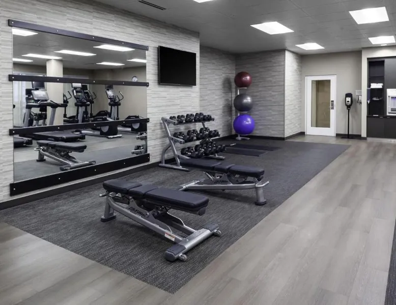 Comfortable Accommodations: Residence Inn by Marriott St. Louis West County in Saint Louis offers family rooms with air-conditioning, private bathrooms, and free WiFi. Each room includes a bath, hairdryer, sofa bed, seating area, TV, and wardrobe. Exceptional Facilities: Guests can enjoy a fitness center, indoor swimming pool, and on-site restaurant serving American breakfast. Additional amenities include a 24-hour front desk, paid on-site parking, and free toiletries. Prime Location: Located 19 mi from St. Louis Lambert International Airport, the hotel is near attractions such as Grant's Farm (9.9 mi), St. Louis Zoo (11 mi), and Six Flags Over Mid-America (18 mi). Highly rated for room cleanliness, staff, and breakfast. The suite offers air conditioning, a seating area, as well as a private bathroom boasting a bath and a hairdryer. The suite features a wardrobe, a safe deposit box, a sofa, a carpeted floor and a flat-screen TV.