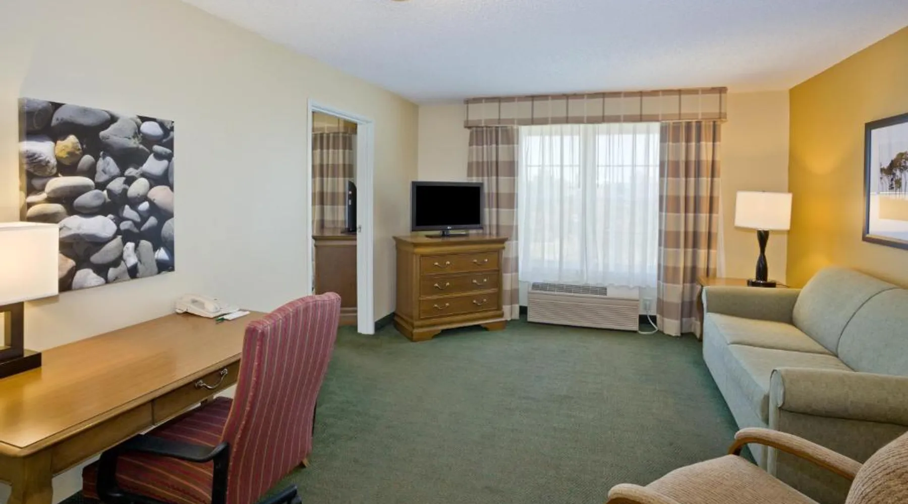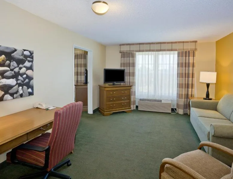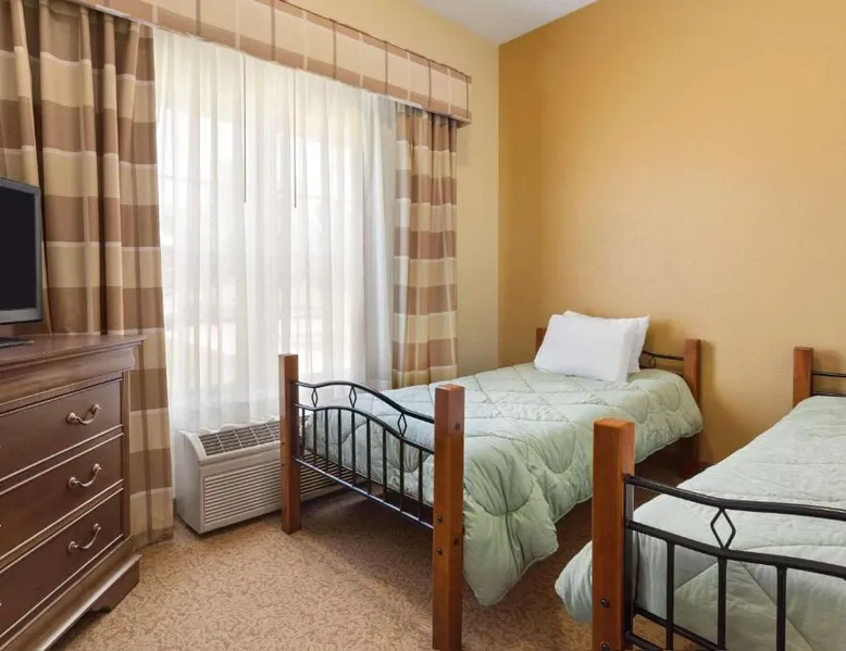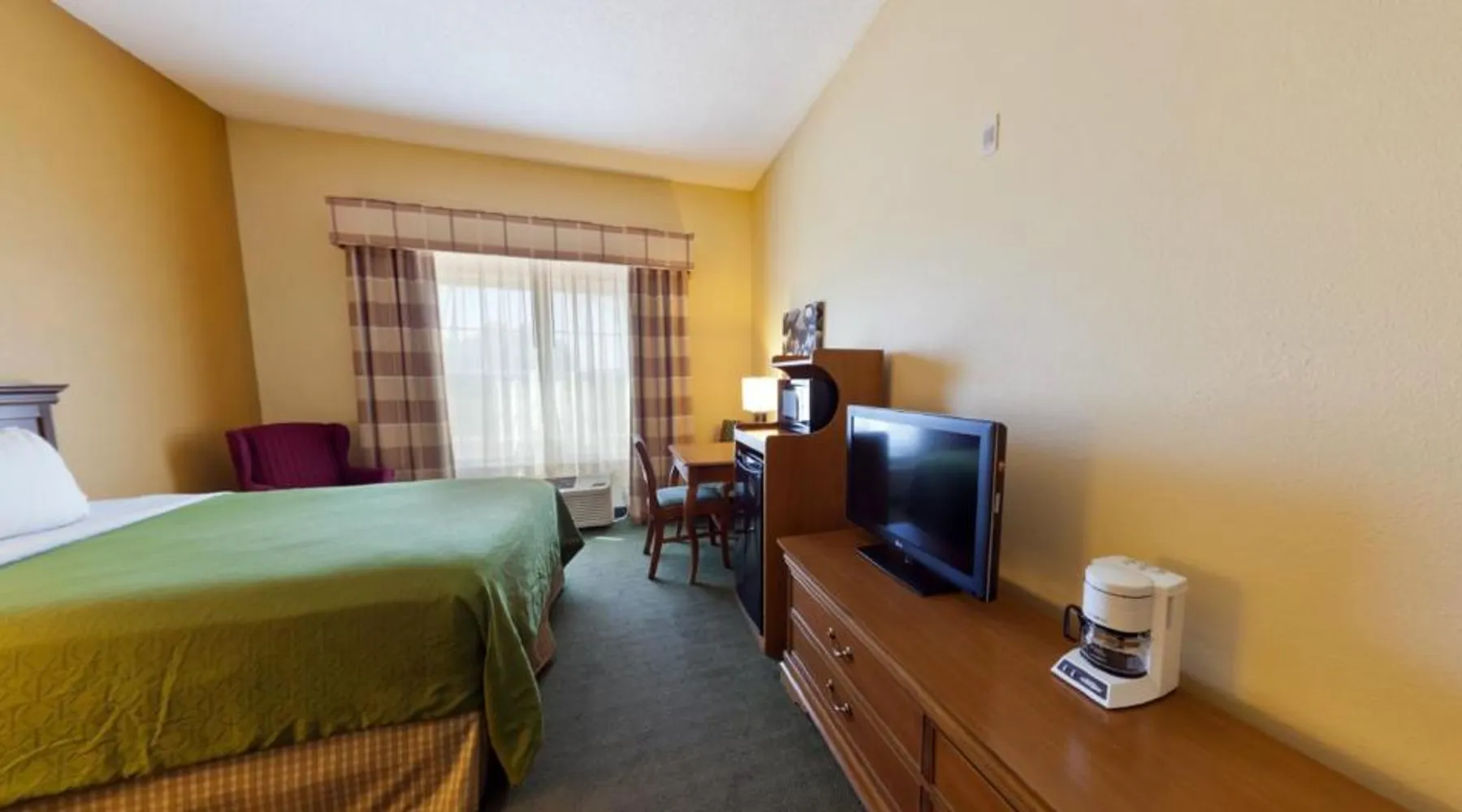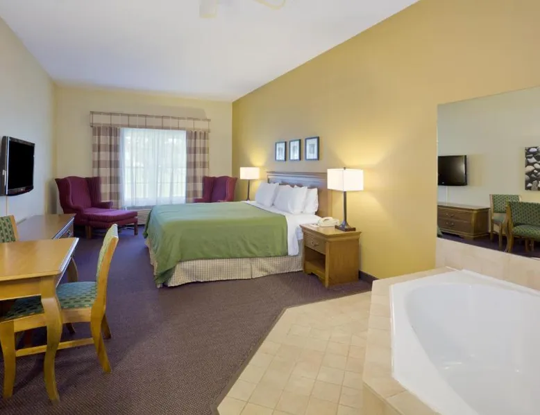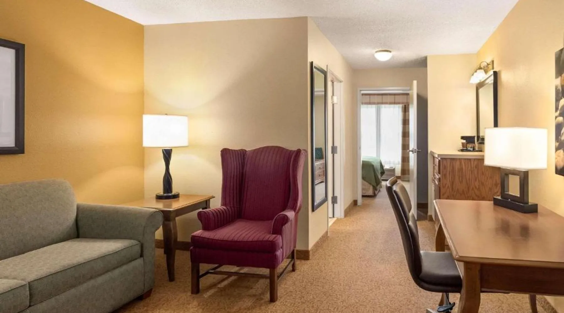 Comfortable Accommodations: Country Inn & Suites by Radisson in Salina offers family rooms with air-conditioning, private bathrooms, and free WiFi. Each room includes a work desk, sofa bed, and soundproofing for a restful stay. Leisure Facilities: Guests can enjoy a fitness center, indoor swimming pool, and a serene garden. Additional amenities include a hot tub, sauna, and outdoor seating area, providing ample opportunities for relaxation. Convenient Services: The hotel features a 24-hour front desk, daily housekeeping, and express check-in and check-out services. Free on-site parking, a business area, and luggage storage enhance the guest experience. Prime Location: Located 1.9 mi from Salina Regional Airport, the hotel is praised for its attentive staff, room cleanliness, and convenient location. A flat-screen TV, microwave and fridge are provided in this accessible room.