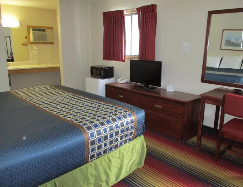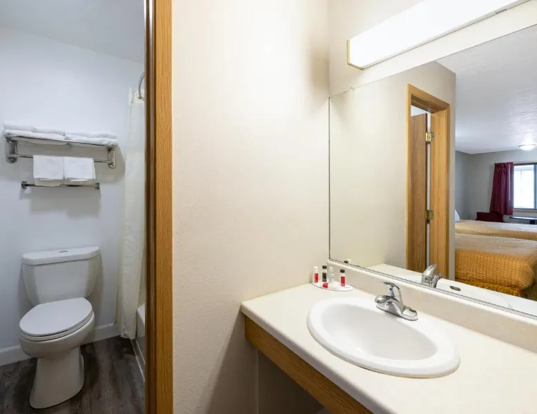 Comfortable Accommodations: Travelodge by Wyndham Spirit Lake/Okoboji in Spirit Lake offers well-appointed rooms with air-conditioning, private bathrooms, and carpeted floors. Each room includes a bath, hairdryer, wardrobe, and a private entrance. Essential Facilities: Guests enjoy a serene garden and complimentary WiFi throughout the property. Additional amenities include a 24-hour front desk, housekeeping service, and free on-site private parking. Convenient Location: Located 98 mi from Sioux Falls Regional Airport, the motel is 5 mi from Arnolds Park Amusement Park and near a car park. Highly rated for its attentive staff, room cleanliness, and value for money. The double room features air conditioning, a private entrance, as well as a private bathroom boasting a bath or a shower and a hairdryer. The double room provides a wardrobe, a carpeted floor and heating. The unit has 1 bed.