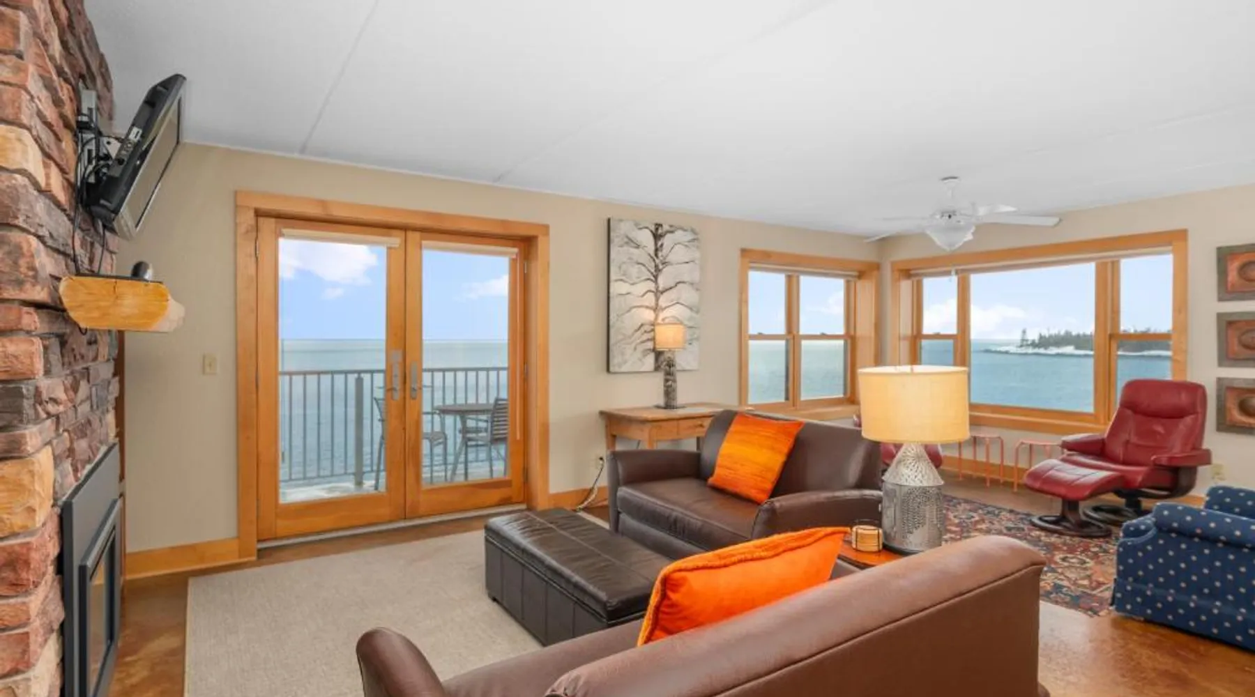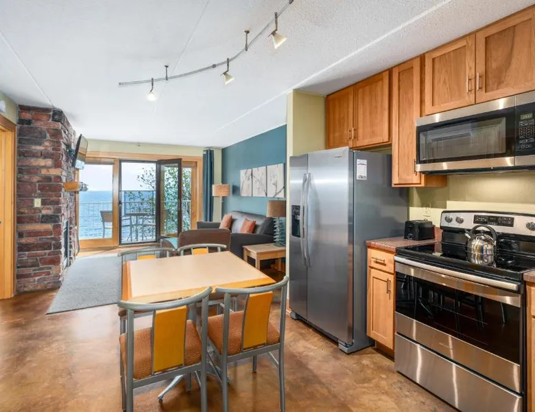 Comfortable Accommodations: East Bay Suites in Grand Marais offers family rooms with balconies and private bathrooms. Each unit includes a kitchenette, air-conditioning, and free WiFi. Exceptional Facilities: Guests enjoy an outdoor fireplace, elevator, outdoor seating area, and barbecue facilities. Additional amenities include bicycle parking, bike hire, and free on-site private parking. Prime Location: Located on East Wisconsin Street, the aparthotel provides easy access to lakes and scenic views. Skiing and cycling activities are available nearby. Highly rated for its scenic location and excellent facilities. This suite features a balcony with views of the lake, 2 sofa beds and 2 full bathrooms. A full kitchen is also included.