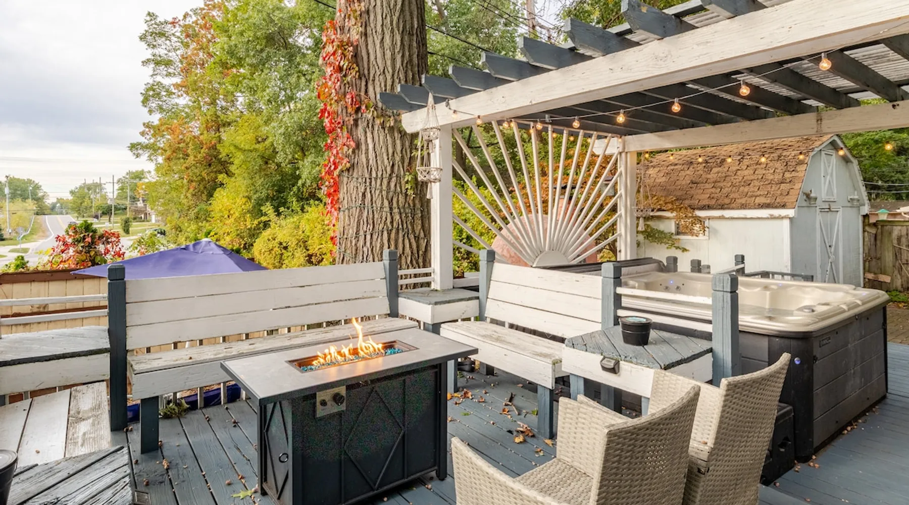 This 4 bedroom lake-view home in Waterford Michigan is the perfect place for families, friends or anyone looking for a peaceful escape. There are tons of outstanding outdoor amenities including a Wood Fired Pizza Oven, 4 Hole Mini-Golf Course, Hot Tub, Outdoor Projector, 2 Seated Hammocks, 2 Fire Pits and a beautiful view of Cass Lake. Conveniently located just 1 mile from Dodge State Park Beach and only a short walk to Skipper Buds Boat Rental. 20 min drive to Great Lakes Crossing & Top Golf The space ~4 Queen Beds ~2 Full Bathrooms ~Hot Tub / Jacuzzi ~4 Hole Mini-Golf Course ~Outdoor/Indoor Movie Projector ~Mini Outdoor Bowling ~View of Cass Lake ~Wood Fired Pizza Oven ~Underground Barbacoa Pit ~ Wood & Propane Fire Pits (firewood not provided) ~Fully Stocked Kitchen & Coffee Bar ~Central Heating ~Washer & Dryer ~5 Window Ac-Units ~Pizza Pans, Shovel, and Basic Utensils ~Bedding, Blankets, Pillows, Towels, Shampoo, Conditioner, Body Wash Provided Nearby Attractions ~1 mile to Dodge State Park Beach ~Cass Lake Pontoon Rental Across the Street ~20 minutes from DTE Music Theater, Pine Knob Ski Resort, Downtown Birmingham, Auburn Hills, Top Golf & Great Lakes Crossing Mall ~30 minutes from Mt Holly Ski Resort, Downtown Royal Oak, & Sommerset Mall in Troy ~40 minutes from Mt Brighton Ski Resort & Downtown Detroit ~10 minutes from Waterford Oaks Waterpark Backyard ~Hot Tub ~Propane Fire Pit ~Outdoor / Indoor Movie Projector ~Wood Fired Pizza Oven ~Underground Barbacoa Pit ~View of Cass Lake ~2 Large Decks with Plenty of Seating ~2 Seated Hammocks ~Propane & Wood Fire Pits ~4 Hole Mini-Golf Course ~Mini Outdoor Bowling ~Corn hole / Bean Bag Toss / Shuffle Board ~ Giant Jenga / Connect 4 / Poker Set Guest access Great neighborhood for walking and biking with views of lakes throughout the neighborhood. The house is right in between All Sports Cass Lake and Elizabeth Lake! Other things to note The home comfortably sleeps 10 but can fit 2 more with an extra air mattress. (Note: Fork N Pint right next door recently burned down and an ongoing investigation has prevented the removal of the burned down building )