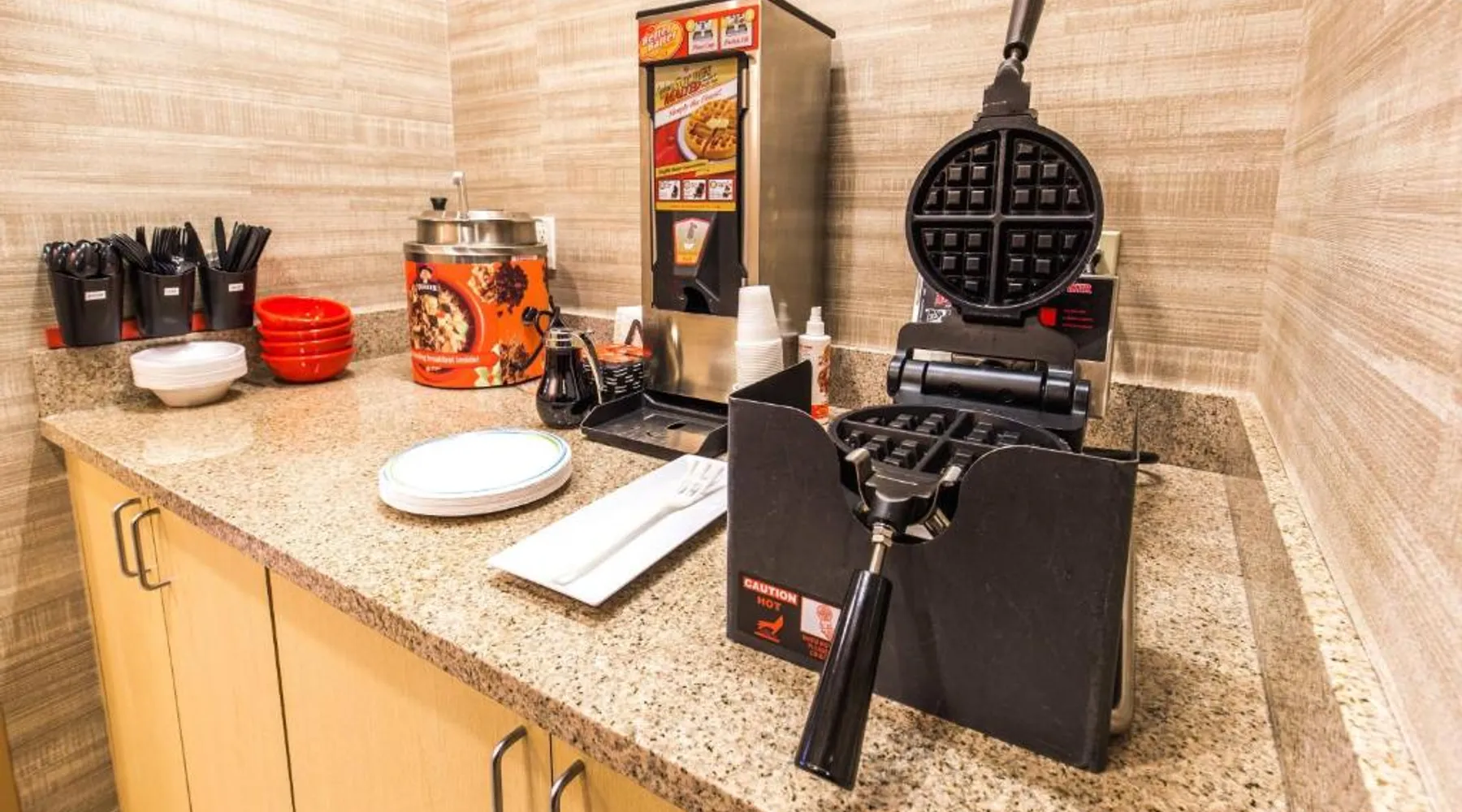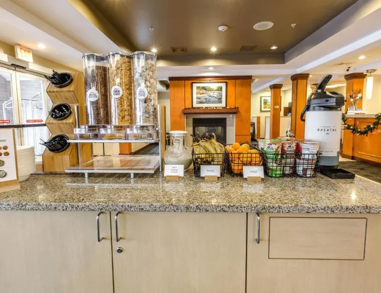 Comfortable Accommodations: TownePlace Suites by Marriott Gilford offers family rooms with air-conditioning, kitchenettes, private bathrooms, and free WiFi ensure a pleasant stay. Each room includes a work desk, sofa bed, and dining area. Exceptional Facilities: Guests can enjoy a fitness center, indoor swimming pool, and free use of bicycles. Additional amenities include an outdoor fireplace, fitness room, and outdoor seating area. Delicious Breakfast: A continental buffet breakfast is served daily, featuring warm dishes, fresh pastries, pancakes, cheese, fruits, and juice. Special diet menus are available. Convenient Location: Located 50 mi from Manchester Boston Regional Airport, the hotel is near attractions such as New Hampshire State Capitol (29 mi) and New Hampshire Supreme Court (30 mi). Free on-site parking is provided. Guests can make meals in the kitchenette that is equipped with a stovetop, a refrigerator, a dishwasher and kitchenware. The spacious double room provides air conditioning, a tea and coffee maker, a wardrobe, tumble dryer, as well as a flat-screen TV.