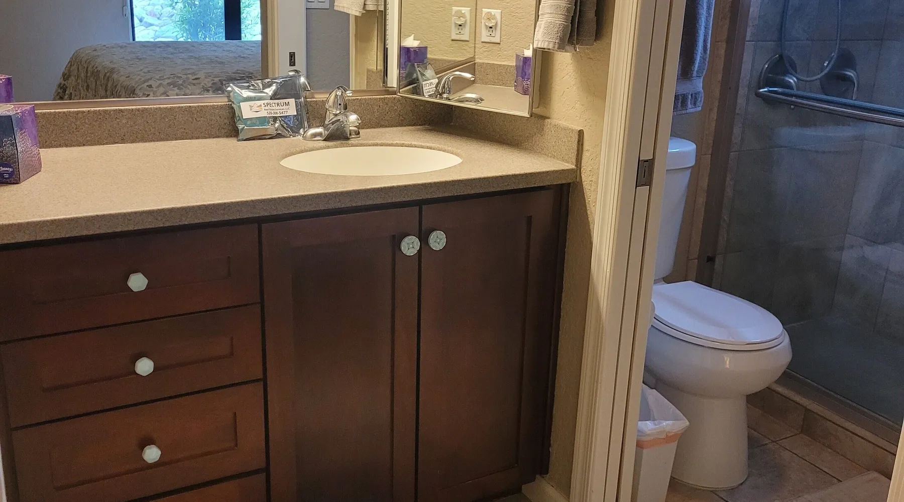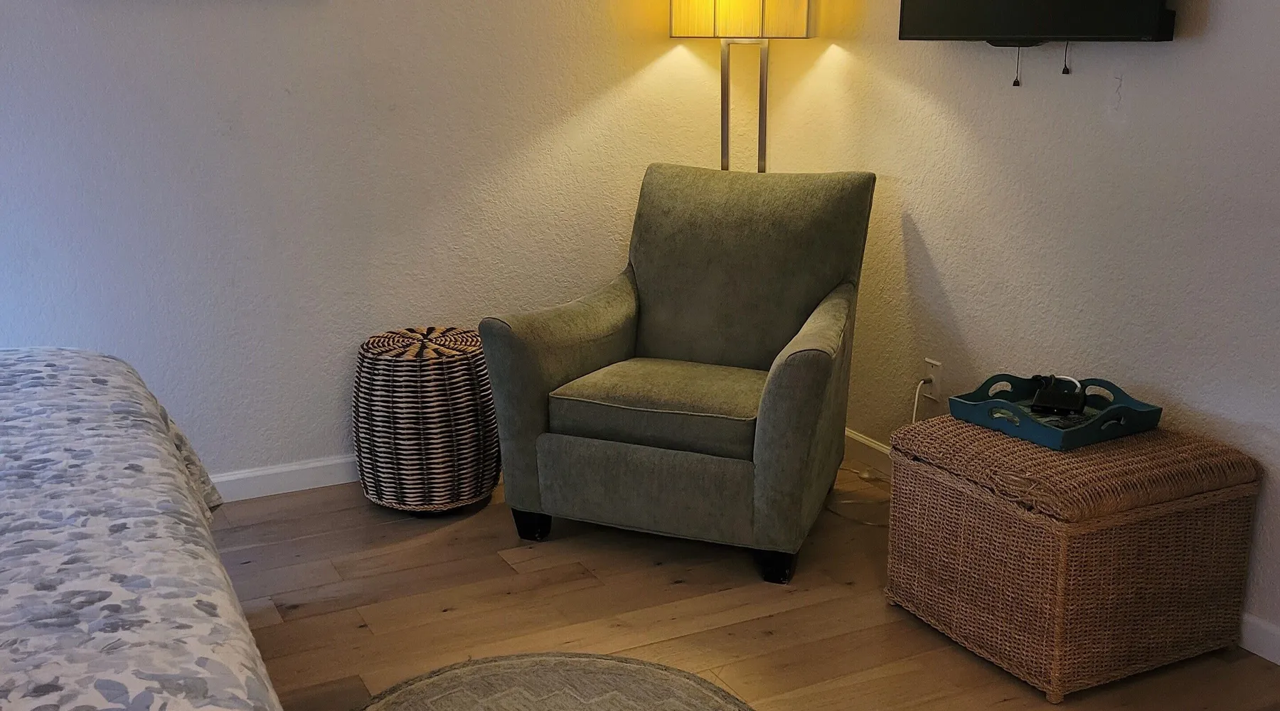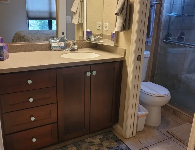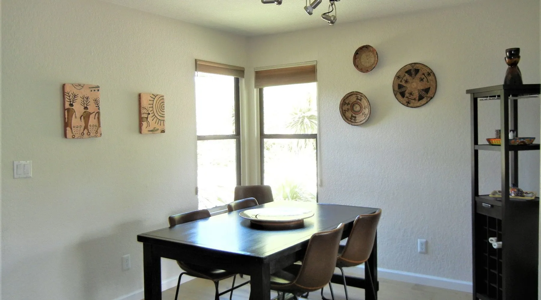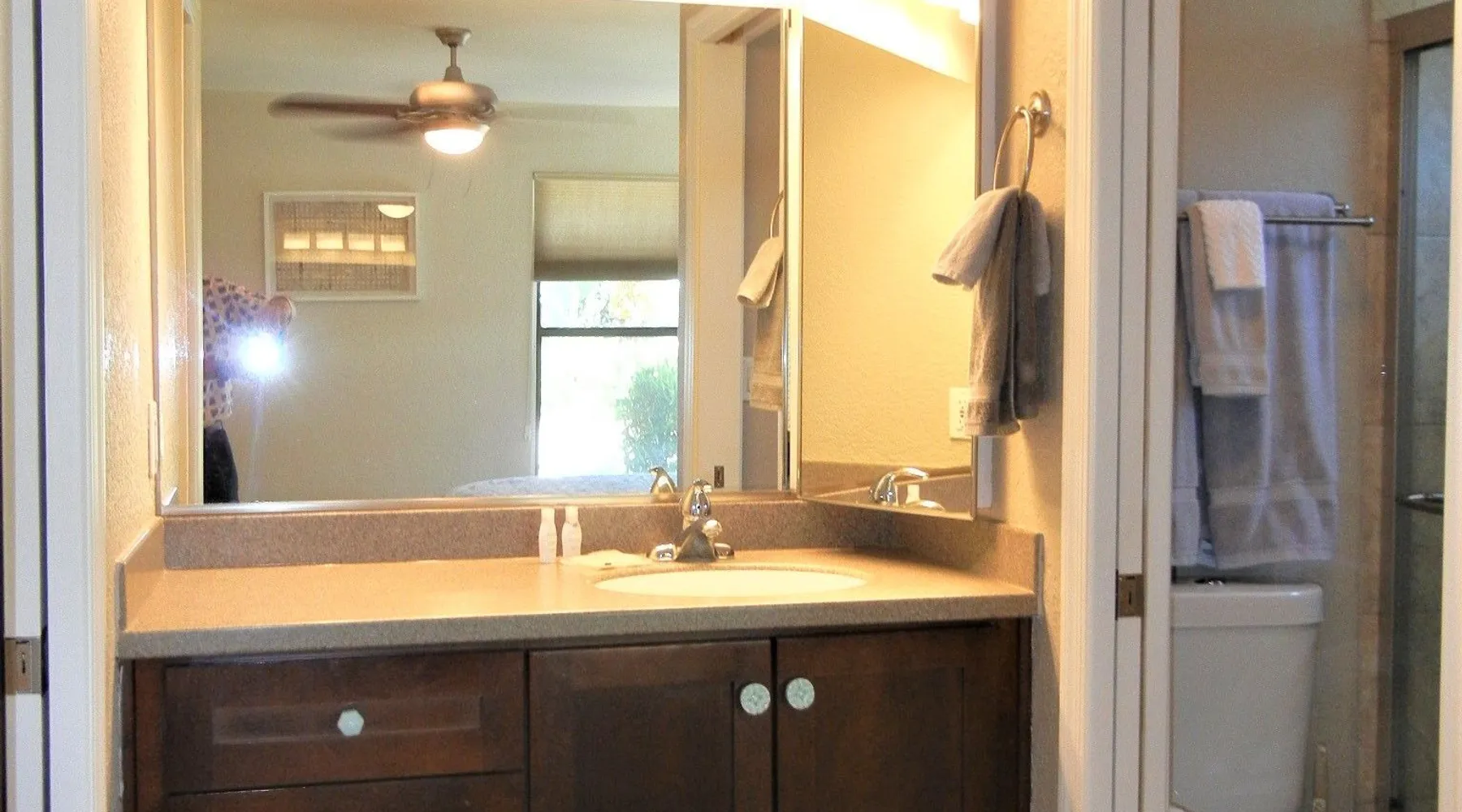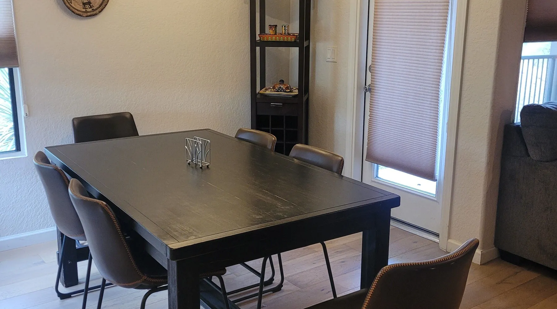 3 Bedroom Gem - First floor, Corner with Mountain Views and extended Patio. All new wood flooring just added and new paint! Condo is equipped to sleep and accommodate up to 6 people including dining table. Split floor plan highlights king bed in the master with walk in shower and closet and the second and third bedroom sharing a bathroom with shower tub. Second bedroom has 2 single beds with kit to convert to a king and mountain views from the windows. Third bedrooms has a queen bed and desk Kitchen is fully equipped with stainless steel appliances. Front patio offers a relaxing sitting area with the back patio highlighting a table with chairs for dining, and relaxing couch and chairs to enjoy the majestic mountain views!!! This is Tucson at it's best!