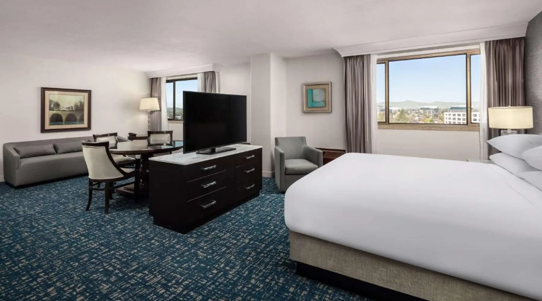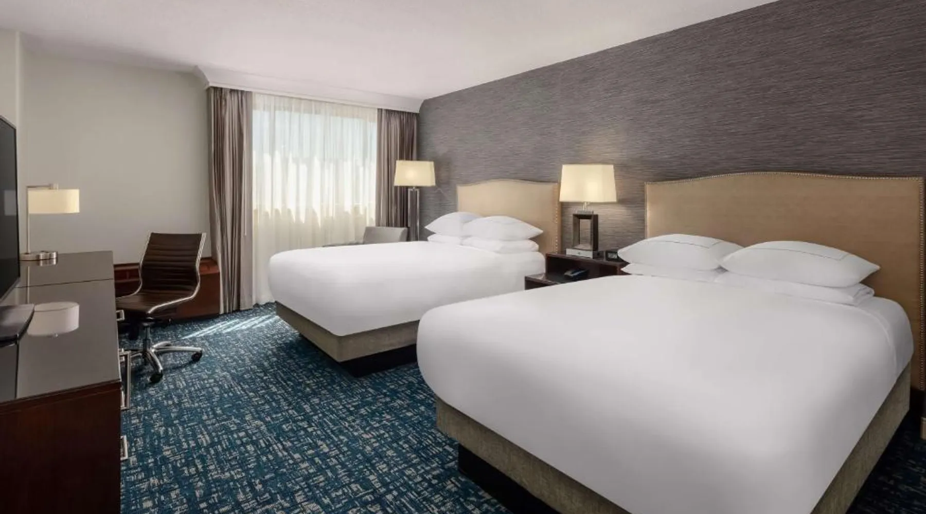 One of the major benefits for travelers to come to our East Bay hotel time and time again is our location – the Hilton Concord is easily accessible to freeways in addition to having two open-air shopping centers located right across the street. Walkable options include a Whole Foods 360 grocery store, Peet’s Coffee, Barnes and Noble, a movie theater, and over 30 dining choices within a 4-block radius. We’re within two miles of downtown, Hurricane Harbor Concord, the Concord BART station, and Todos Santos Plaza. Enjoy our outdoor pool, fitness center, and Mount Diablo views from your guest room, and Creekside Restaurant is open for breakfast daily. This quadruple room is air-conditioned and has a flat-screen TV with cable channels, a tea and coffee maker, a safe deposit box and heating. The unit has 2 beds.