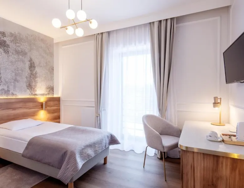 The modern 3-star Hotel Magellan is located in the Sulejów Landscape Park, 0.7 mi from the beach at the Sulejów Lake. It features a spa center with indoor pools, a hot tub and body treatments. The Magellan offers classically furnished rooms with free Wi-Fi. Each comes with a work desk and a modern bathroom with a shower and a hairdryer. A breakfast is served every day at the hotel’s restaurant, which specializes in Polish and international dishes. Guests can enjoy a drink at the bar or on the spacious terrace café. Front desk staff is available 24 hours a day and can arrange shuttle and laundry services. Bicycle rental and a beauty salon are also available. Guests can relax in the sauna or steam room. Offering free toiletries, this double room includes a private bathroom with a shower and a hairdryer. The double room offers a wardrobe, an electric kettle, a tiled floor, a flat-screen TV with satellite channels, as well as garden views. The unit has 1 bed.