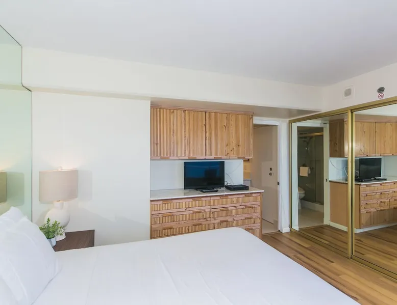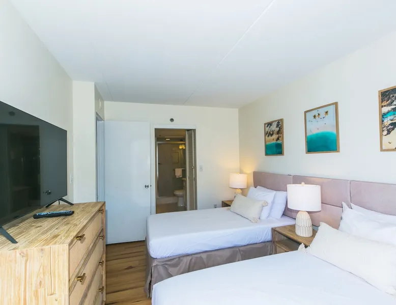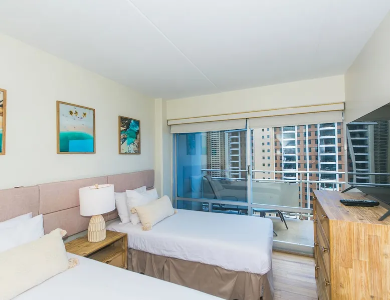 Located in the most DESIRABLE spot within the Ilikai Hotel, this corner 2-bedroom condo has the best views of the Pacific Ocean overlooking the Duke Kahanamoku Lagoon & Ala Wai Yacht Harbor. This spacious condo has 1000 sq ft of living space & 2-lanais totaling 240 sq ft - this is THE perfect Friday night fireworks vantage point. Updated in 2023 with renovated bathrooms and modern but comfortable furnishings, this condo provides luxurious accommodations for your Waikiki stay. Registration details 260100070426, 1844, TA-059-875-3280-01