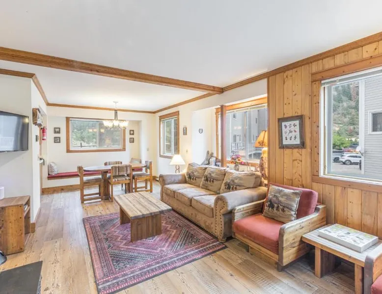 Spacious Holiday Home in Ouray: River Park 1252 offers a spacious setting in Ouray, featuring two bedrooms and a bathroom. Guests enjoy mountain views and a private entrance. Modern Amenities: The property provides free WiFi, massage services, and a fully equipped kitchen with a refrigerator, microwave, dishwasher, and oven. Additional amenities include a washing machine, fireplace, and TV. Convenient Facilities: A 24-hour front desk and tour desk are available. Free on-site private parking ensures easy access. Local Attractions: Montrose Regional Airport is 37 mi away. Winter sports enthusiasts can explore the surrounding area. This apartment features a fireplace. Boasting a private entrance, this spacious apartment also features 2 bedrooms, a seating area and 1 bathroom with a shower and a hairdryer. Meals can be prepared in the well-fitted kitchen, which has a stovetop, a refrigerator, a dishwasher and kitchenware. The apartment features a flat-screen TV with cable channels, a washing machine, a tea and coffee maker, a dining area as well as mountain views. The unit has 3 beds.