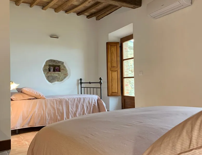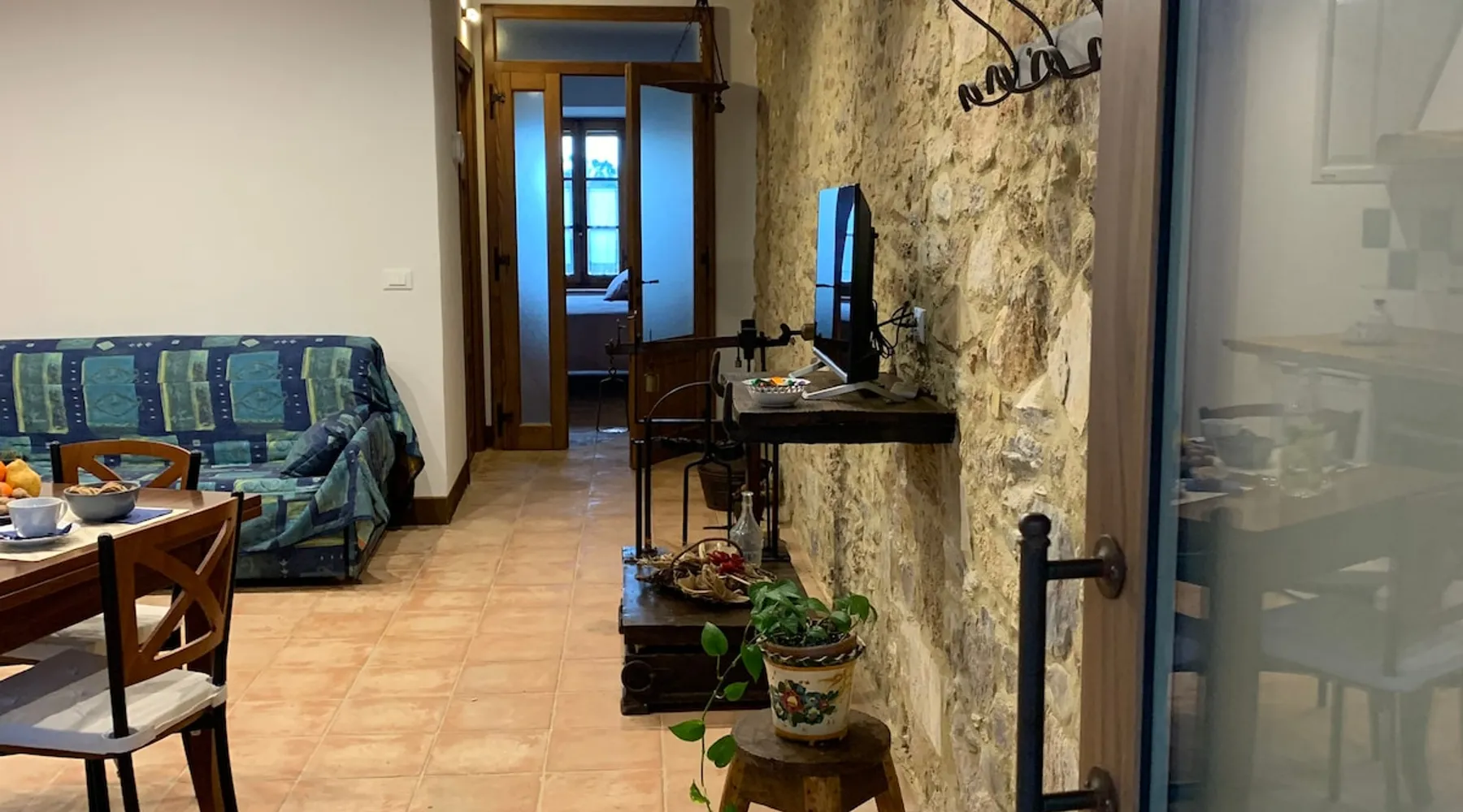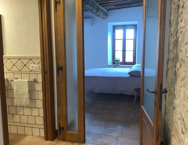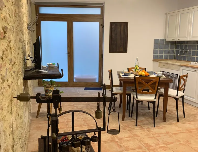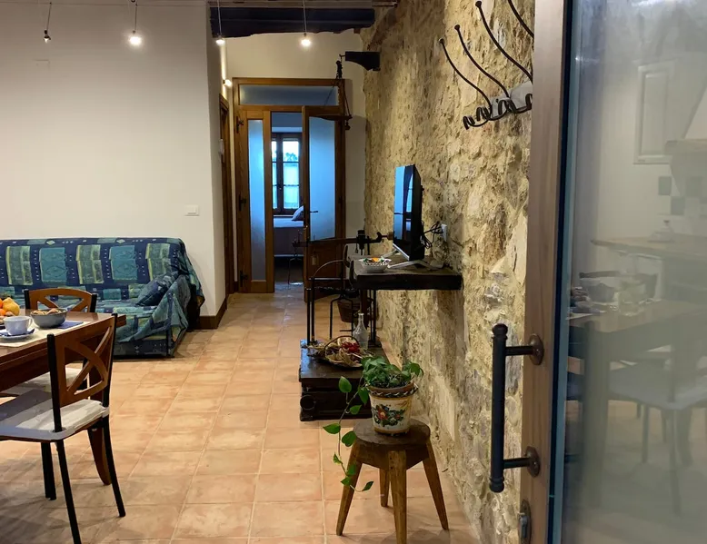 Apartment with large living room, sleeps 5. The house, located in an ancient medieval village at the gates of Siena, near many centers of artistic interest, such as Florence, San Gimignano, Volterra, dal Chianti and the crete senesi, thermal centers such as Petriolo and Saturnia, is a construction of 1800, whose renovation we personally took care of. The apartment has air conditioning and the cost of € 0.40 per kwh is accounted for on actual use. The space The apartment, whose main entrance is on Via della Fonte 20, was based on the renovation of the ancient "Grocery Shop". The apartment is arranged on one floor where the large living room with kitchenette and a double sofa bed and a double sofa bed and the bedroom with double bed and bathroom are located. Tourist tax to be paid on site €1.50 per person for the first five days Registration Details IT052018C228AJV5TR