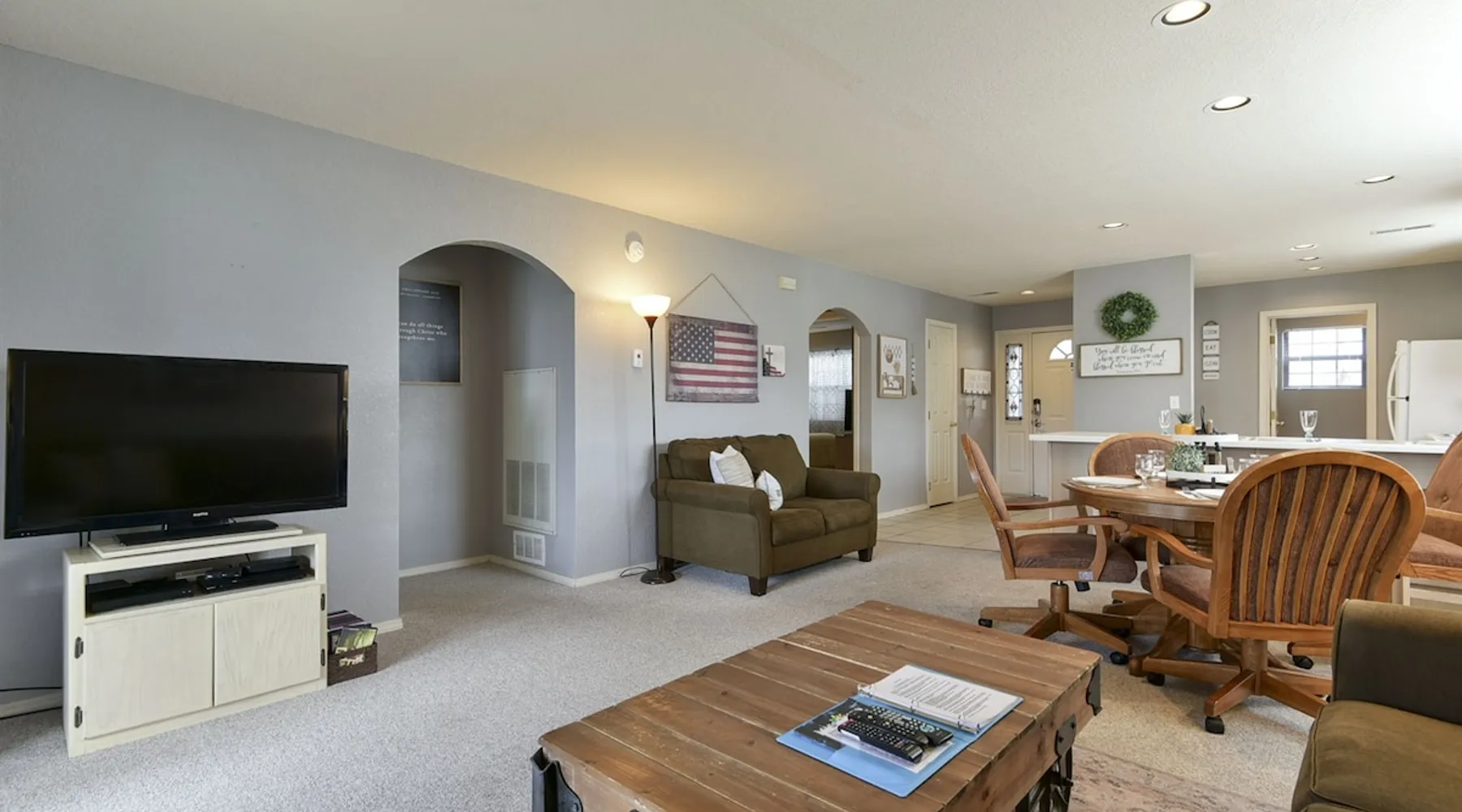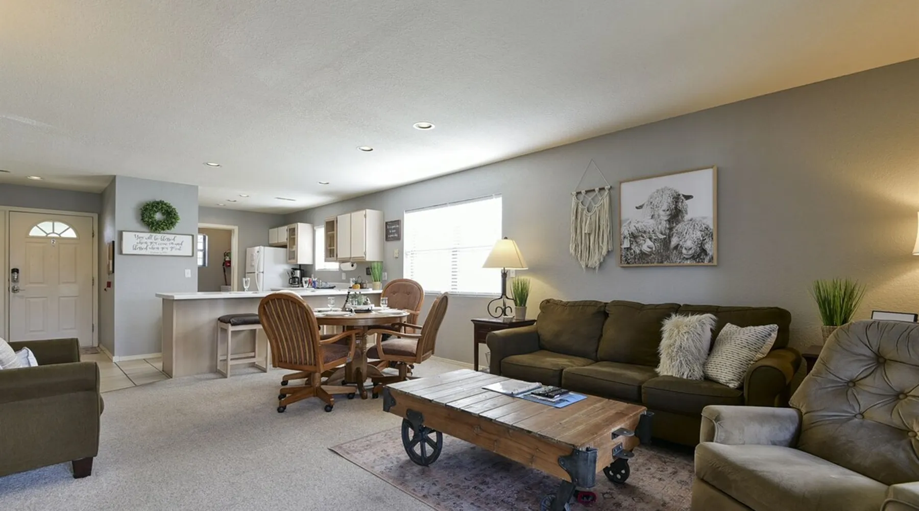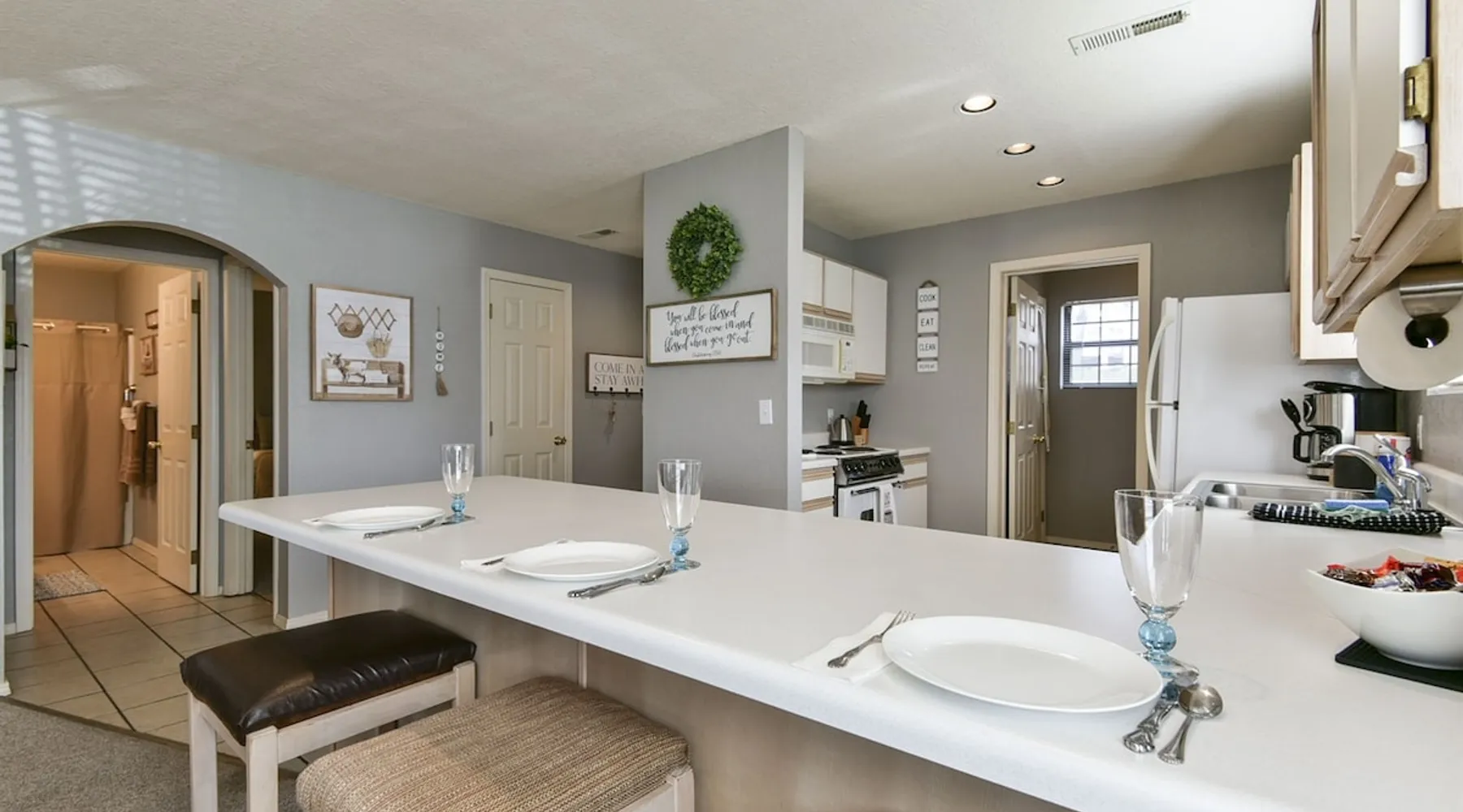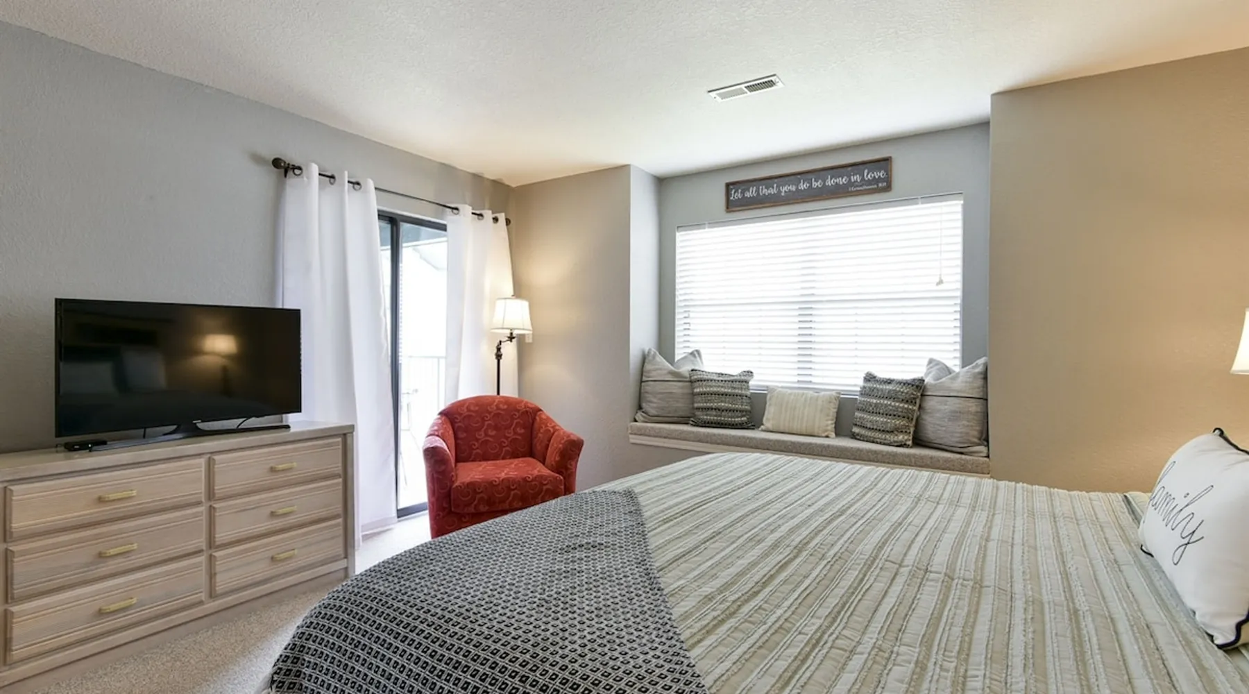 Stretch out and relax in this spacious, no-stairs condo just steps from Branson’s 76 Strip—yet tucked into the peaceful Thousand Hills golf community. This ground-level 2-bedroom, 2-bath getaway features two king suites, a full kitchen, private patio, and two sleeper sofas. You’ll be walking distance to restaurants, mini-golf, and groceries, and just minutes from shows, lakes, and attractions. Seasonal pool access included! The space Welcome to Getaway at The Greens—your perfect mix of peace and proximity. Located in the heart of Branson just one block off the Strip, this spacious ground-level condo gives you over 1,200 square feet to spread out, with the entertainment of Branson minutes away and the serenity of the Thousand Hills golf resort right outside. Inside, you’ll find: • Two separate king bedrooms—each with brand-new mattresses and Smart TVs • Two full bathrooms (primary suite includes double vanities + jetted tub) • Living room with two sleeper sofas, 42” Smart HDTV + Blu-ray player • Full kitchen with modern appliances, cookware, and dining table + bar seating • Private back patio with outdoor dining area • Full-size washer/dryer and a Pack ‘n’ Play for families • Fast cable WiFi + HD cable included Outside, enjoy: • No stairs—walk straight in from the parking lot • Seasonal heated pool just steps from your door • Golf, mini-golf, groceries, and restaurants within walking distance • Easy access to the Strip, Branson Landing, and Table Rock Lake via the Yellow Route Whether you're in town for shows, shopping, golf, or just some quality downtime, Getaway at The Greens is your home base for everything Branson has to offer. Guest access You’ll have full, private access to the condo, including the back patio and in-unit washer/dryer. You’ll also have access to the secure, gated outdoor pool just a few steps from the unit (open seasonally). The home is ground-level with no stairs required. Other things to note • No-stairs, ground-floor condo • Two king bedrooms + two full bathrooms • Two sleeper sofas (one full, one twin) • Primary suite with jetted tub + walk-in closet • Full kitchen with cookware + dining for 6 • Smart TV + Blu-ray + HD cable • Fast WiFi throughout • Private back patio with outdoor table • Full-size washer/dryer with detergent provided • Heated outdoor pool (seasonal access) • Free parking just outside the unit
