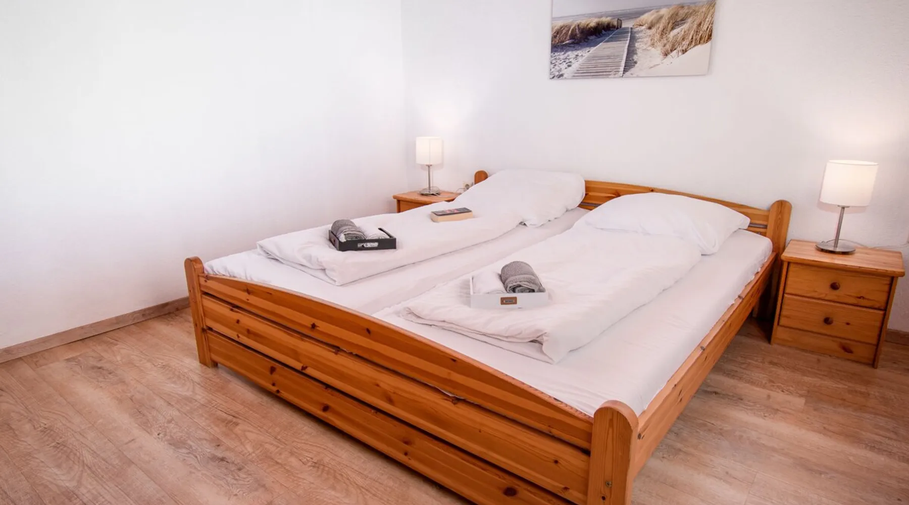 All discounts are already included, please go ahead and book the property if your travel dates are available. Below please see all the listing details "Strandkorb", 2-room apartment 43 m2, on the ground floor. Beautiful and tasteful furnishings: living/dining room 13 m2 with 1 double sofabed (160 cm, length 200 cm), cable TV (flat screen), CD-player and DVD. Exit to the terrace. 1 room 13 m2 with 1 double bed (2 x 90 cm, length 200 cm). The space Kitchenette (oven, 4 ceramic glass hob hotplates, toaster, kettle, microwave, electric coffee machine) with dining table. Bath/shower/WC with corner bath. Terrace 10 m2. Terrace furniture. Facilities: children's high chair (extra). Internet (WiFi, free). Please note: non-smokers only. Smoke alarm. - Included services: Power costs Final cleaning Local tax (Valid until 2025 Oct 31) outdoor parking space Wireless internet access (WIFI) Additional service charges may have to be paid locally on-site, see house rules and house manual for details. Please don't hesitate to contact us should you have any questions. Thank you. Apartment house. In the centre of Norddeich, 1.2 km from the sea, 1.2 km from the beach. In the house: central heating system. Parking at the house. Supermarket 300 m, restaurant, bakery 350 m, café 700 m, bus stop 250 m, railway station 1.4 km, ferry 1.4 km, sandy beach 1.2 km, outdoor swimming pool 14 km, indoor swimming pool 1 km. Golf course (18 hole) 8 km, surf school 1.2 km, tennis 2 km, minigolf 1 km. Other things to note 1. Availability All open periods are instantly bookable. Please choose your dates and confirm your reservation without waiting for host approval. 2. Pricing We always offer you our best price and are unable to offer additional discounts. Please select your preferred travel dates to view the final price. Optional services described in the house rules can be booked after successful reservation by contacting us directly. 3. Check-in information You will receive the travel information with the exact address of the listing, the location for key collection and the contact details of your keyholder 28 days before arrival only if the pre check-in has been completed. In order to ensure a smooth handover of keys, we kindly ask you to contact the key holder by email 7 days before arrival, especially if your arrival takes place outside the stated check-in times. Please note, without an appointment, arrivals outside the stated check-in times will not be possible. 4. House Rules We share all property details in the full description. Please read both the description and the house rules. If available you will find optional amenities described in the house rules, which can be requested by contacting us directly.