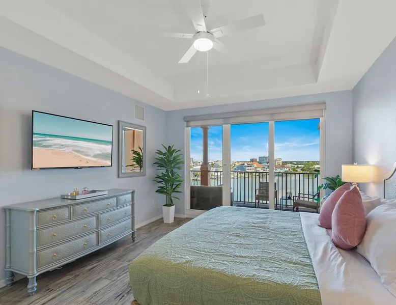 * You'll enjoy breathtaking panoramic views of Clearwater Bay from your 300 Sq Ft balcony * 3 King Beds 2 full baths En-Suite Master Bath and generous square footage of 1800 Sq Ft * Within 500 steps of Beach * Plenty of walkable shopping and dining, car not needed. * Parking for 1 vehicle only * This unit has a 6 (Six) person maximum guest limit. * Children age 13 and up OK * NO CLEANING FEE * 4 Smart TV's * Beach towels and cooler provided *Fully stocked Kitchen The space Immerse yourself in the luxury of your own expansive 300 square-foot balcony, a private oasis hovering above the tranquil harbor, where the gentle sea breeze caresses your skin. Below, the playful dance of dolphins at the sea wall provides a live performance just for you. Nestled just 500 steps from your door, the powdery white embrace of Clearwater Beach awaits. Here, time stands still as you and your loved ones sculpt memories in the sand, building more than just castles but moments to last a lifetime. Retreat to the opulence of the Waterfront Master Suite, where a plush king bed anchors a room complete with a generous walk-in closet to house your coastal attire. A Smart TV provides modern comfort, while the en-suite master bath invites you to indulge in a spa-like experience with its soaking tub, spacious walk-in shower, and dual vanity sinks. Accommodations extend to a second bedroom with a cozy King bed, and a third sanctuary boasting another king bed, equipped with a desk for those blending work with pleasure—a "workcation" dream. The guest bathroom mirrors the thoughtful amenities of the master, featuring both a tub and shower alongside a sleek vanity sink. Culinary exploits beckon in the well-equipped kitchen, ready to assist in crafting feasts or intimate dinners. Gather around in the expansive living and dining area, where laughter and conversation flow as freely as the wine. Practicalities are effortlessly managed with an in-unit washer and dryer, and creature comforts are catered to with an array of linens, towels, soap, shampoo, and hair dryers at your disposal. Outside your door, a heated waterfront pool and spa beckon, promising relaxation and serenity within the property's confines. Step into the embrace of Clearwater Beach's iconic sugary sands and turquoise waters. Stroll or cycle down the Beachwalk, a scenic beachside promenade adorned with lush landscapes and artful details, offering unobstructed views of Clearwater's award-winning beach. Harborview Grande stands as a beacon of convenience, a leisurely walk to Pier 60, Clearwater Marina, the vibrant "Beachwalk," and the lively Shephards Restaurant and Nightclub. And if adventure calls you further afield, Walt Disney World and an array of other attractions are but a drive away. Please be assured of your privacy and security; while public spaces are monitored for safety, your sanctuary remains untouched by surveillance, ensuring peace of mind. Welcome to your idyllic beach retreat—a place where luxury meets tranquility and every detail is curated for your ultimate enjoyment. We invite you to inquire further as we eagerly anticipate making your acquaintance. Guest access Same day bookings are not available Self check 25 minimum age of renter required Until confirmed, rates are subject to change without notice. 6 Guests Maximum 4 Adults 2 Children. Children must be over the age of 12 January, February and March 7 Night minimum required Will Consider less than 7 night says in off season. Minimum nights is 5. This is not a party venue. Sunday check in/check out may be available with prior notice, Please inquire before booking. No holiday check in/check out- House keeping does not work on holidays There is a $500 refundable security deposit due 1 day prior to arrival. Deposit is refunded within 10 days of your departure. Your booking is not confirmed until there is a signed, (with your signature) rental agreement and security deposit. Reservation is subject to cancellation if rental agreement is not signed and returned within 48 hours of your booking. Other things to note Same day bookings are not available 25 minimum age of renter required Until confirmed, rates are subject to change without notice. 6 Guests Maximum 4 Adults 2 Children. Children must be over the age of 12 January, February and March 7 Night minimum required Will Consider less than 7 night says in off season. Minimum nights is 5. This is not a party venue. Sunday check in/check out may be available with prior notice, Please inquire before booking. No holiday check in/check out- House keeping does not work on holidays There is a $500 refundable security deposit due 1 day prior to arrival. Deposit is refunded within 10 days of your departure. Your booking is not confirmed until there is a signed, (with your signature) rental agreement and security deposit. Reservation is subject to cancellation if rental agreement is not signed and returned within 48 hours of your booking. Your hosts are John and Karen Bickford of Bolton MA. We are not local however can always be reached via the platform, text and email.