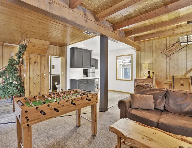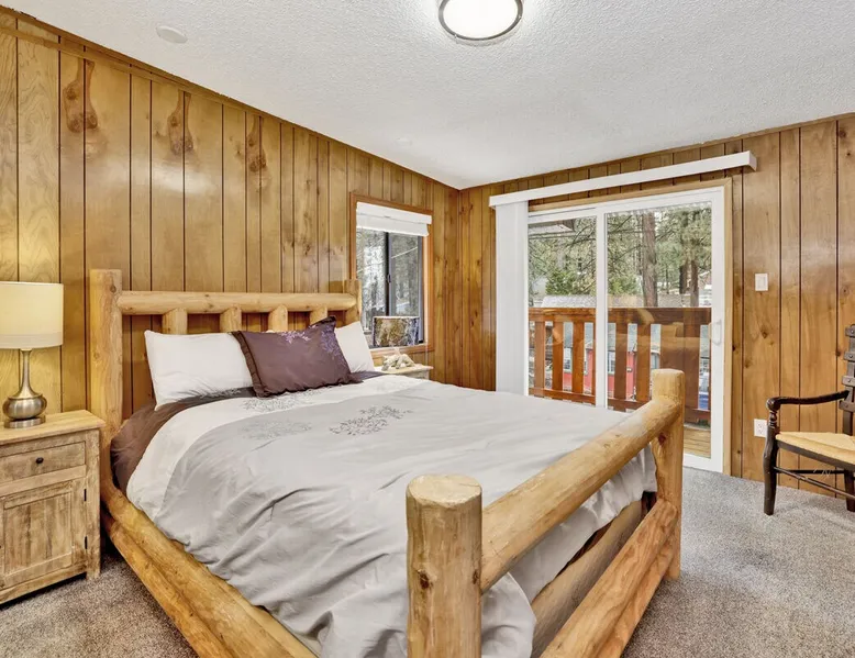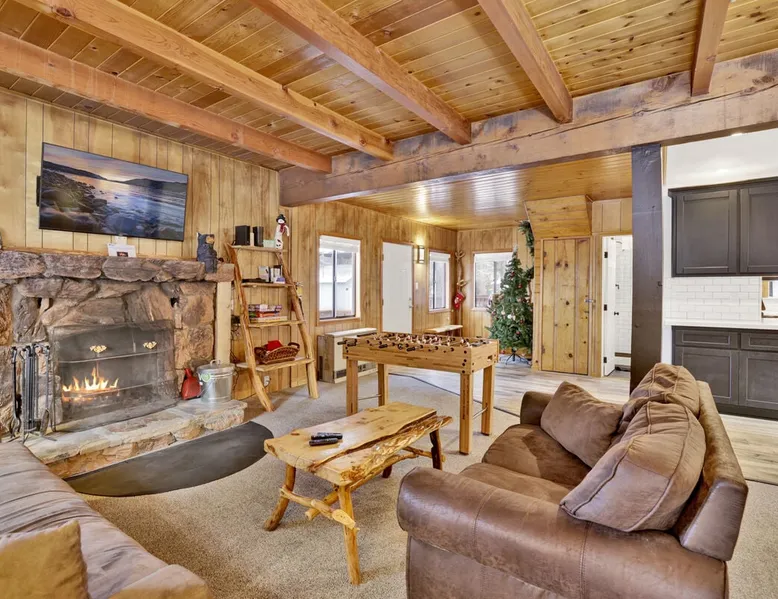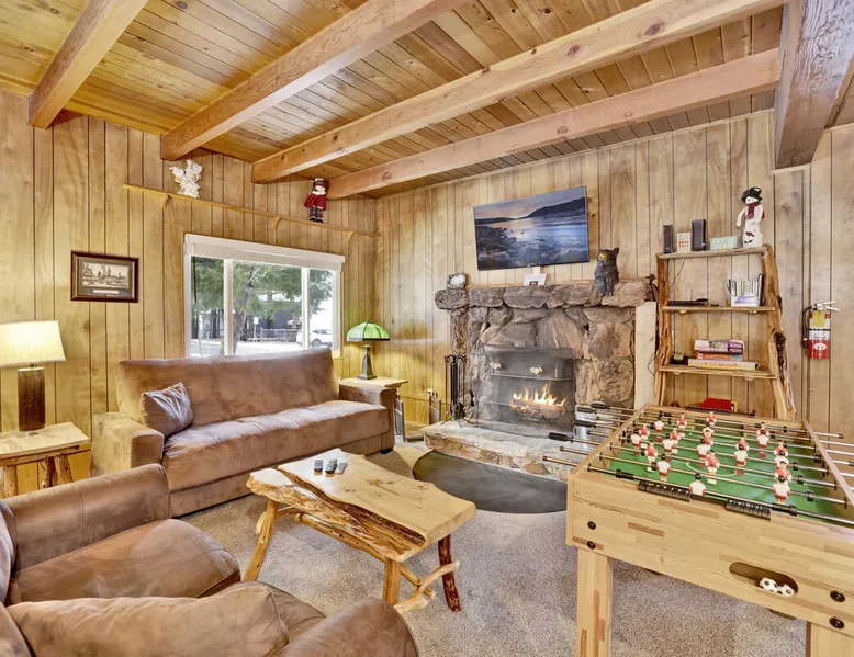 Beary Fun Escape is a wonderful two story furnished Bear Mountain chalet cabin, furnished with all that you will need for a memorable mountain vacation, you will be conveniently located within minutes to Bear Mountain Resort for year round fun including hiking, skiing, golf, or the local Alpine Zoo. Furnished from head to toe with your vacation stay in mind you'll have comfortable mountain themed décor and essentials to ensure a memorable and relaxing vacation can be had here. The space Beary Fun Escape Wilderness Retreat ~ Walk To Golf/Zoo Beary Fun Escape is a wonderful two story furnished Bear Mountain chalet cabin, furnished with all that you will need for a memorable mountain vacation, you will be conveniently located within minutes to Bear Mountain Resort for year round fun including hiking, skiing, golf, or the local Alpine Zoo. Furnished from head to toe with your vacation stay in mind you'll have comfortable mountain themed décor and essentials to ensure a memorable and relaxing vacation can be had here. Entering into a cozy and warm living room area where you will immediately feel at home, enjoy the comfy couches sat around a toasty wood burning fireplace with a mounted flat screen Streaming TV offering complimentary hi speed WIFI internet for your enjoyment. (Guests must have their own accounts to enjoy Streaming Services.) Knotty pine walls and ceilings give off a true mountain vibe while the custom log dining table to the side of the room offers a great space to sit and enjoy your meals together. You will love the adorable updated kitchen featuring all that you need for the chef of your group to prepare your home-cooked meals including new stainless appliances and a dishwasher for your convenience. Oak cabinets are stocked full with cookware and utensils for you while ample counter top spaces are available for your preparations. A separate laundry area offers a side by side washer and dryer here that are perfect for those wet snow clothes or extended long term stays year round. This lower entry level of your chalet offers fun board games and entertainment plus a convenient hallway bath for your group. Upstairs you will find your three sleeping quarters made up for you with warm linens, blankets, and pillows when you arrive. Enjoy private balcony access here upstairs plus a an added hallway bathroom complete with fresh shower towels for your stay. Venturing to the great outdoors you will find a nice flat and fully fenced property with ample parking and a Charcoal BBQ available for your grilling experience. Make your next vacation "Beary Fun" at this wonderful escape cabin, located within a few minutes to the resorts, Village, or the lake, this retreat pairs the comforts of home with a prime location, making this a great choice for your next Big Bear vacation! Sleeping Arrangements: Bedroom 1: Queen Bed, Private Balcony- Upstairs 2nd Level Bedroom 2: Full/Twin Bunk Set- Upstairs 2nd Level Bedroom 3: Twin/Twin Bunk Set- Upstairs 2nd Level Bathroom Arrangements: Hallway 3/4 Bath- (Shower Only) Downstairs Entry Level Hallway Full Bath- Upstairs 2nd Level -Sleeps 6 -3 Car Driveway Parking -NO PETS ALLOWED- Fines Imposed For Pets Found On Site -1,250 Square Feet Other things to note For the EV Charger, please kindly bring your own cables. Registration Details 2023-2423