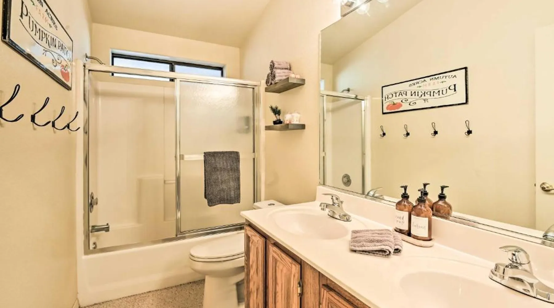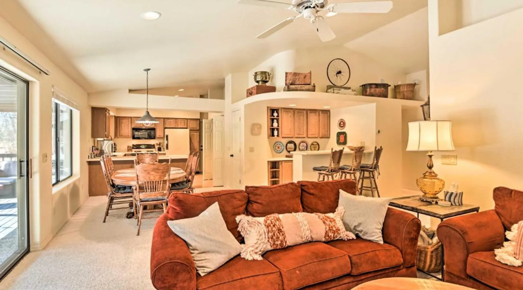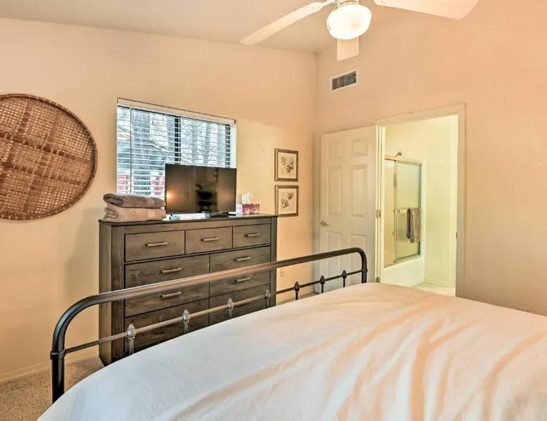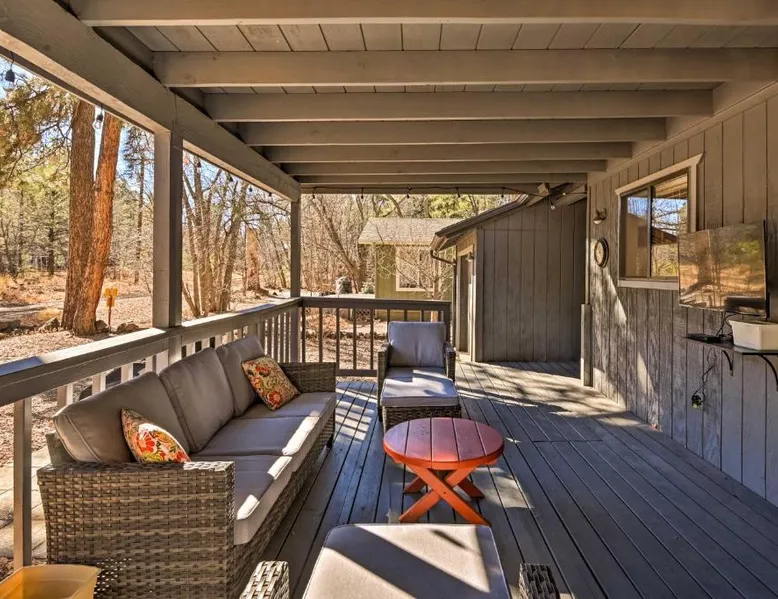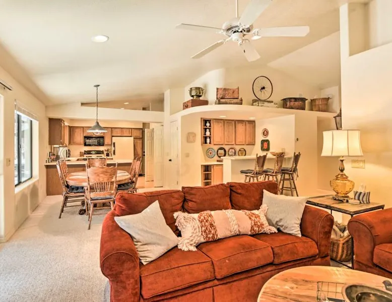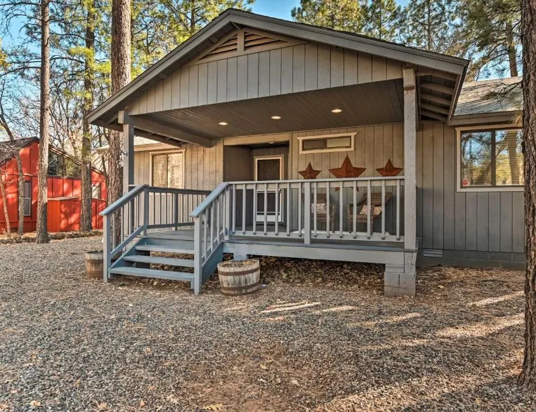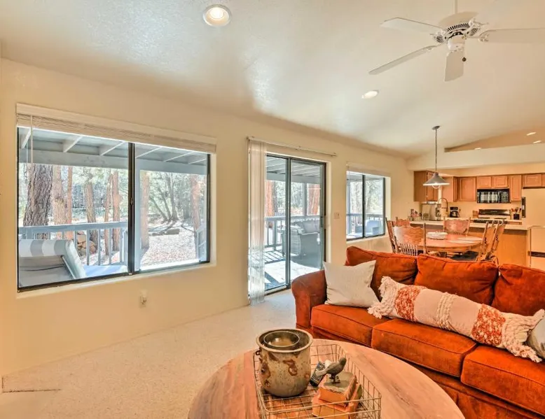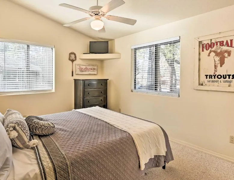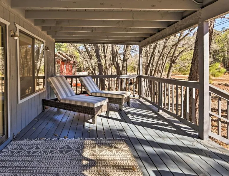 Spacious Holiday Home in Indian Pine: Near Hiking and Golfing Pinetop Home with Deck! offers a spacious setting in Indian Pine, Arizona. The property features three bedrooms and two bathrooms, ensuring ample space for guests. Modern Amenities: Guests enjoy free WiFi, air-conditioning, and a fully equipped kitchen with a dishwasher, microwave, and oven. Additional amenities include a washing machine, fireplace, and a private entrance. Outdoor Spaces: A patio provides a relaxing outdoor area, while the deck offers a perfect spot for leisure. The property also includes a work desk and a dining table, catering to all guest needs. Convenient Location: Show Low Regional Airport is located 16 mi from the holiday home, providing easy access for travelers. Nearby attractions include hiking and golfing opportunities, enhancing the overall experience. The fireplace is the standout feature of this holiday home. Boasting a private entrance, this spacious holiday home also comes with 3 separate bedrooms and 2 bathrooms with a bath and a shower. In the kitchen, guests will find a stovetop, a refrigerator, a dishwasher and kitchenware. Featuring a patio, this holiday home also features air conditioning, a washing machine and a flat-screen TV with cable channels. The unit has 3 beds.