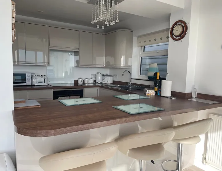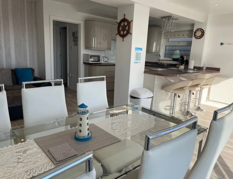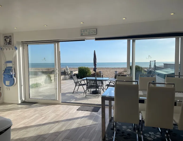This modern beachfront bungalow in Pevensey Bay offers a perfect blend of luxury, comfort, and breathtaking views. The space Family-Friendly Amenities: Travel cot and high chair available (please bring your own cot bedding). Outdoor Living Space: Relax with outdoor furniture and a cozy fire pit, perfect for evenings under the stars. BBQ for Alfresco Dining: Enjoy outdoor cooking with the provided BBQ. Walk to the Village: Just a short stroll to the village, where you’ll find local shops, pubs, and more. Upon arrival, find ample parking for two cars, setting the stage for a hassle-free stay. Ascend the wide steps with a handrail to the open lounge/kitchen/diner, where the heart of the home awaits. The well-equipped kitchen is a delight for family entertaining, featuring top-notch appliances such as an electric oven, hob, wine cooler, coffee machine, and a washing machine. Enjoy breakfast at the bar or relax in the lounge area, where a comfortable corner sofa doubles as a sofa bed upon request. Stay entertained with a Smart TV offering Netflix, a DAB radio, and a selection of board games for friendly competitions. The dining table, overlooking the rear beach garden and stunning views, accommodates up to six guests. Two bedrooms, each with a TV, offer a peaceful retreat. The first bedroom boasts a double bed with an en-suite shower and WC, while the second bedroom features a super-king-size zip-and-link bed that can be arranged as a twin upon request. A modern family bathroom with a shower over the bath completes the interior. Step outside to the beach garden, where a dining table, sun umbrella, BBQ, and fire pit invite you to enjoy al fresco meals and unforgettable outdoor cooking experiences. Relax on the swinging chair and reclining chairs, or access the storage shed for beach essentials like body boards, buckets, and spades. At the front of the property, an additional seating area provides an idyllic spot to soak in the evening sun with a glass of wine. This contemporary beachfront bungalow allows you to embrace the seaside lifestyle. With one small dog welcome, your furry friend can also enjoy the coastal retreat. Experience comfort, luxury, and stunning views in this unforgettable coastal haven. We allow one small dog to stay in this property. Guest access Entry instructions will be given 3 days prior to arrival. Other things to note There are a set of wide steps with a handrail that lead up to the property. There is parking for 2 vehicles at the bottom of the steps. There is a shop that sells almost everything from fishing nets to alcohol within 30 meters of the property! There is a garden shed that has outdoor equipment, (tennis rackets, badminton rackets, and beach balls) for our guests to use for their enjoyment. Smoking and vaping are not permitted inside the property. If you wish to smoke or vape, please do so outside and ensure that doors and windows are closed to prevent smoke from entering. We appreciate your cooperation in keeping the space fresh and comfortable for all guests. While we strive to accommodate our guests' needs to the best of our ability, unfortunately, we are unable to offer early check-ins or late check-outs at this time. Our dedicated cleaning teams require sufficient time to thoroughly prepare the property between guests to ensure a comfortable and hygienic environment for everyone. By adhering to our standard check-in and check-out times, we can maintain the high standards that we aim to provide for each guest. For your reference, our check-in time is after 4.00 pm and our check-out time is before 10.00 am. We kindly ask for your cooperation in observing these times.