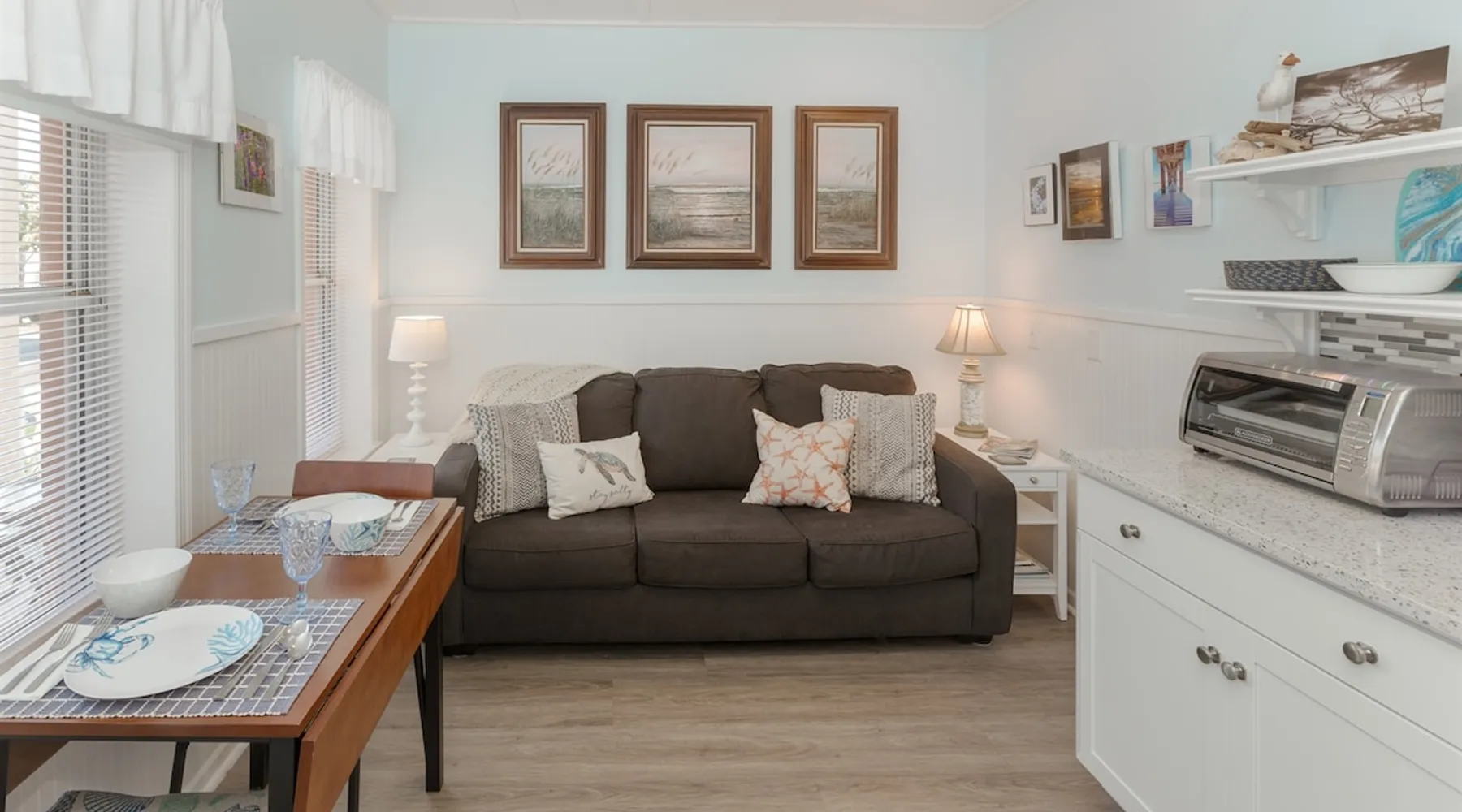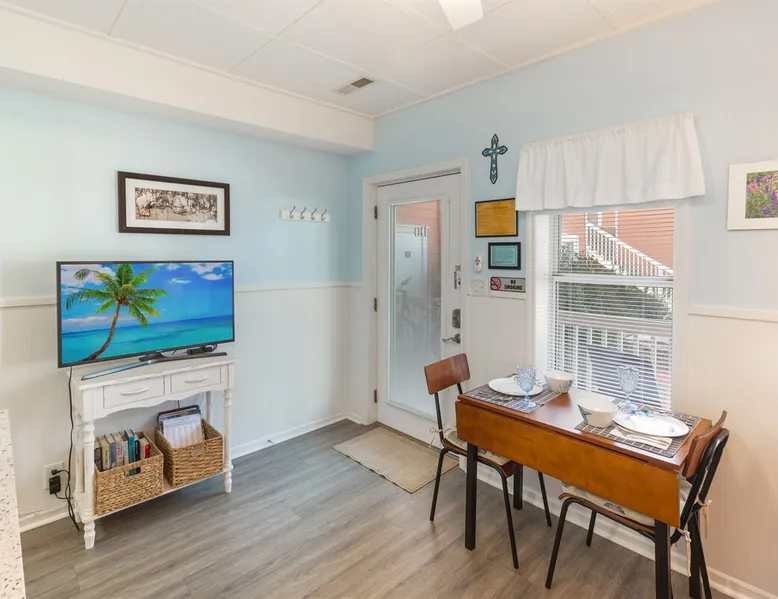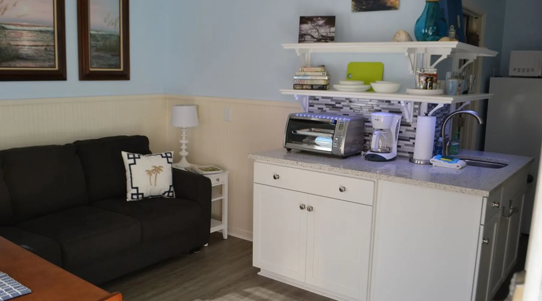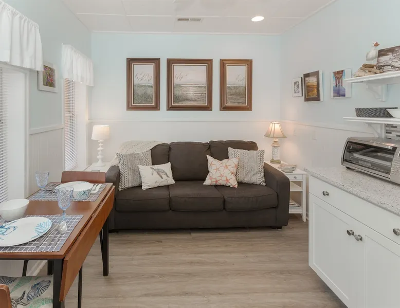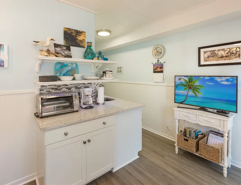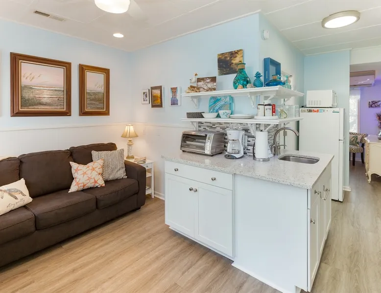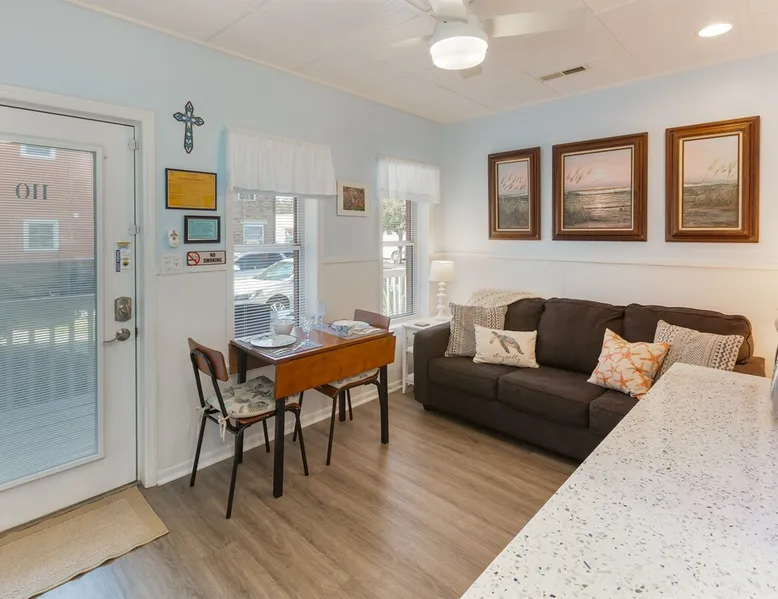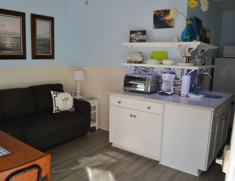 This 1st floor STUDIO condo at The Ocean Inn offers plenty of natural light and an outside sitting area to enjoy the sunshine. The bedroom and living space are separated by the bathroom which gives those sleeping on the queen sofa bed a little privacy. Shared living & kitchenette space has kitchen essentials. Smart TV in living space. Dog friendly, fees adjusted according to weight. Min number of nights required. Need a shorter stay? Please inquire. Isle of Palms Permit: P-00532 03/26/2025 The space This first-floor STUDIO condo at The Ocean Inn offers plenty of natural light and an outside sitting area to enjoy the sunshine. The sleeping area features a lighthouse and tropical "Tommy Bahama" theme and king-size bed. The bedroom and living space are separated by the bathroom which gives those sleeping on the queen-sized sofa bed a little privacy. The 50" Smart TV is a nice addition for rainy days when beach-going is limited. Location, location, location is the best part of this condo.... steps away from coin laundry, grill area, free parking and pool and only a few minutes walk to the beach. Provided in this small but serviceable kitchen is a large toaster oven, regular toaster, microwave, refrigerator, drip coffee maker, and single-eye counter-top induction cook-top. The cook-top requires steel-bottomed pans for it to operate, also provided. Plates, bowls, silverware, coffee cups...all provided. You'll have all you need to make simple meals in your condo. There is no full-sized oven or stove but the small appliances provided will meet your needs for simple meal prep. The complex is located close to the Isle of Palms Connector so it's a quick drive to the Towne Center shopping center in Mt Pleasant. It will take 25 minutes to get to downtown Charleston to see the sights or have a wonderful meal in any of the city's award-winning restaurants, but honestly - you are within a 5-minute walking distance to several fabulous eateries right here on the island. The owners are retired and enjoy photographing the sights at the beach while they're here - many of the photos in the condo are theirs. This condo is dog-friendly. Fees are $20 per night PER 40lbs. Guest access Guests will receive email from Dreams N Druthers 7 days before arrival with specific instructions for entry. Parking passes are required and are also sent by email. Check in is 4pm, check out is 10am. Because there are always maintenance needs in our properties, check in times are not always flexible regardless of availability on the previous nights of arrival. If by chance the property is ready early, you will receive a text either the day before or the day of arrival. We do try to allow early access when we can. Other things to note ** COMMUNICATION: as an integrated partner on this booking site, please be aware that all future communications will come from Dreams N Druthers. Please be on the lookout. ** E-SIGNATURE CONTRACT: In addition to any contract you may have signed through an integrated partner (such as AIRBNB/VRBO). We require our own E-Signed contract to complete your booking. This allows us to include additional details we are unable to elsewhere. PLEASE NOTE THESE ANSWERS TO FREQUENTLY-ASKED QUESTIONS: **MINIMUM BOOKING AGE is 25. The person holding the reservation must be staying at the property. No 3rd party booking is allowed. **PRE-APPROVAL OF PETS REQUIRED Pets (DOGS ONLY) are allowed ONLY IN SELECT PROPERTIES. Breed/weight restrictions are applicable. PET FEES are $25/pet per night. DISCOUNT ON PET FEES AVAILABLE FOR SEASONAL RENTALS. PET POLICY Guests are responsible for adhering to pet policies provided in the contract as well as all Isle of Palms pet ordinances **MINIMUM NIGHTS Some of our properties have "minimum nights required" to make a reservation on weekends, holidays, and during the summer season. To check availability for a shorter stay, please send a message / inquiry. If it's possible, we'd be happy to accommodate you. ** CONFIRMATION & PAYMENT: Your reservation is confirmed when the initial payment is paid. Payment options are dependent on the cancellation policy and how far away you are booking your stay. For reservations made in advance of 30 days, the remaining balance is due 30 days before arrival. Balances are deducted automatically from the card on file. In the event of payment failure, a grace period of 24 hours is given to remedy the payment. ** ITEMS PROVIDED: Soaps, linens, towels and starter paper products will be in your condo upon arrival. Routine linen and towel exchanges are not provided during your stay. Guests are responsible for replacing their own paper and soap products if starter amounts are used during their stay. It is not necessary to replace these for future guests. **SMOKING All of our properties are NO SMOKING properties. Smoking is allowed outdoors only. Please discard appropriately. Deposit will be forfeited and additional cleaning charges incurred if evidence of smoking indoors is found upon departure. THIS INCLUDES smoking by an open door or window so that smoke enters the condo. Please smoke away from these areas. **NOISE ORDINANCE Guests are responsible for following the Isle of Palms 10PM noise ordinance.