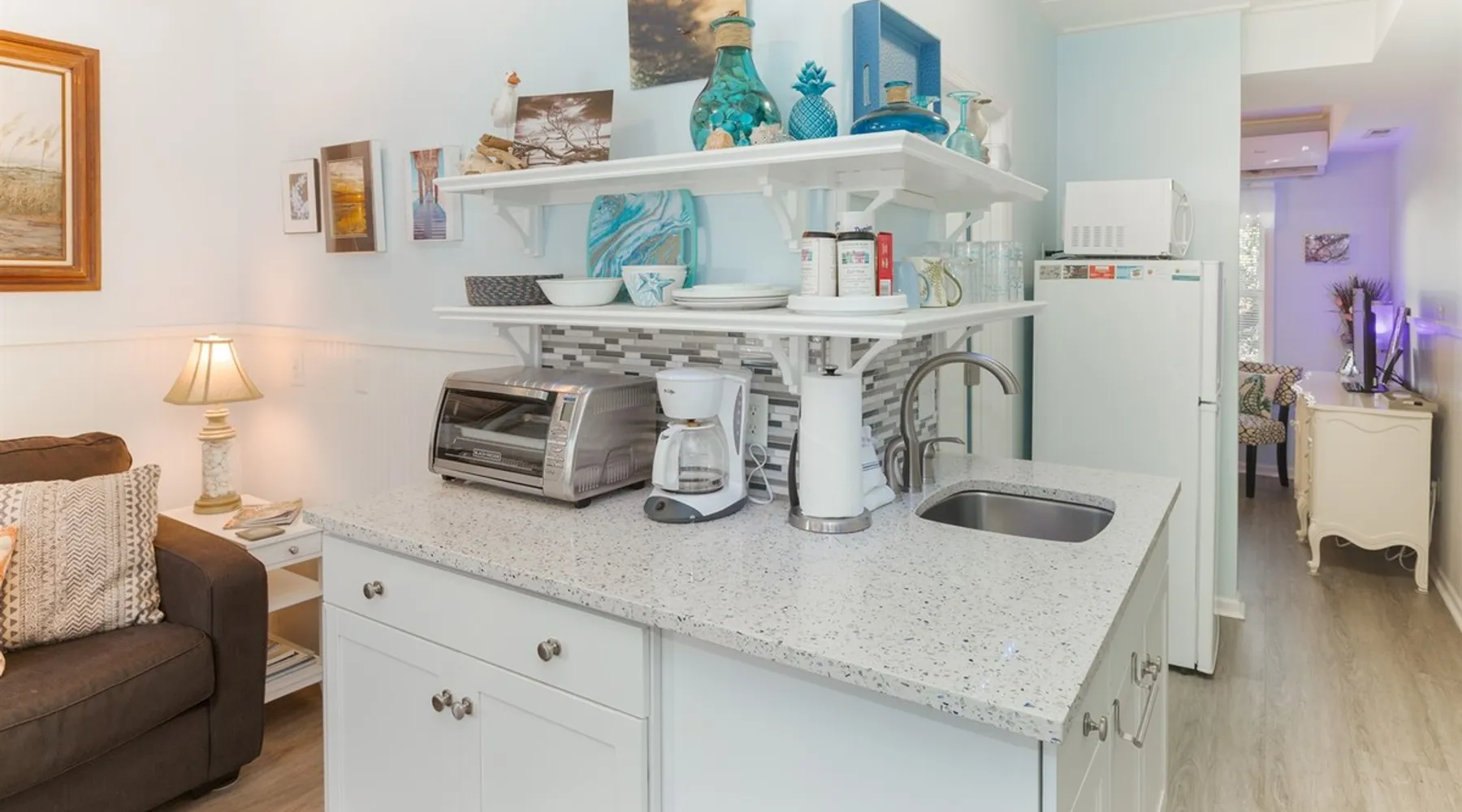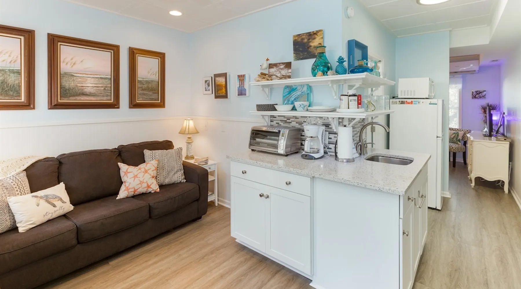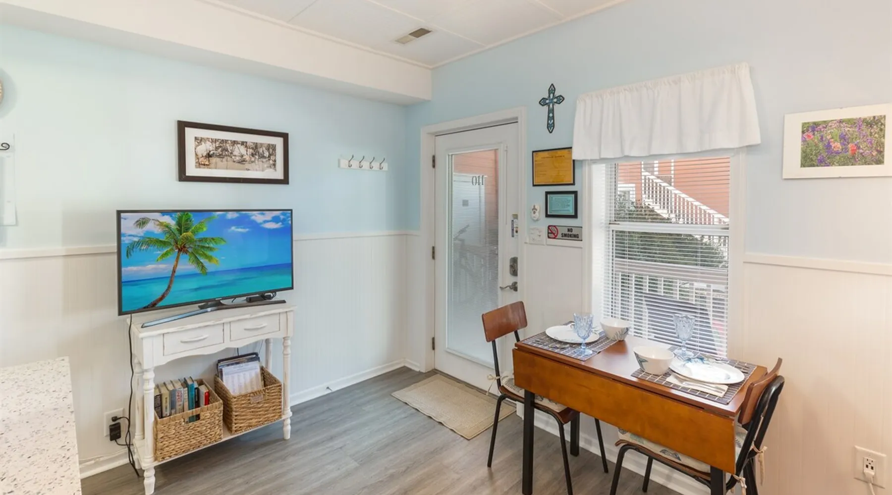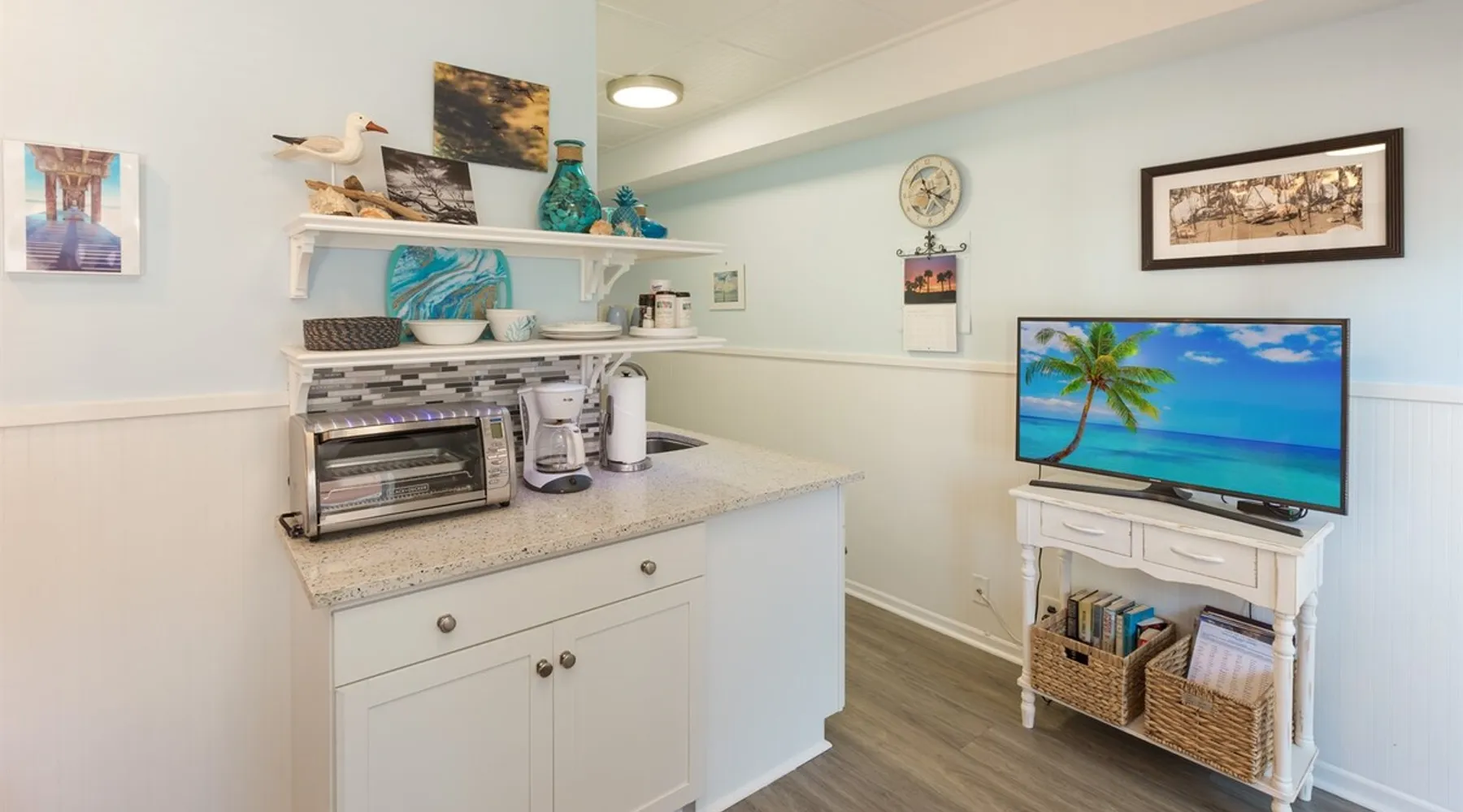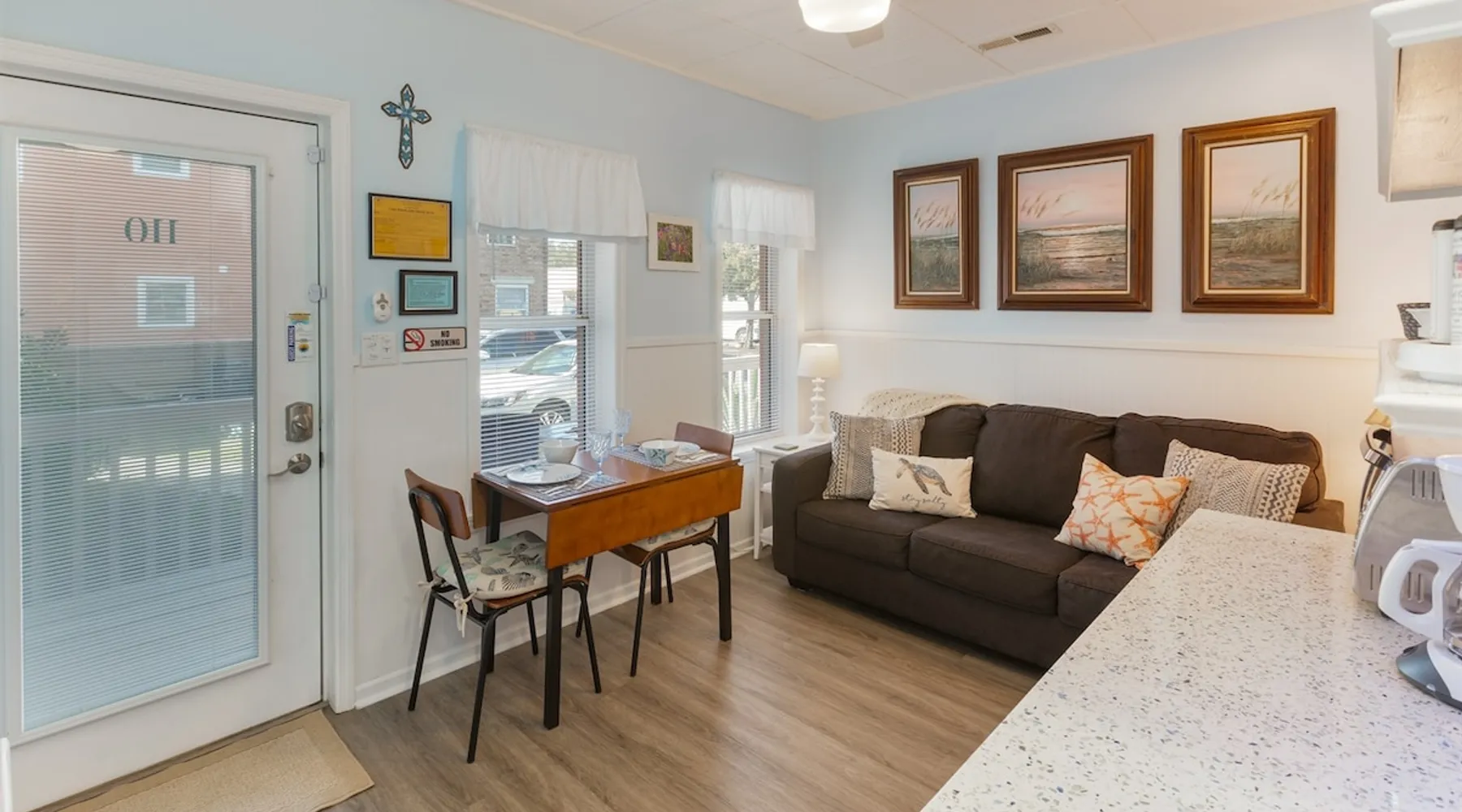 This 1st floor STUDIO condo at The Ocean Inn offers plenty of natural light and an outside sitting area to enjoy the sunshine. The bedroom and living space are separated by the bathroom which gives those sleeping on the queen sofa bed a little privacy. Shared living & kitchenette space has kitchen essentials. Smart TV in living space. Dog friendly, fees adjusted according to weight. Min number of nights required. Need a shorter stay? Please inquire. Isle of Palms Permit: P-00532 03/26/2025 The space This first-floor STUDIO condo at The Ocean Inn offers plenty of natural light and an outside sitting area to enjoy the sunshine. The sleeping area features a lighthouse and tropical "Tommy Bahama" theme and king-size bed. The bedroom and living space are separated by the bathroom which gives those sleeping on the queen-sized sofa bed a little privacy. The 50" Smart TV is a nice addition for rainy days when beach-going is limited. Location, location, location is the best part of this condo.... steps away from coin laundry, grill area, free parking and pool and only a few minutes walk to the beach. Provided in this small but serviceable kitchen is a large toaster oven, regular toaster, microwave, refrigerator, drip coffee maker, and single-eye counter-top induction cook-top. The cook-top requires steel-bottomed pans for it to operate, also provided. Plates, bowls, silverware, coffee cups...all provided. You'll have all you need to make simple meals in your condo. There is no full-sized oven or stove but the small appliances provided will meet your needs for simple meal prep. The complex is located close to the Isle of Palms Connector so it's a quick drive to the Towne Center shopping center in Mt Pleasant. It will take 25 minutes to get to downtown Charleston to see the sights or have a wonderful meal in any of the city's award-winning restaurants, but honestly - you are within a 5-minute walking distance to several fabulous eateries right here on the island. The owners are retired and enjoy photographing the sights at the beach while they're here - many of the photos in the condo are theirs. This condo is dog-friendly. Fees are $20 per night PER 40lbs. Guest access Guests will receive email from Dreams N Druthers 7 days before arrival with specific instructions for entry. Parking passes are required and are also sent by email. Check in is 4pm, check out is 10am. Because there are always maintenance needs in our properties, check in times are not always flexible regardless of availability on the previous nights of arrival. If by chance the property is ready early, you will receive a text either the day before or the day of arrival. We do try to allow early access when we can. Other things to note ** COMMUNICATION: as an integrated partner on this booking site, please be aware that all future communications will come from Dreams N Druthers. Please be on the lookout. ** E-SIGNATURE CONTRACT: In addition to any contract you may have signed through an integrated partner (such as AIRBNB/VRBO). We require our own E-Signed contract to complete your booking. This allows us to include additional details we are unable to elsewhere. PLEASE NOTE THESE ANSWERS TO FREQUENTLY-ASKED QUESTIONS: **MINIMUM BOOKING AGE is 25. The person holding the reservation must be staying at the property. No 3rd party booking is allowed. **PRE-APPROVAL OF PETS REQUIRED Pets (DOGS ONLY) are allowed ONLY IN SELECT PROPERTIES. Breed/weight restrictions are applicable. PET FEES are $25/pet per night. DISCOUNT ON PET FEES AVAILABLE FOR SEASONAL RENTALS. PET POLICY Guests are responsible for adhering to pet policies provided in the contract as well as all Isle of Palms pet ordinances **MINIMUM NIGHTS Some of our properties have "minimum nights required" to make a reservation on weekends, holidays, and during the summer season. To check availability for a shorter stay, please send a message / inquiry. If it's possible, we'd be happy to accommodate you. ** CONFIRMATION & PAYMENT: Your reservation is confirmed when the initial payment is paid. Payment options are dependent on the cancellation policy and how far away you are booking your stay. For reservations made in advance of 30 days, the remaining balance is due 30 days before arrival. Balances are deducted automatically from the card on file. In the event of payment failure, a grace period of 24 hours is given to remedy the payment. ** ITEMS PROVIDED: Soaps, linens, towels and starter paper products will be in your condo upon arrival. Routine linen and towel exchanges are not provided during your stay. Guests are responsible for replacing their own paper and soap products if starter amounts are used during their stay. It is not necessary to replace these for future guests. **SMOKING All of our properties are NO SMOKING properties. Smoking is allowed outdoors only. Please discard appropriately. Deposit will be forfeited and additional cleaning charges incurred if evidence of smoking indoors is found upon departure. THIS INCLUDES smoking by an open door or window so that smoke enters the condo. Please smoke away from these areas. **NOISE ORDINANCE Guests are responsible for following the Isle of Palms 10PM noise ordinance.