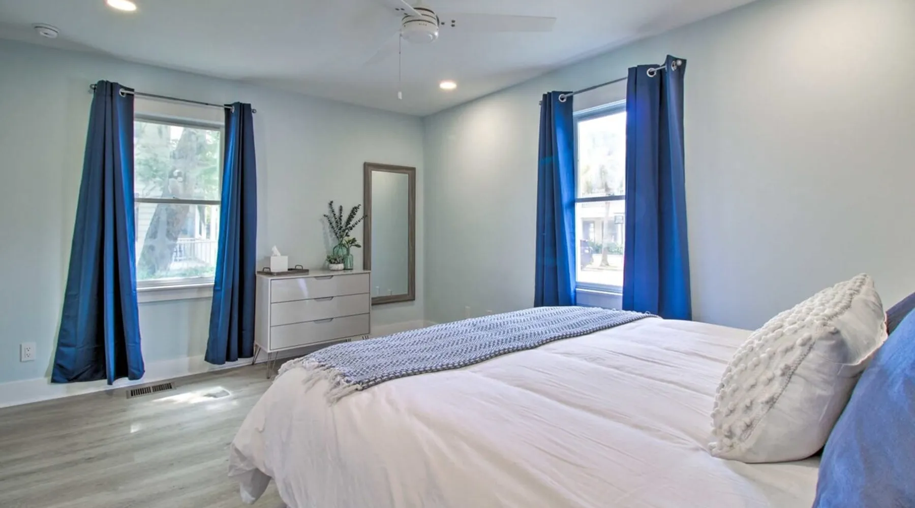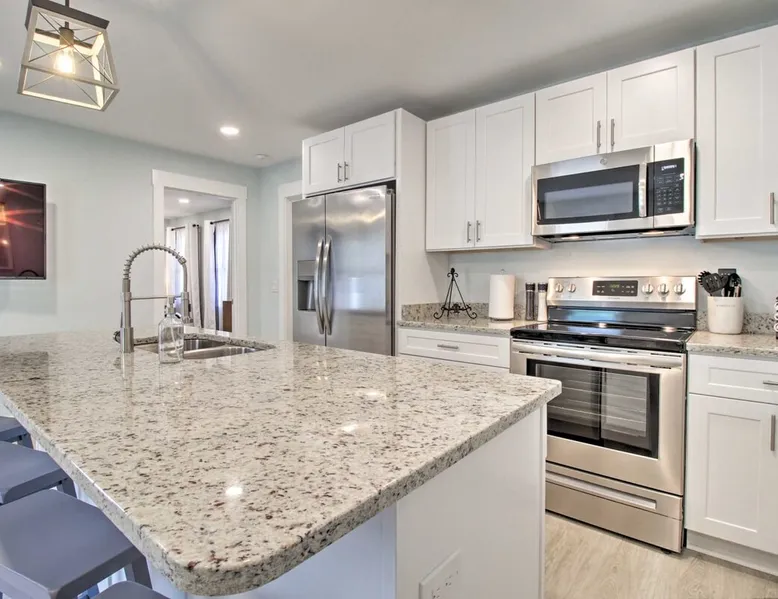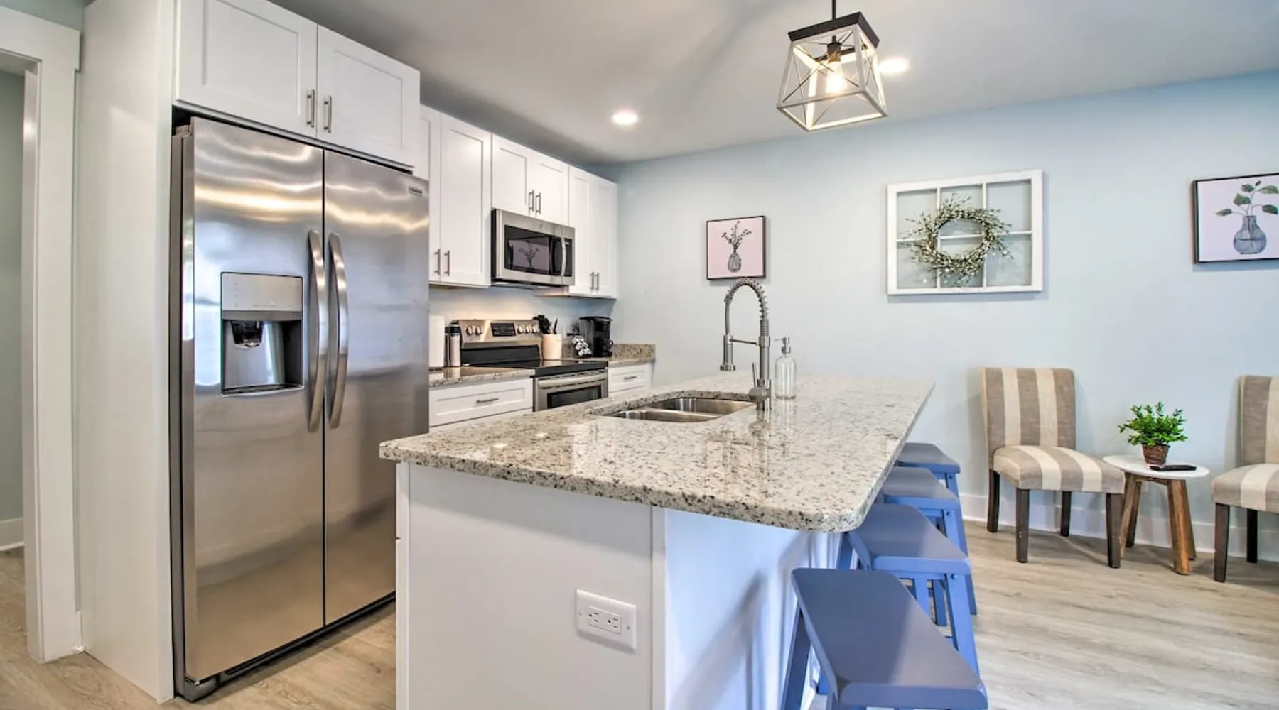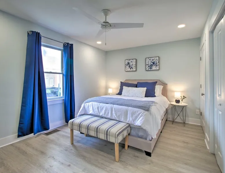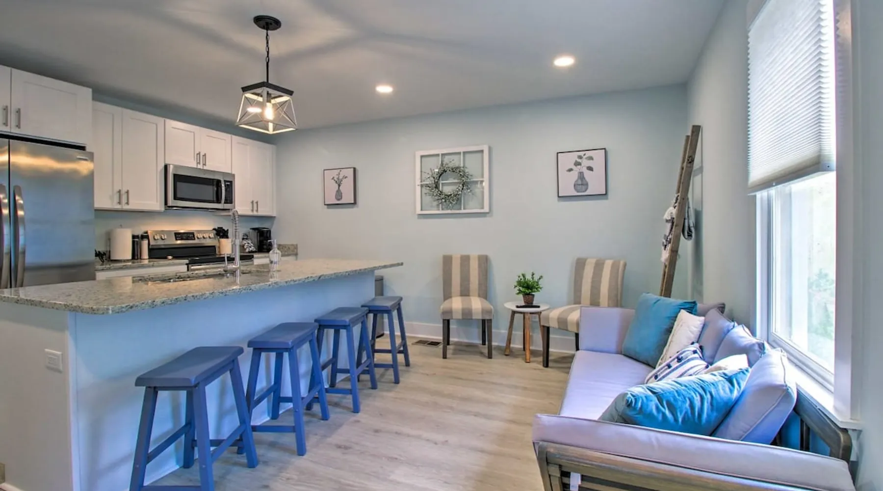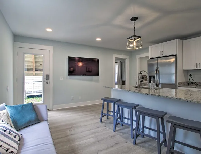 Brimming with modern style and Southern charm, this Beaufort vacation rental promises a relaxing stay! The 2-bedroom, 2-bath apartment boasts a sleek full kitchen and upscale finishes mere steps away from the historic heart of town. Stroll along the Henry C. Chambers Waterfront Park, tour the Robert Smalls House, and top it off with a sweet treat from Chocolate Tree or fresh seafood! With Parris Island and Hunting Island state park a short drive away, you can check off all of your Beaufort must The space 925 Sq Ft Historic charm meets contemporary convenience at this well-appointed and ideally located apartment that is perfect for a couples' getaway, girls' trip, or a visit to a loved one in the military! Main Bedroom: King Bed | Bedroom 2: Queen Bed KITCHEN: Fully equipped, granite counters, stainless steel appliances, 4-person breakfast bar, Keurig, cooking basics, dishware & flatware INDOORS: Smart TV, open layout, contemporary style Free WiFi, washer & dryer, linens/towels, central heat & A/C, pet fee (paid pre-trip) PARKING: Open lot (2 vehicles), street parking