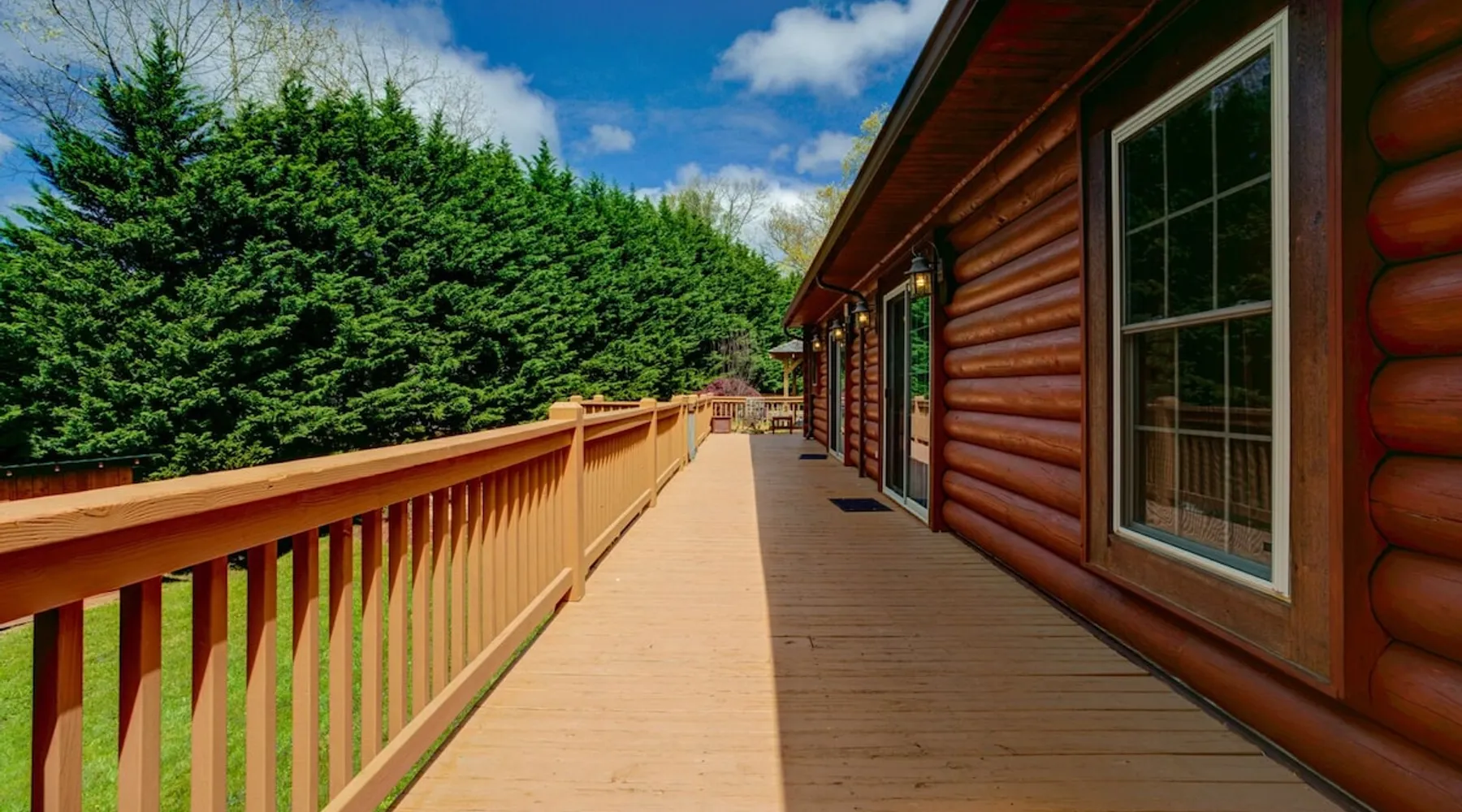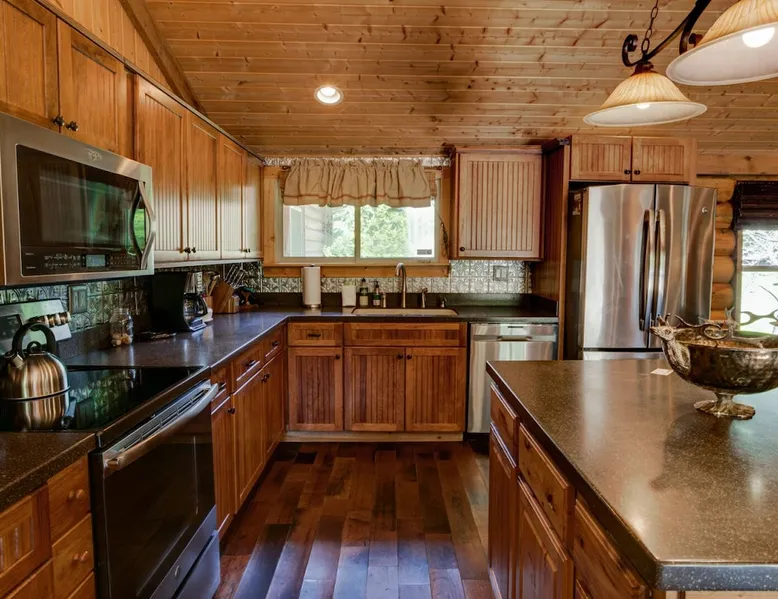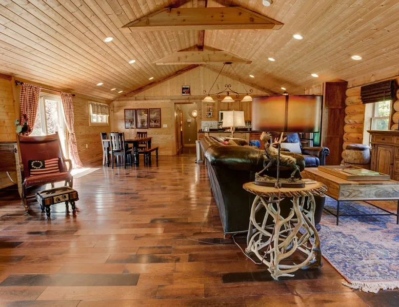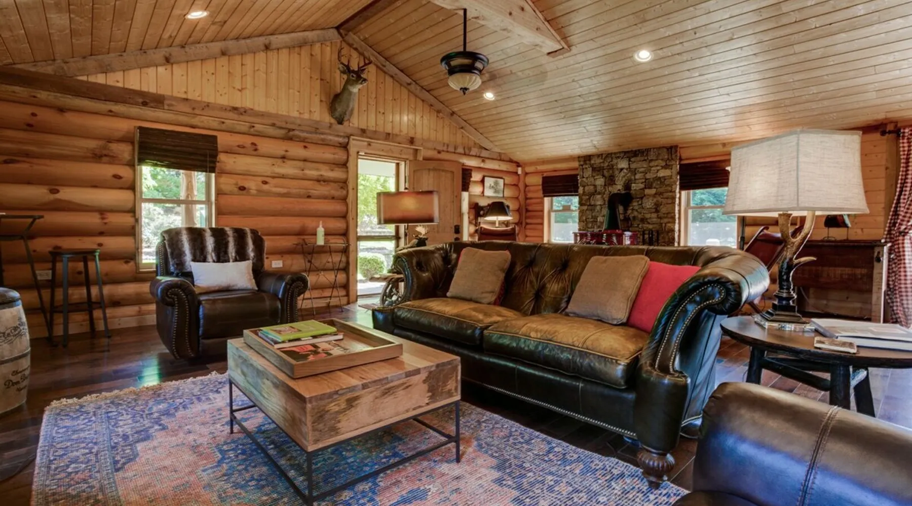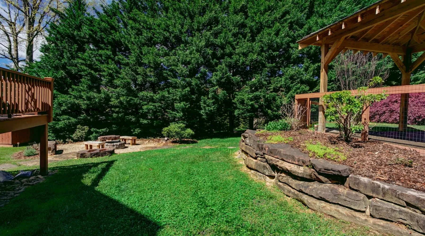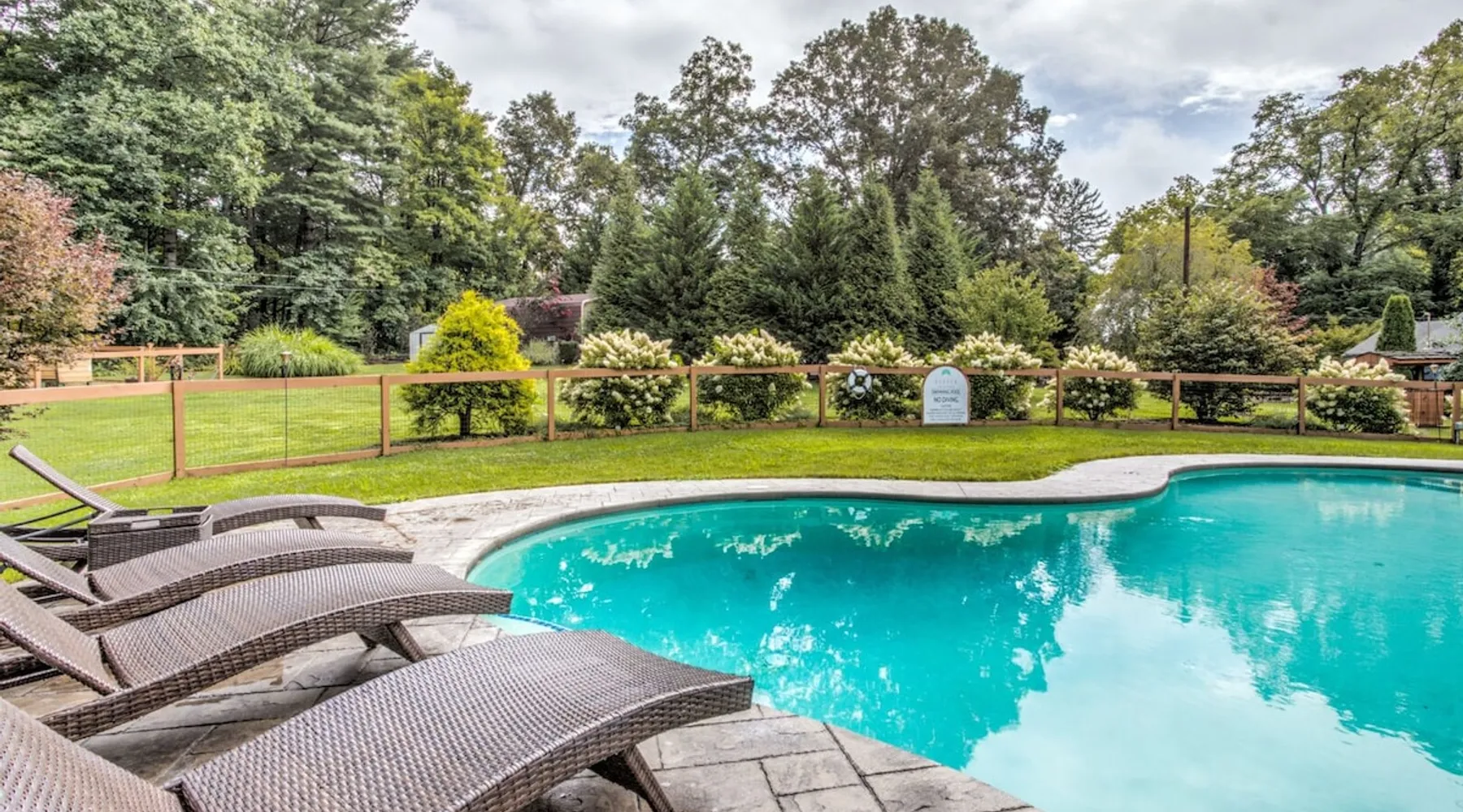 The ultimate Asheville vacation destination, located in the cradle of the Blue Ridge Mountains. Welcome to Mountain Laurel Oasis! The space A mindfully curated log home retreat, majestically nestled in the mountains of WNC outside Asheville, Brevard and Hendersonville. This one-of-a-kind secluded log home boasts a private swimming pool, garage game room and firepit for year-round enjoyment for all ages, and plenty of indoor and outdoor space to accommodate groups. The entire property has been meticulously landscaped and maintained and setup for your pleasure and enjoyment. Come create relaxing, blissful and amazing memories at Mountain Laurel Oasis. Location: Private estate home located south of Asheville near Biltmore Park, 20 minutes south of downtown Asheville, 5 minutes to Asheville Regional airport, 5 minutes to Biltmore Park, 18 minutes to the gates of Biltmore Estate. And 20 minutes to downtown Brevard or Hendersonville. It is easy to access the home, via only paved roads, with no windy mountain roads. The home affords year round access to any and all vehicles, with plenty of onsite parking for the entire group. Accommodations: 3 Bedrooms, Bunkroom, 4 Full Baths Occupancy Summary / Sleeps in beds: 13 - Max. Occupancy: 15 (PLEASE NOTE: We provide linens for all beds; other occupancy will require guests providing their own linens.) What You Can Expect: Come enjoy the Mountain Laurel Oasis experience. Swimming pool, firepit, garage game room, and more...Wow! When you pull into the driveway, you will enter a secluded, tree-lined oasis. A short walk down the plant-lined stone walkway to the front porch boasting pine log columns, you will enter the front door into the main room of this 2,700+ sq ft modern log farmhouse. There you will be greeted by vaulted wood and beam ceilings, hardwood plank floors, comfortable living and dining spaces, a spacious, fully-equipped kitchen, and a spectacular wood-burning stove seated on a large stone hearth. The main room was originally a small cabin built in the 1930s, and its timeless charm shines through to today. From the main room, you can step out onto the large wrap-around deck and enjoy outdoor dining or cocktails or a tranquil morning coffee. From this part of the deck, you can also enjoy a mountain top view, especially in the winter months. Continue on through the main room into the modern-day portion of the home, where you will find a large hallway bathroom featuring a granite double vanity and a large tile and glass shower. Located near the hallway bathroom is a bedroom with a luxurious king bed and lots of windows to enjoy natural light and views of the outside. This bedroom has a walk-in closet and a 43-inch smart TV in case you find yourself wanting to lounge in privacy or drift off to the sounds of your favorite show. At the far end of the hallway, you will find the cavernous master suite with its heavily beamed ceiling and 2 queen beds. This room includes comfortable seating areas, a 55-inch smart TV and a large walk-in closet. This bedroom also features 2 full ensuite private bathrooms – one on each side of the master closet. The first full bathroom has a vanity, toilet and soaking tub, and the other full bathroom has a vanity, toilet and large tile and glass shower. This bedroom is ideal for families and is large enough to also accommodate air mattresses or sleeping bags for little guests or a pack and play. From the master suite you can access the wrap-around deck and make your way out to the firepit or the pool. Situated between the two downstairs bedrooms is a private office with a built-in desk, shelves and drawers with a wireless printer. If by some misfortune you require a place to work in peace and quiet during your getaway (hopefully for only a brief time), this is your workplace retreat. Before heading upstairs, you will pass through the nook located at the stairway landing. The nook has a charming wooden built-in single bed adorned with bookshelves. This bed is perfect for the little adventurer in your family or the solo teenager or adult. Here in the nook the kids can also relax apart from the grown-ups and read or play board games or the Xbox on the 43-inch smart TV. From the nook you can access the wrap-around deck outside. Venturing upstairs you will find another spacious bedroom with an ensuite full bathroom and king bed. This large bedroom has a comfortable seating area where you can relax with a book or your tablet, and another 43-inch smart TV for your private viewing pleasure. Across the upstairs landing is the bunk room with 2 single beds, each with a pullout trundle bed. The bunkroom is perfect for the younger members of the family to hang out and “bunk up” for memorable times together. When you’re ready to venture outside the home and explore the property, fun and adventure awaits! Enjoy splashing or soaking in the heated in-ground swimming pool or just lounge around and enjoy the sun and the calm mountain breezes. Hangout by the firepit and enjoy the crackling fire and make s’mores with the family. Head over to the garage game room and enjoy hours of fun playing ping pong, foosball, pop-a-shot basketball or electronic darts. Visit the enclosed raised-bed garden and snip some fresh herbs to enjoy with your dinner. Or amble on over to the hammock and relax with a book or simply nod off to the sounds of the outdoors. This stunning property essentially has it all. Aptly named as a true oasis of relaxation, Mountain Laurel Oasis is a true luxury getaway designed to provide memorable vacations for all ages and groups. Mountain Laurel Oasis was built as a second/vacation home, and has been entertaining travelers for years and has very quickly become one of the most popular homes in our luxury portfolio. It is not surprising when you put a terrific estate property and log home together with a simply spectacular property, outdoor spaces, swimming pool and other amenities. While the log home is only a 3-bedroom