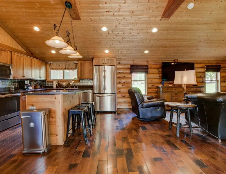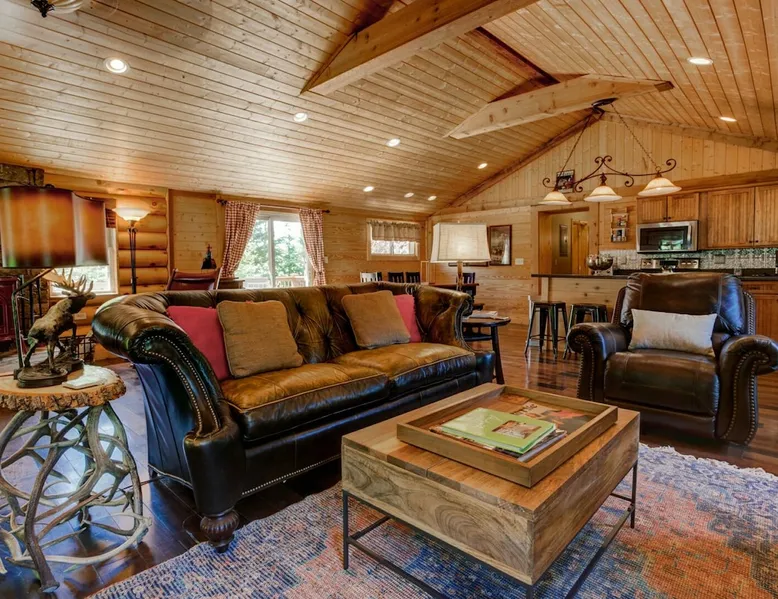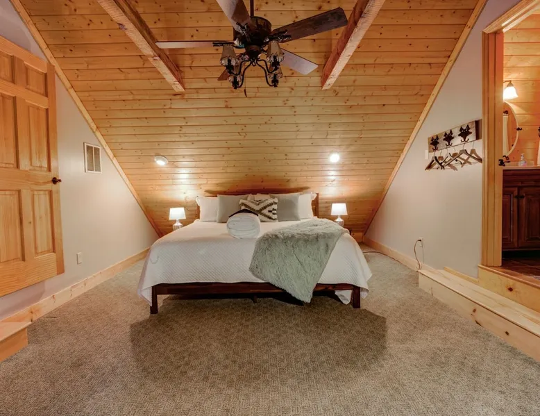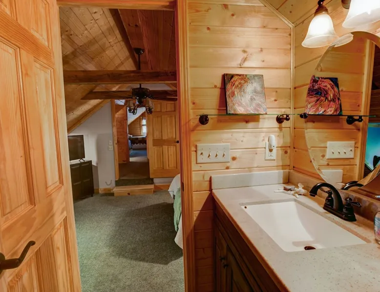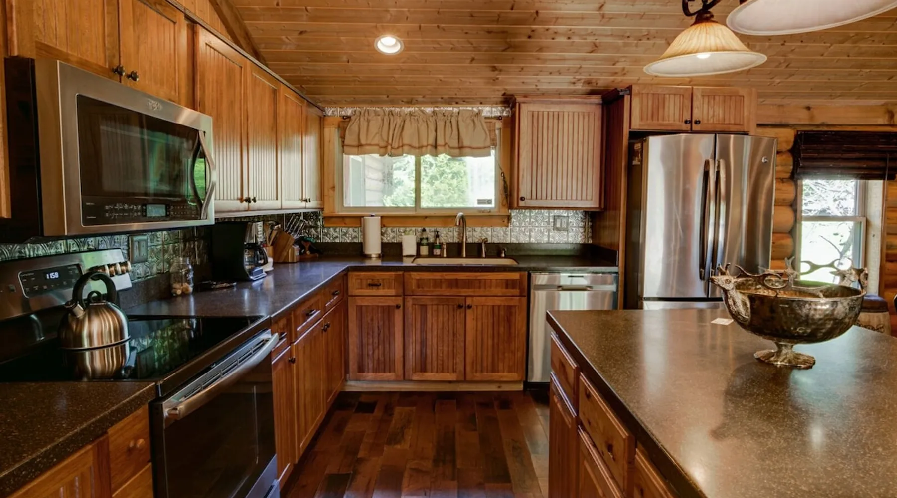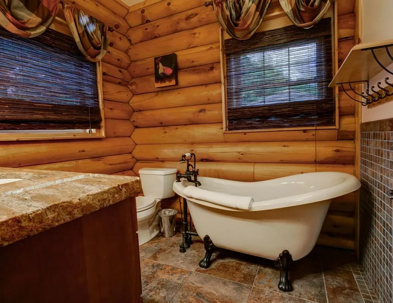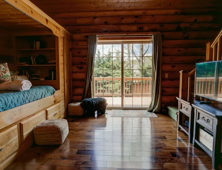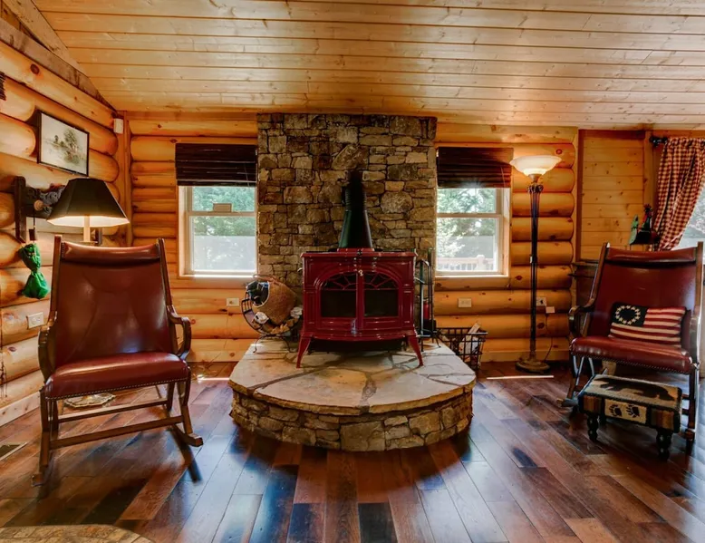 The ultimate Asheville vacation destination, located in the cradle of the Blue Ridge Mountains. Welcome to Mountain Laurel Oasis! The space A mindfully curated log home retreat, majestically nestled in the mountains of WNC outside Asheville, Brevard and Hendersonville. This one-of-a-kind secluded log home boasts a private swimming pool, garage game room and firepit for year-round enjoyment for all ages, and plenty of indoor and outdoor space to accommodate groups. The entire property has been meticulously landscaped and maintained and setup for your pleasure and enjoyment. Come create relaxing, blissful and amazing memories at Mountain Laurel Oasis. Location: Private estate home located south of Asheville near Biltmore Park, 20 minutes south of downtown Asheville, 5 minutes to Asheville Regional airport, 5 minutes to Biltmore Park, 18 minutes to the gates of Biltmore Estate. And 20 minutes to downtown Brevard or Hendersonville. It is easy to access the home, via only paved roads, with no windy mountain roads. The home affords year round access to any and all vehicles, with plenty of onsite parking for the entire group. Accommodations: 3 Bedrooms, Bunkroom, 4 Full Baths Occupancy Summary / Sleeps in beds: 13 - Max. Occupancy: 15 (PLEASE NOTE: We provide linens for all beds; other occupancy will require guests providing their own linens.) What You Can Expect: Come enjoy the Mountain Laurel Oasis experience. Swimming pool, firepit, garage game room, and more...Wow! When you pull into the driveway, you will enter a secluded, tree-lined oasis. A short walk down the plant-lined stone walkway to the front porch boasting pine log columns, you will enter the front door into the main room of this 2,700+ sq ft modern log farmhouse. There you will be greeted by vaulted wood and beam ceilings, hardwood plank floors, comfortable living and dining spaces, a spacious, fully-equipped kitchen, and a spectacular wood-burning stove seated on a large stone hearth. The main room was originally a small cabin built in the 1930s, and its timeless charm shines through to today. From the main room, you can step out onto the large wrap-around deck and enjoy outdoor dining or cocktails or a tranquil morning coffee. From this part of the deck, you can also enjoy a mountain top view, especially in the winter months. Continue on through the main room into the modern-day portion of the home, where you will find a large hallway bathroom featuring a granite double vanity and a large tile and glass shower. Located near the hallway bathroom is a bedroom with a luxurious king bed and lots of windows to enjoy natural light and views of the outside. This bedroom has a walk-in closet and a 43-inch smart TV in case you find yourself wanting to lounge in privacy or drift off to the sounds of your favorite show. At the far end of the hallway, you will find the cavernous master suite with its heavily beamed ceiling and 2 queen beds. This room includes comfortable seating areas, a 55-inch smart TV and a large walk-in closet. This bedroom also features 2 full ensuite private bathrooms – one on each side of the master closet. The first full bathroom has a vanity, toilet and soaking tub, and the other full bathroom has a vanity, toilet and large tile and glass shower. This bedroom is ideal for families and is large enough to also accommodate air mattresses or sleeping bags for little guests or a pack and play. From the master suite you can access the wrap-around deck and make your way out to the firepit or the pool. Situated between the two downstairs bedrooms is a private office with a built-in desk, shelves and drawers with a wireless printer. If by some misfortune you require a place to work in peace and quiet during your getaway (hopefully for only a brief time), this is your workplace retreat. Before heading upstairs, you will pass through the nook located at the stairway landing. The nook has a charming wooden built-in single bed adorned with bookshelves. This bed is perfect for the little adventurer in your family or the solo teenager or adult. Here in the nook the kids can also relax apart from the grown-ups and read or play board games or the Xbox on the 43-inch smart TV. From the nook you can access the wrap-around deck outside. Venturing upstairs you will find another spacious bedroom with an ensuite full bathroom and king bed. This large bedroom has a comfortable seating area where you can relax with a book or your tablet, and another 43-inch smart TV for your private viewing pleasure. Across the upstairs landing is the bunk room with 2 single beds, each with a pullout trundle bed. The bunkroom is perfect for the younger members of the family to hang out and “bunk up” for memorable times together. When you’re ready to venture outside the home and explore the property, fun and adventure awaits! Enjoy splashing or soaking in the heated in-ground swimming pool or just lounge around and enjoy the sun and the calm mountain breezes. Hangout by the firepit and enjoy the crackling fire and make s’mores with the family. Head over to the garage game room and enjoy hours of fun playing ping pong, foosball, pop-a-shot basketball or electronic darts. Visit the enclosed raised-bed garden and snip some fresh herbs to enjoy with your dinner. Or amble on over to the hammock and relax with a book or simply nod off to the sounds of the outdoors. This stunning property essentially has it all. Aptly named as a true oasis of relaxation, Mountain Laurel Oasis is a true luxury getaway designed to provide memorable vacations for all ages and groups. Mountain Laurel Oasis was built as a second/vacation home, and has been entertaining travelers for years and has very quickly become one of the most popular homes in our luxury portfolio. It is not surprising when you put a terrific estate property and log home together with a simply spectacular property, outdoor spaces, swimming pool and other amenities. While the log home is only a 3-bedroom