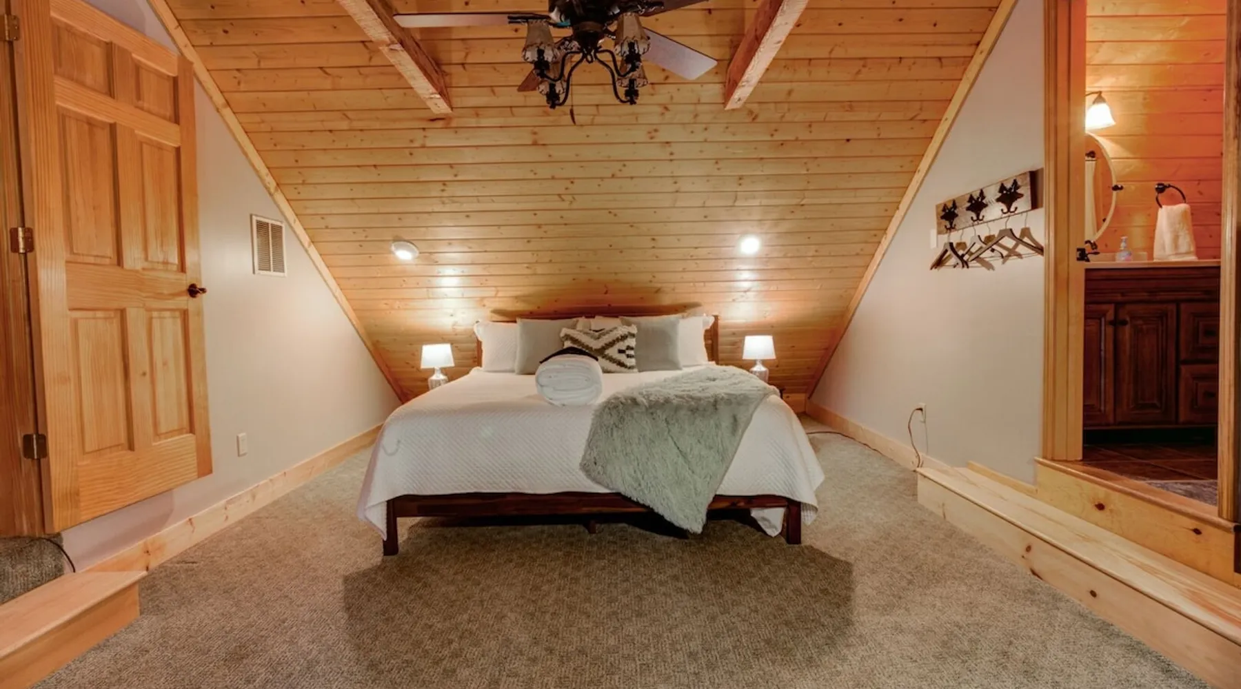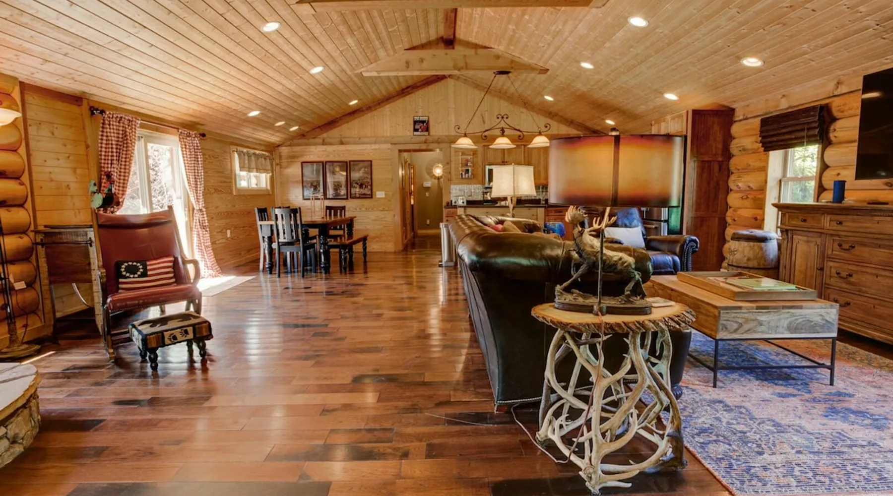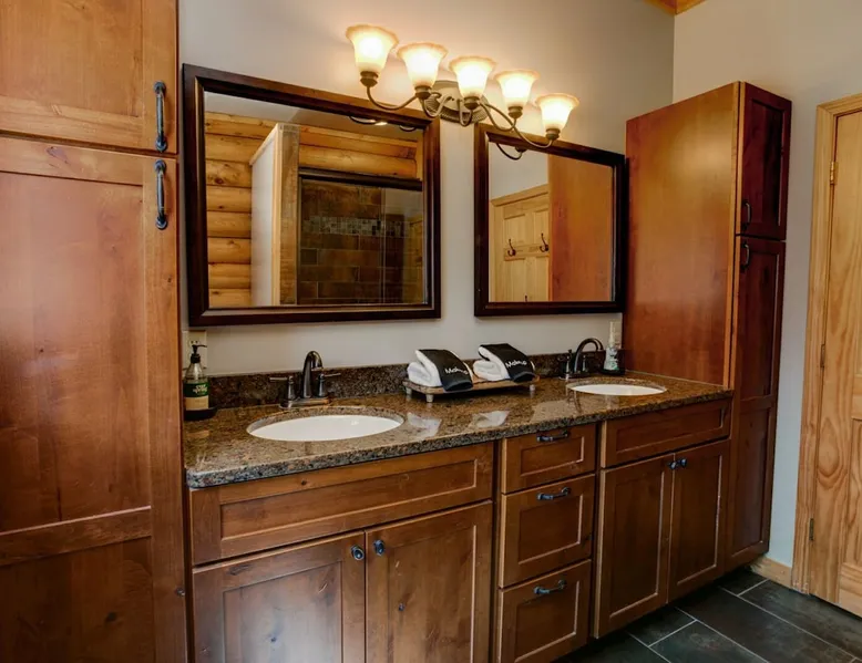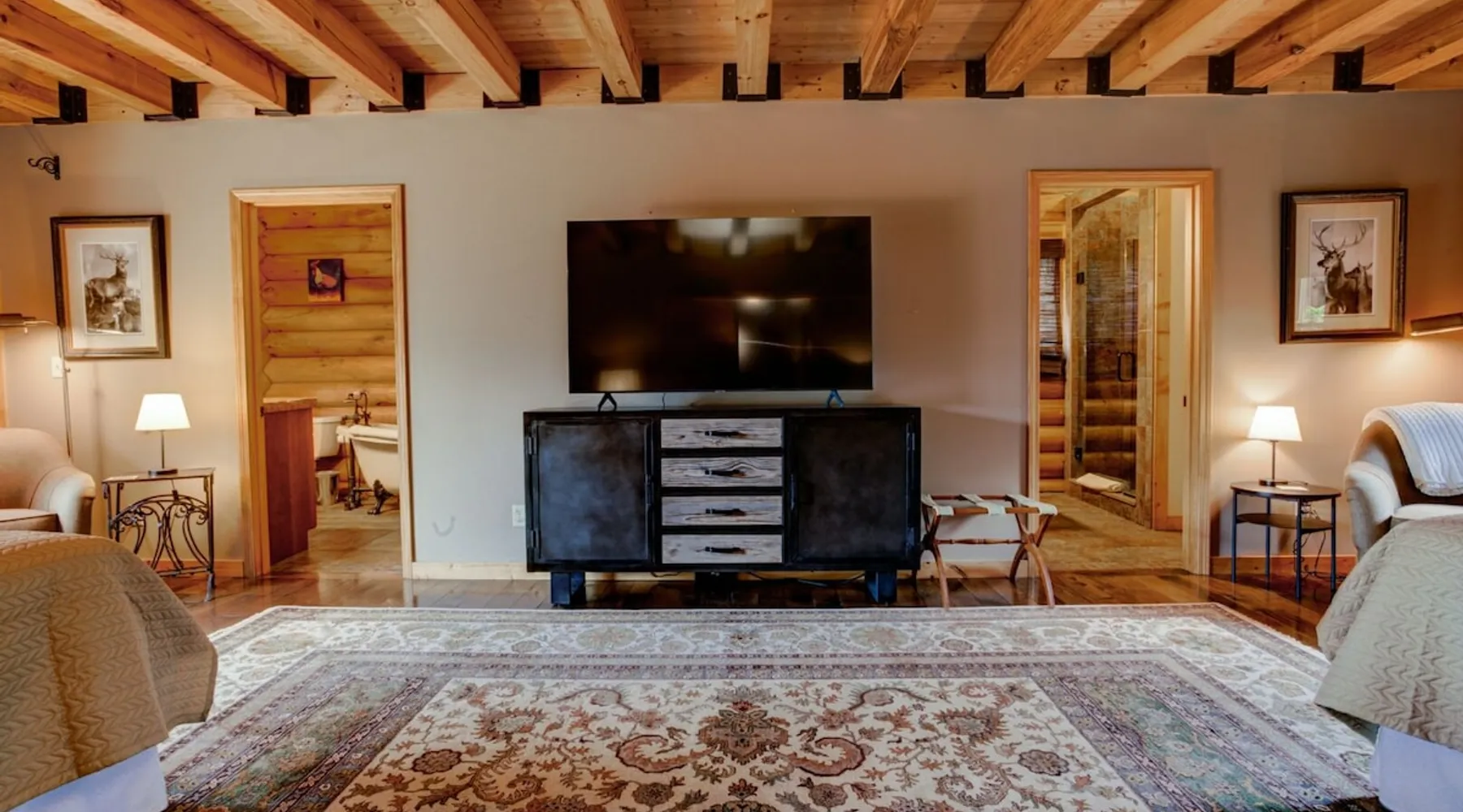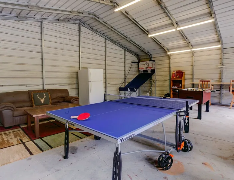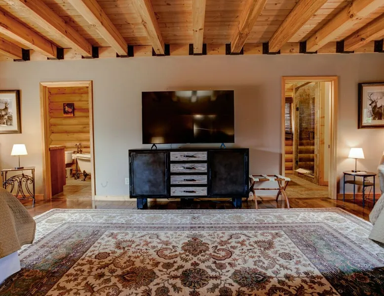 The ultimate Asheville vacation destination, located in the cradle of the Blue Ridge Mountains. Welcome to Mountain Laurel Oasis! The space A mindfully curated log home retreat, majestically nestled in the mountains of WNC outside Asheville, Brevard and Hendersonville. This one-of-a-kind secluded log home boasts a private swimming pool, garage game room and firepit for year-round enjoyment for all ages, and plenty of indoor and outdoor space to accommodate groups. The entire property has been meticulously landscaped and maintained and setup for your pleasure and enjoyment. Come create relaxing, blissful and amazing memories at Mountain Laurel Oasis. Location: Private estate home located south of Asheville near Biltmore Park, 20 minutes south of downtown Asheville, 5 minutes to Asheville Regional airport, 5 minutes to Biltmore Park, 18 minutes to the gates of Biltmore Estate. And 20 minutes to downtown Brevard or Hendersonville. It is easy to access the home, via only paved roads, with no windy mountain roads. The home affords year round access to any and all vehicles, with plenty of onsite parking for the entire group. Accommodations: 3 Bedrooms, Bunkroom, 4 Full Baths Occupancy Summary / Sleeps in beds: 13 - Max. Occupancy: 15 (PLEASE NOTE: We provide linens for all beds; other occupancy will require guests providing their own linens.) What You Can Expect: Come enjoy the Mountain Laurel Oasis experience. Swimming pool, firepit, garage game room, and more...Wow! When you pull into the driveway, you will enter a secluded, tree-lined oasis. A short walk down the plant-lined stone walkway to the front porch boasting pine log columns, you will enter the front door into the main room of this 2,700+ sq ft modern log farmhouse. There you will be greeted by vaulted wood and beam ceilings, hardwood plank floors, comfortable living and dining spaces, a spacious, fully-equipped kitchen, and a spectacular wood-burning stove seated on a large stone hearth. The main room was originally a small cabin built in the 1930s, and its timeless charm shines through to today. From the main room, you can step out onto the large wrap-around deck and enjoy outdoor dining or cocktails or a tranquil morning coffee. From this part of the deck, you can also enjoy a mountain top view, especially in the winter months. Continue on through the main room into the modern-day portion of the home, where you will find a large hallway bathroom featuring a granite double vanity and a large tile and glass shower. Located near the hallway bathroom is a bedroom with a luxurious king bed and lots of windows to enjoy natural light and views of the outside. This bedroom has a walk-in closet and a 43-inch smart TV in case you find yourself wanting to lounge in privacy or drift off to the sounds of your favorite show. At the far end of the hallway, you will find the cavernous master suite with its heavily beamed ceiling and 2 queen beds. This room includes comfortable seating areas, a 55-inch smart TV and a large walk-in closet. This bedroom also features 2 full ensuite private bathrooms – one on each side of the master closet. The first full bathroom has a vanity, toilet and soaking tub, and the other full bathroom has a vanity, toilet and large tile and glass shower. This bedroom is ideal for families and is large enough to also accommodate air mattresses or sleeping bags for little guests or a pack and play. From the master suite you can access the wrap-around deck and make your way out to the firepit or the pool. Situated between the two downstairs bedrooms is a private office with a built-in desk, shelves and drawers with a wireless printer. If by some misfortune you require a place to work in peace and quiet during your getaway (hopefully for only a brief time), this is your workplace retreat. Before heading upstairs, you will pass through the nook located at the stairway landing. The nook has a charming wooden built-in single bed adorned with bookshelves. This bed is perfect for the little adventurer in your family or the solo teenager or adult. Here in the nook the kids can also relax apart from the grown-ups and read or play board games or the Xbox on the 43-inch smart TV. From the nook you can access the wrap-around deck outside. Venturing upstairs you will find another spacious bedroom with an ensuite full bathroom and king bed. This large bedroom has a comfortable seating area where you can relax with a book or your tablet, and another 43-inch smart TV for your private viewing pleasure. Across the upstairs landing is the bunk room with 2 single beds, each with a pullout trundle bed. The bunkroom is perfect for the younger members of the family to hang out and “bunk up” for memorable times together. When you’re ready to venture outside the home and explore the property, fun and adventure awaits! Enjoy splashing or soaking in the heated in-ground swimming pool or just lounge around and enjoy the sun and the calm mountain breezes. Hangout by the firepit and enjoy the crackling fire and make s’mores with the family. Head over to the garage game room and enjoy hours of fun playing ping pong, foosball, pop-a-shot basketball or electronic darts. Visit the enclosed raised-bed garden and snip some fresh herbs to enjoy with your dinner. Or amble on over to the hammock and relax with a book or simply nod off to the sounds of the outdoors. This stunning property essentially has it all. Aptly named as a true oasis of relaxation, Mountain Laurel Oasis is a true luxury getaway designed to provide memorable vacations for all ages and groups. Mountain Laurel Oasis was built as a second/vacation home, and has been entertaining travelers for years and has very quickly become one of the most popular homes in our luxury portfolio. It is not surprising when you put a terrific estate property and log home together with a simply spectacular property, outdoor spaces, swimming pool and other amenities. While the log home is only a 3-bedroom