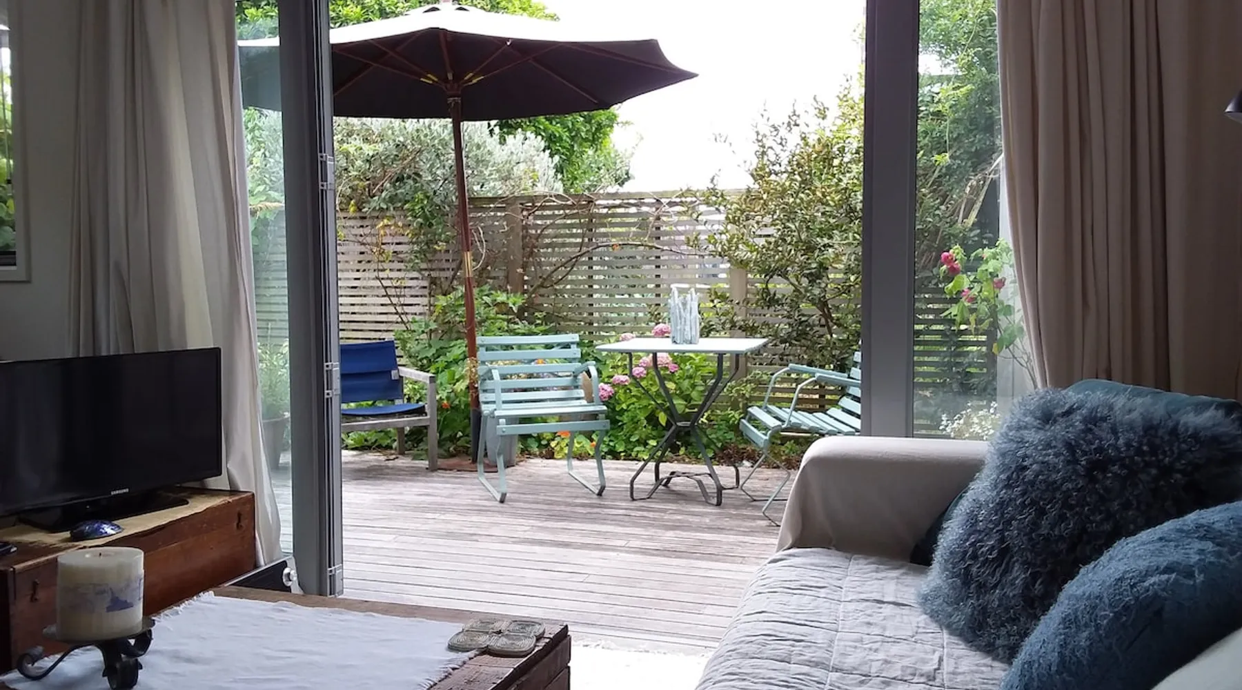 In the seaside village of Mapua, Central to Abel Tasman National Park, wineries, galleries, on the cycle trail, a 3 minute walk to Mapua Wharf cafes, galleries The Studio, Contemporary but homely, beautifully furnished, High Quality, created with love. Cosy bed, organic 100% cotton sheets. Superb tiled shower, well equipped kitchen, deck in private enclosed garden. The wood fire in winter, warms you and your soul Guests say: Classy, soulful, sanctuary A slice of heaven. Absolutely spotless. The space The Studio is in a quiet street in the seaside village of Mapua, on a small peninsular in the Waimea estuary and yet only a couple of minutes walk to the cafes restaurants and lovely shops and galleries at the Mapua Wharf. The Abel Tasman National Park is 40 min drive and Nelson about 40 mins as well. Central to smaller towns of Richmond and Motueka and to many cafe wineries and galleries. I have 2 bikes available for your use, free of charge any time you would like to use them. Guest access There is off street parking for your vehicle and a bike shed for your bikes too. The Studio has it's own private entrance. Other things to note The Studio is a beautiful space for a maximum of 2 people and is not suitable for children. Also Ginga, my cat, says he is not keen to share his space with other animals.