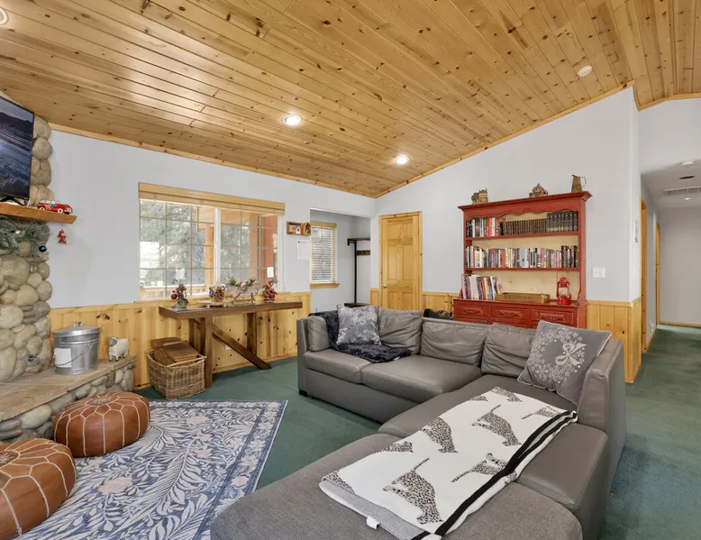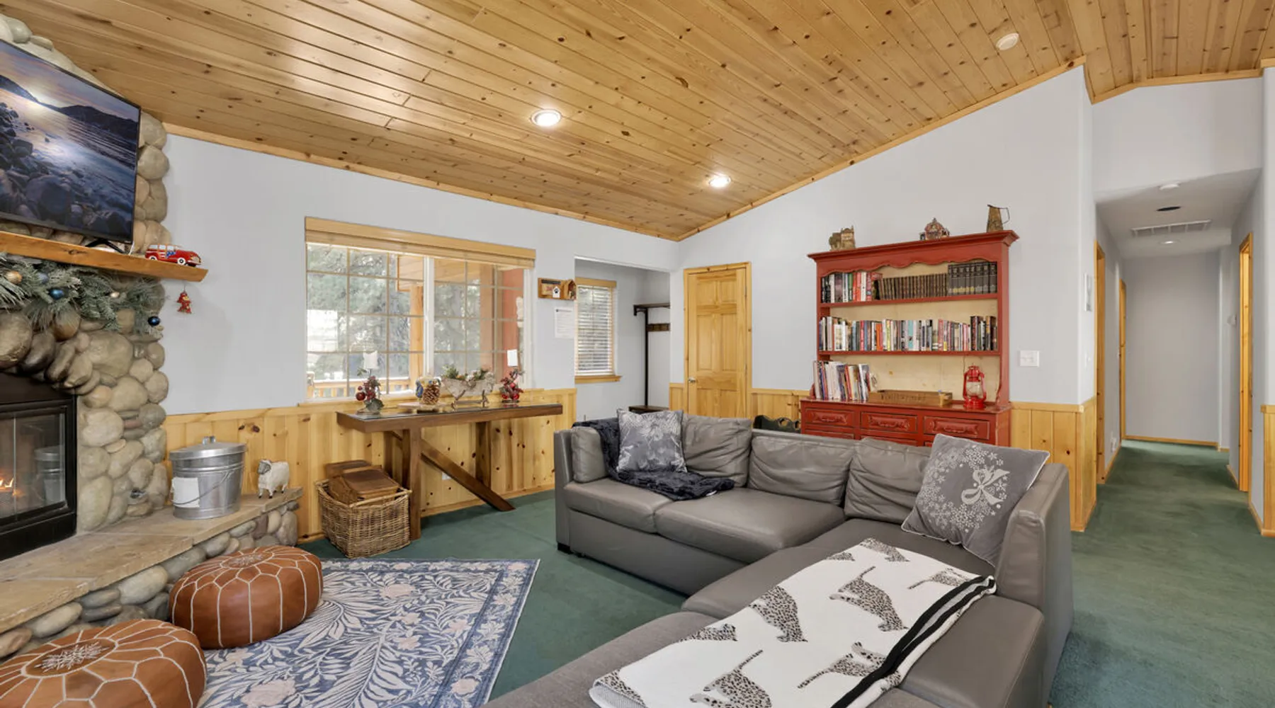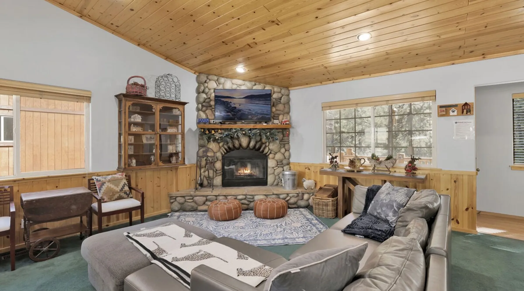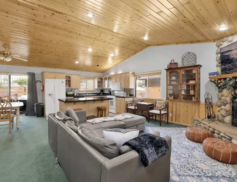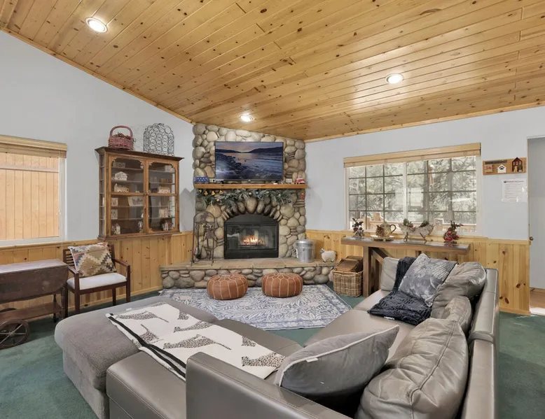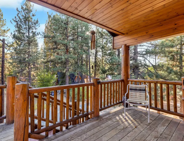 Come experience River Rock Lodge! This gorgeous log style single level chalet has everything you need for a memorable Big Bear vacation, located less than a mile to the downtown Village for shopping, dining, or lake activities you will love this prime central location no matter the season! Take a short stroll to the lake or Village shops or you can hop in the car and you are under ten minutes to the ski resorts or grocery stores- you truly can't beat this amazing location! The space River Rock Log Cabin Retreat w/ Hot Tub | Village Come experience River Rock Lodge! This gorgeous log style single level chalet has everything you need for a memorable Big Bear vacation, located less than a mile to the downtown Village for shopping, dining, or lake activities you will love this prime central location no matter the season! Take a short stroll to the lake or Village shops or you can hop in the car and you are under ten minutes to the ski resorts or grocery stores- you truly can't beat this amazing location! Entering the cabin you are greeted with knotty pine ceilings and an open floor plan, with comfy couch furnishings, a toasty wood burning fireplace, and complimentary hi speed WIFI and Cable are available on the mounted flat screen TV so you can snuggle up and watch the snow falling as you enjoy a movie together as you warm your toes in front of the fire. The spacious kitchen offers wood floors, marble counters, and plenty of cookware and utensils including general appliances and a dishwasher for preparing your home cooked meals. Being a single level you will have convenient access to your three spacious bedrooms and both bathrooms, all are made up with warm linens, blankets, pillows, and fresh shower towels for your group, plus there is a washer and dryer on hand for those wet snow clothes or long term stays. Boasting double front and back sun decks, with access from the primary suite right to the in deck private spa- you will love relaxing here in the evenings. Outdoor patio furnishings and a propane BBQ are an added convenience so you can grill up that freshly caught fish from the lake out back. Your group will love River Rock Lodge, pairing the necessities from home with a prime central Village location, don't wait, book today! Sleeping Arrangements: Bedroom 1- Queen Bed, TV/Cable, Walk-In Closet, Private Bath, Deck Access Bedroom 2: Two Twin Beds Bedroom 3: Queen Bed Living Room: Full Sleeper Sofa Bathroom Arrangements: Private Full Bath- Bedroom 1 Hallway Full Bath -Sleeps 8 -3 Cars Driveway Parking -2 Pets Welcome w/ Additional Fee -1,506 Total Square Feet City Permit #: VRR-2024-1521 Registration Details 2024-1521