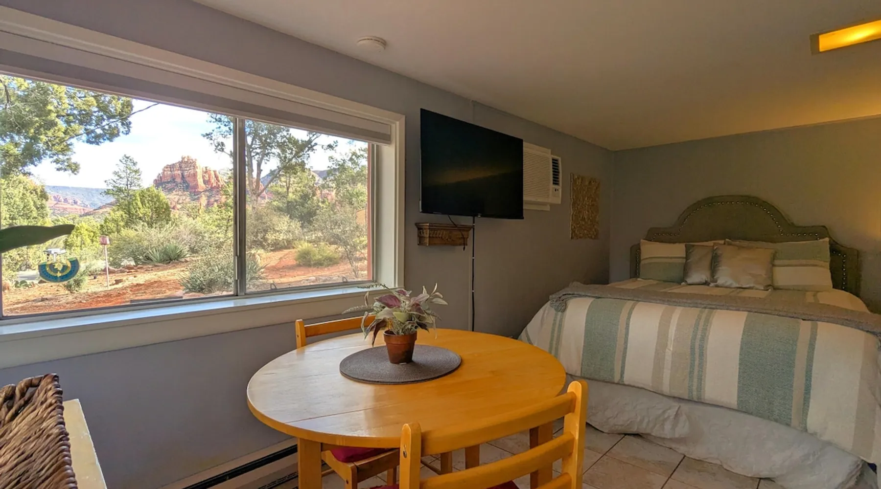 Small pets are allowed - Contact Host for approval City of Sedona Short Term Rental License # 032800 Private, clean, organized & uncluttered space. Studio cottage with queen bed, 1 bathroom & kitchen. Extended stay discounts available. Perfectly located to experience mountain biking, hiking or fulfilling spiritual experiences & romantic get-aways. Restaurants, shops and galleries nearby. Close to Oak Creek and events in town. Note: Ceiling Height is 6ft-8in. The space Spacious Studio Casita with a full kitchen, apartment size refrigerator, full bathroom with soaking tub and a queen size bed. You'll find this bed to have an organic latex topper. One of many reviews: “ We stayed here for 4 nights and couldn’t be happier! Brewer trail is right across the street and I enjoyed 3 pleasant morning hikes while I was there! Beautiful sunrise and a great view are all yours. Gary & Marianne gave us the local information beforehand which was very helpful. You are close to nature but also all the shopping and restaurants too. Definitely a great place to stay! Would highly recommend :) ” Shoko NY Rising Sun Casita is one of 3 separate casitas on the property. Our other listings include: The Heart Casita is a 2 bedroom, 1 bath house with a full kitchen and patios that accommodates up to 6 people. The Dragonfly Casita is a one room studio with kitchen and bathroom that sleeps 2 people. We offer package pricing for large parties that rent multiple units. Contact the owner and host for special pricing for multiple unit rentals. None of our units have microwave ovens: Guest access You'll have access to the front and backyard patio areas The unit is fitted with an electronic smart door lock. You will receive a key code at 4pm, day of check-in. No one is there to greet you. The cottage is completely private. Once the key code is provided, please enter the numbers as provided by AirBnB messaging to open the door. If you attempt multiple times to enter the wrong code, you will have to wait a few minutes before trying again. Other things to note We highly recommend a wonderful app "Sedona Tours". It offers information on walking tours to gallery's, shopping and hikes. Love It! Yelp and the Sedona Chamber are also very helpful. Yelp will provide you with reviews from other travelers. We also love TripAdvisor for current information on the area. Because we do not live in the area many businesses come and go in resort towns, this is the best way to be current on what’s happening and available. The property is located close to many features Sedona has to offer. Less than a mile away is Sedona Uptown shopping area where you will find the hub of numerous activities from pink jeep tours, great restaurants, galleries, art centers and shopping galore! Walking distance within the neighborhood you will find creek access and just a few blocks away is the famous Tlaquepaque Arts & Crafts Village. This acclaimed arts, culture and shopping destination is in a class by itself. Nestled beneath giant sycamore trees on the banks of beautiful Oak Creek, Tlaquepaque is the most distinctive shopping complex to be found in the Southwest…or just about anywhere else. We have three units on the same property, make sure your picture matches the front door you’re standing in front of when you enter the code. The only time we have check in problems is when guests try to enter their code at the wrong casita. You will also find the house rules, framed inside the house and on your confirmation, all passwords will also be listed in your confirmation and again in the house rules posted inside the casita. Your printed confirmation is your copy of all the information you need for your stay with us. We do not live there, no one is there to greet you, it's completely private and on your own. The door code will be released for you any after 4pm for your stay through your AirBnB thread. Thank you for your consideration.