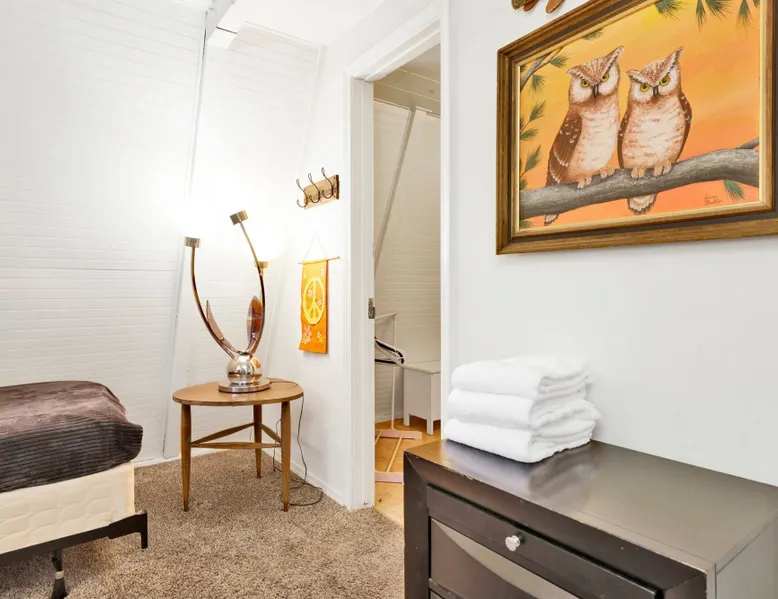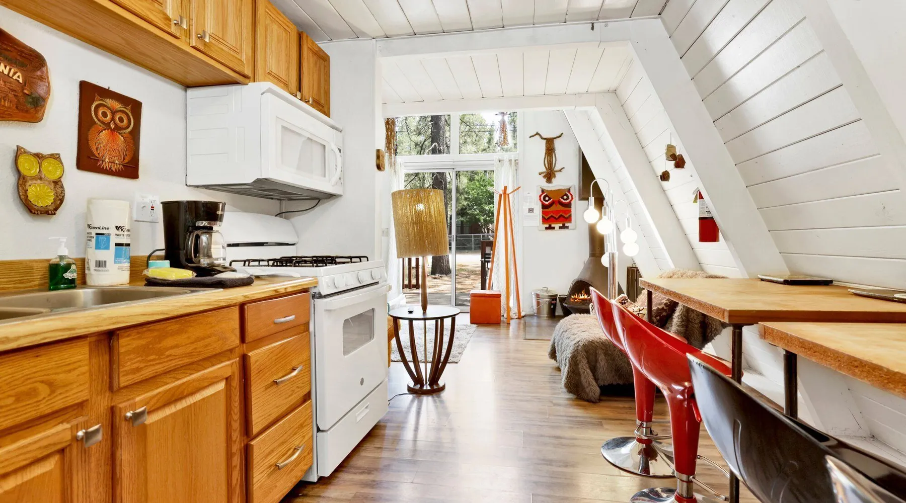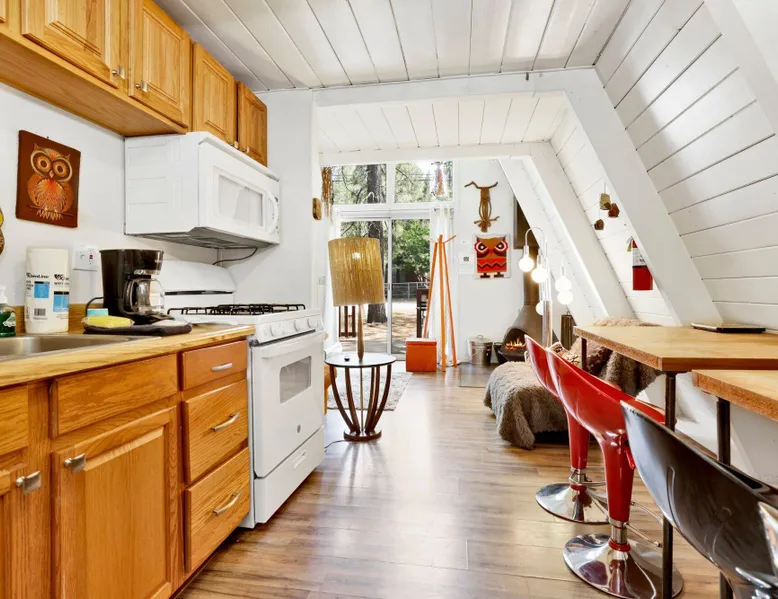 Sunrise Retreat Cottage~ Hot Tub~ Essentials Welcome to Sunrise Cottage! Perfect for a couples vacation or group of friends to enjoy the best of Big Bear our adorable two story chalet offers the necessities and essentials for a memorable and relaxing vacation to the mountains. Take a soak in the private hot tub under the pine trees in fenced backyard or enjoy sipping your first cup of coffee on the sun deck in the morning- the possibilities are endless from this chalet. Hop in the car and you are within a short ten minute drive to the lake, marina, ski resorts, or Village shops, this is a great central location no matter the season. Incredibly cozy and romantic this Bear City home is situated under towering pine trees and provides the perfect balance of relaxation and serenity for your next vacation. Enter into the clean and cozy living room with sitting couches where you can snuggle up together and warm your toes in front of the toasty wood burning fireplace as you pop on a movie on the flat-screen TV with complimentary Cable and hi speed WIFI internet provided for your enjoyment by the owners. The small but fully equipped kitchen has all that you need to whip up your home-cooked meals including cookware, utensils, and general appliances for your use. This lower entry level offers a spacious hallway bathroom, and the bedroom with a single bed. Venturing up the spiral staircase to the second level of this mountain charmer is the loft bedroom offering a Queen bed with pine tree views from the open front windows and a small sitting desk- each of your rooms are made up for your arrival with warm linens, blankets, pillows, and fresh shower towels for your vacation when you arrive. Outside you can enjoy patio furnishings and a propane BBQ along with your own private hot tub under the pine trees where you will love relaxing and unwinding in your evenings. With the perfect location paired with all that you need for your vacation here in the mountains, we are ready to welcome you to come enjoy the sunrise here in this perfect little cottage. *Note- Private fenced yard is accessible only from the side of the cabin, not directly connected to the cabin with an access door of any kind.* Sleeping Arrangements: Bedroom 1: Twin Bed - Downstairs Entry Level (No Door) Loft Area: Queen Bed - Upstairs 2nd Level (No Door) Bathroom Arrangements: Hallway Full Bath- Downstairs Entry Level -Sleeps 3 -2 Car Driveway Parking -1 Pet Welcome w/ Additional Fee -768 Total Square Feet County Permit #: CESTRP-2021-00125
