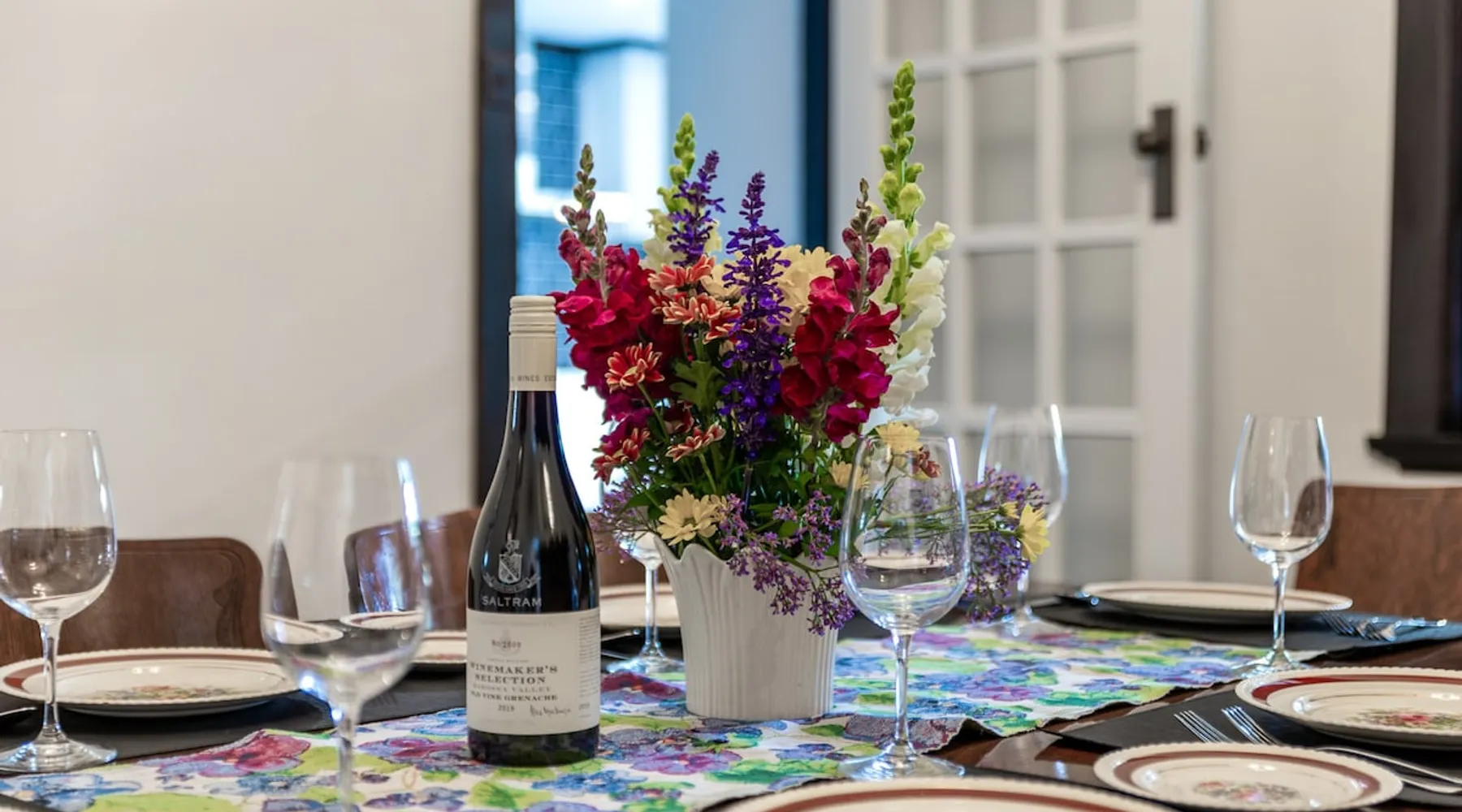 Whiterocks is a 1935 heritage sandstone and red brick bungalow in the heart of Tanunda, perfectly located within walking distance to cafés, cellar doors, and boutique shops. Three generous bedrooms (king + 2 queens) feature bay windows and ornate fireplaces; a snug converts to a fourth bedroom with a sofa bed. Two bathrooms include underfloor heating and one with a deep bath. Relax in the lounge by the fire, enjoy wine, and immerse yourself in the Barossa lifestyle. The space Lovingly restored, Whiterocks combines period elegance with modern comfort. High ceilings, timber trim, and polished floors celebrate its heritage, while ducted air-conditioning, updated bathrooms, and a fully equipped chef’s kitchen provide convenience. Enjoy the private garden with alfresco dining, stroll to nearby wineries and restaurants, or simply unwind in a spacious retreat ideal for couples, families, or small groups exploring the Barossa Valley.