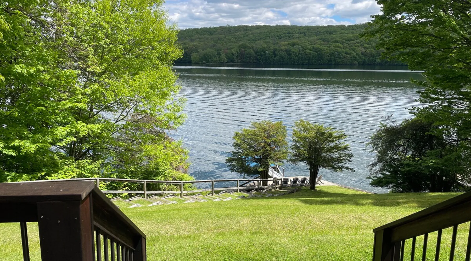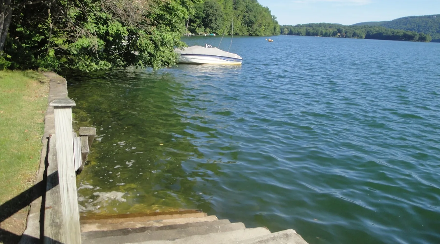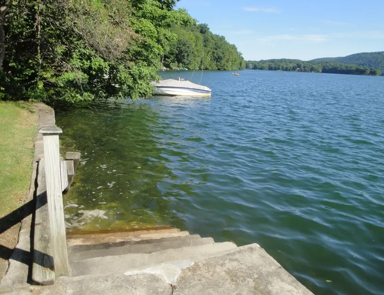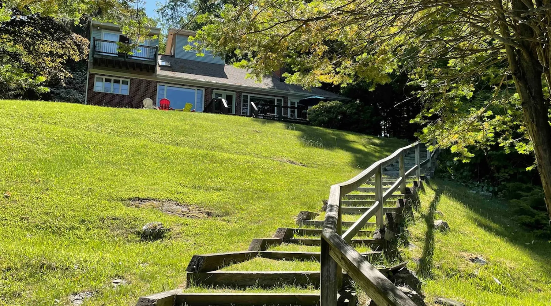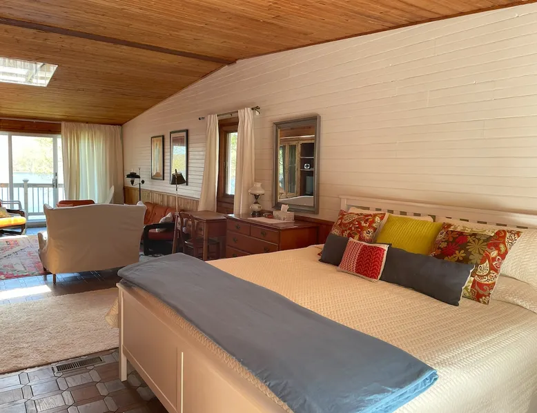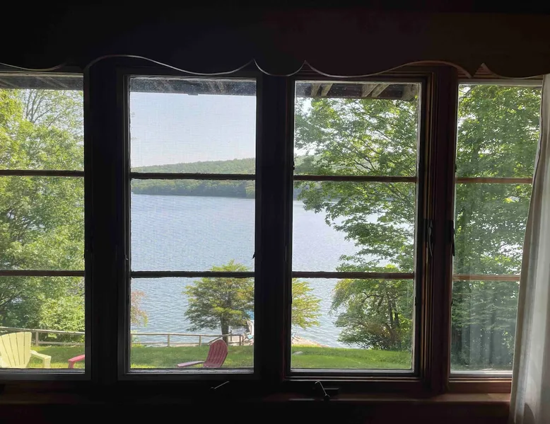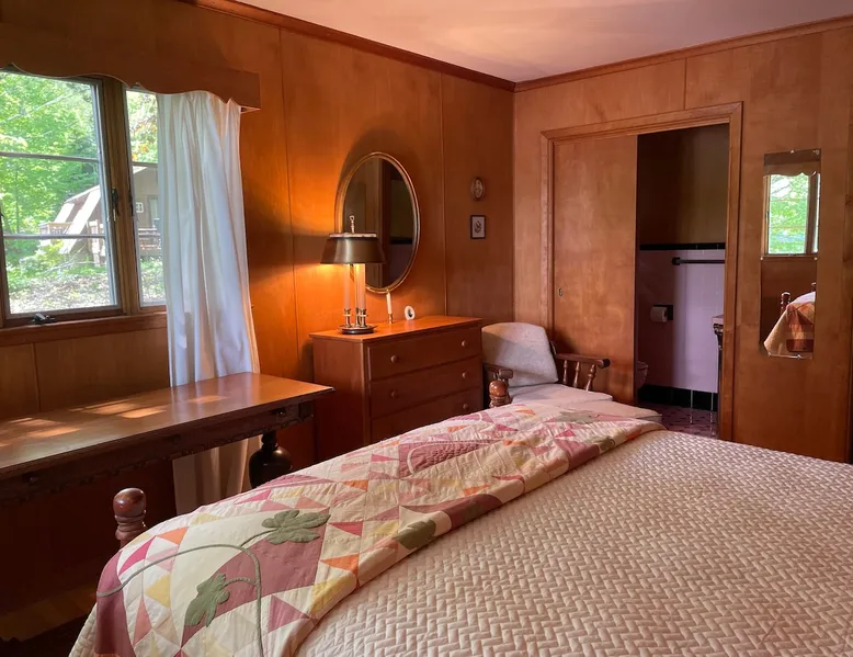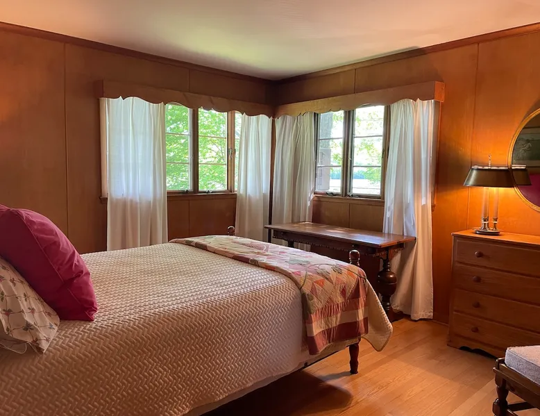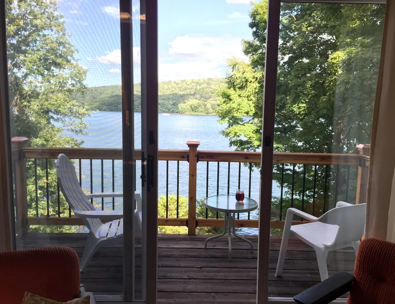 2025 Sept-Dec dates avail. 2026 July-August 7 nite min. Sat to Sat. Other times 4 nite min. . Unique 3100 sq ft. 5 bedroom 4 bath Midcentury Lakehouse w/ stunning secluded property of woods on the back side and wide open lake views on front. 17 five star reviews on other site.Private dock May to Oct. & stone firepit.Crystal water w/stone steps and large stone patio lakeside. 3 decks. Main deck w/ gas grill. Gradual steps into water.Terraced front lawn. Large driveway. 10 mins. to town & The space There are 3 bedrooms on the main level, 2 bedrooms upstairs and a third level lookout room. The main floor has a dramatic cathedral ceiling with large wood beams and track lighting. The second floor features a massive master bedroom suite with private balcony. This home is truly a unique and special place. The house is located 10 minutes from New Fairfield Center or Sherman on a private one acre plus lot. Ours is one of the only roads on the lake where there are no houses on the opposite shore making it very quiet at night. The water at our location is crystal clear. The large stone patio area at the water's edge with a private dock and stone staircase makes getting into the water easy. The water is very deep so good for diving off the dock. The carpeted dock is large. The main floor deck is huge with a large gas grill with two tables and seating for 10 or more. The second floor balcony off the master living room has a table and two chairs. The third deck is on the upper level with a chair. Main Level - The entry level has floor to ceiling picture windows with incredible views of the lake. The living room is wood paneled and beamed with a cathedral ceiling creating an open and spacious feel. There are two huge windows overlooking the main very large deck and the lake beyond. There is a Smart TV with Spectrum internet TV service and a Roku with many streaming apps. There is a stereo system with radio, CD and Aux cord. The kitchen dining area has two walls of windows with the same amazing view. Our eat in kitchen is fully equipped with everything you will need to create your favorite meals. The formal dining room has seating for at least 10 people. There is a window AC unit in the kitchen and a new large mini split AC in living room area. The main level has three bedrooms. The front queen bedroom has a view of the lake from two large sets of windows. This room also has a small private half bath and a wall AC unit. The back queen bedroom has two sets of large windows with a wooded view of mature spruce trees and flowering dogwoods and also a side view of the lake. This room has a Smart TV for streaming and window AC unit. The back middle bedroom has a double bed and a desk. Ceiling fan and portable fan. The main level large vintage bathroom features a unique enclosed shower/tub area with custom etched herons on the glass surround. This bathroom is shared by two bedrooms. Second Level -Upstairs is the huge master king bedroom suite with its own full sized living room with TV for streaming and sitting area. Sliding glass doors leading to a private balcony with a table and chairs overlooking the lake. This room is the full width of the house. There is a window AC unit and also central AC in the master bedroom. There is a huge walk-in closet with dressing mirror and plenty of storage. A private entrance from the master leads to the large second level bathroom with double sinks and marble vanity. This bath also has custom etched glass doors in the tub/shower. The back second level bedroom has two twin beds. There is a full wall of windows with a view of the woods behind the house and the driveway area. This room has its own AC window unit. The third level consists of a small Lookout Room accessed via a spiral staircase. This room has large windows on every side and a small sink. A large desk and chair would make a great office area in cool weather. There is also one twin futon mattress and double mattress for a kids camp out. Glass sliding doors lead to a small deck with chairs. This area is not air conditioned. There is a portable fan. Basement level-The huge basement has a full height 8 foot ceiling. There is a Ping Pong /Dart room and laundry room plus another full bath with shower. Stored in a cupboard are some life jackets and flotation noodles for your use but you should bring your own for children. You may also use the knee board and water skis if you rent a boat. Guest access entire house Other things to note No boats longer than 22 feet may be moored at the dock installed from end May to mid October only. No fires anywhere other than in the firepit. No parties or events other than family gatherings